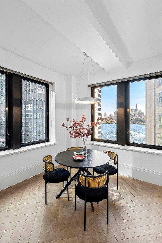 Welcome to 101 Wall By the Water, the newest luxury condominium development where the Seaport meets Wall Street. A flawless corner condominium graced with a collection of stunning fixtures and finishes, this 2-bedroom, 2.5-bathroom home strikes the perfect balance between aesthetics and functionality. Features of this 1,417 sq. ft. apartment include large casement windows, Northern and Eastern exposure, gray herringbone hardwood floors, recessed lighting, beamed 10-ft ceilings, 11-inch baseboards, and a convenient in-unit Bosch washer and dryer.