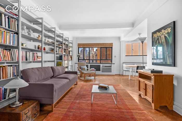 Perched on a high floor of the iconic Normandy, this expansive alcove studio spans over 700 square feet and offers incredible flexibility, charm, and light. Rare in both size and layout, this residence features a welcoming entry foyer, an oversized living room with a dedicated dining area, a separate dressing room/home office, and two generous closets—including a massive walk-in.