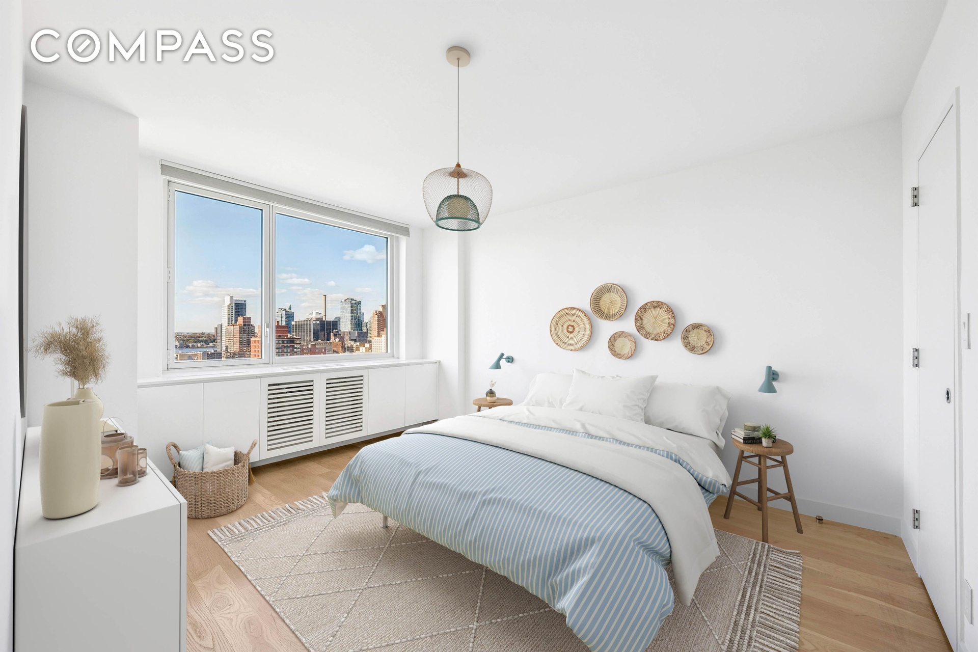 Spectacular high-floor, west-facing views await you in this spacious 2-bedroom, 1-bath residence at 301 West 53rd Street, perfectly located in the heart of vibrant Hell’s Kitchen—a neighborhood rich in art, culture, and energy. Designed by BP Architects with interiors by the acclaimed ASH NYC, this brand-new home features a thoughtful layout, 5-inch oak flooring, abundant natural light, air-conditioning in every room, and the convenience of a Bosch washer and dryer.