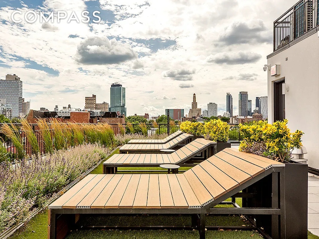 Two common outdoor spaces — a central Zen courtyard and a spectacular roof deck with an outdoor kitchen and sweeping Manhattan views
