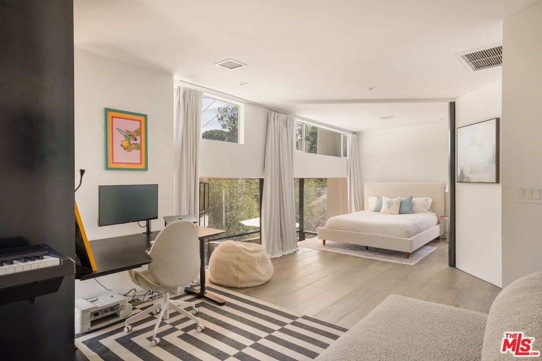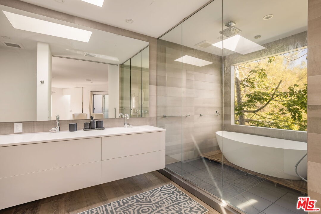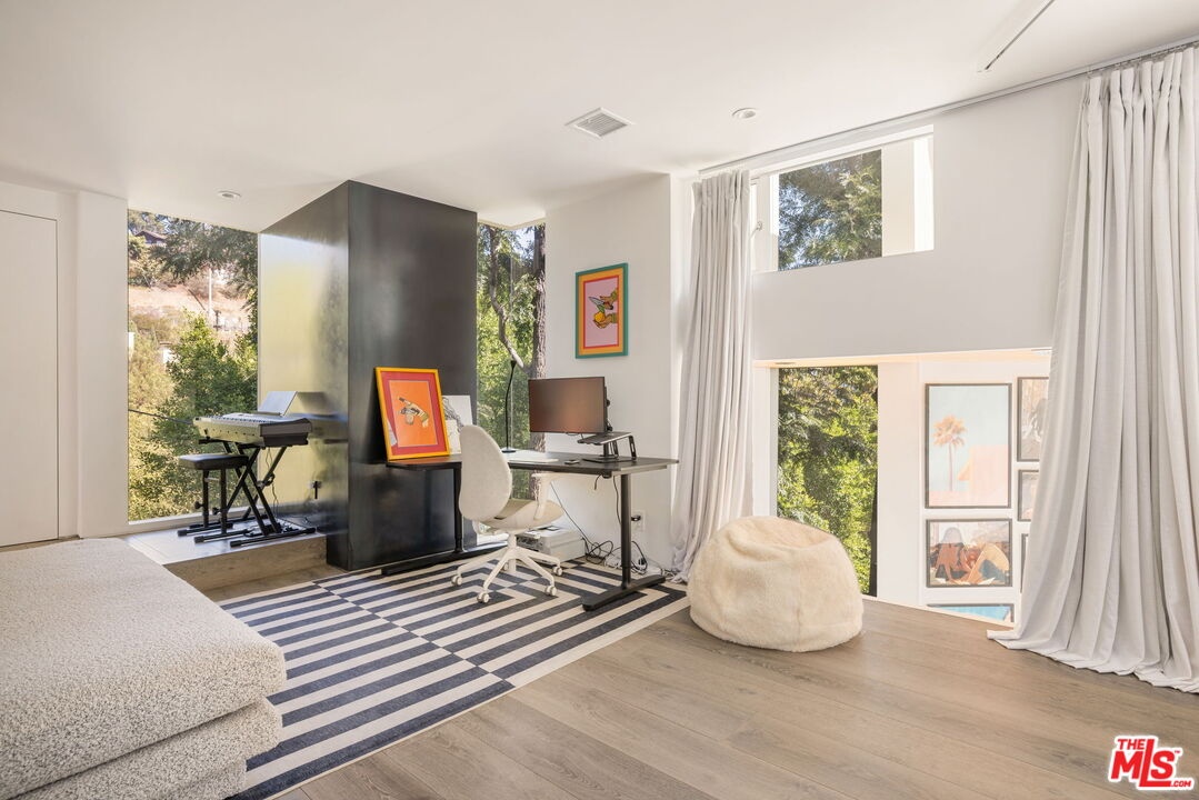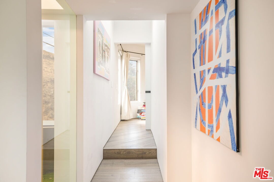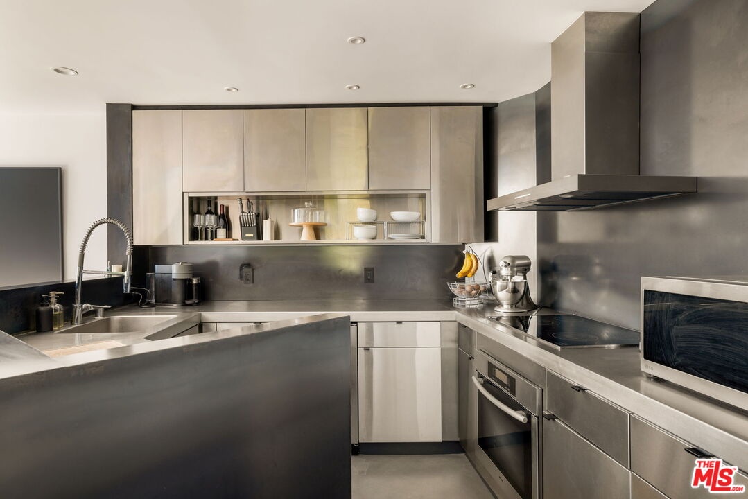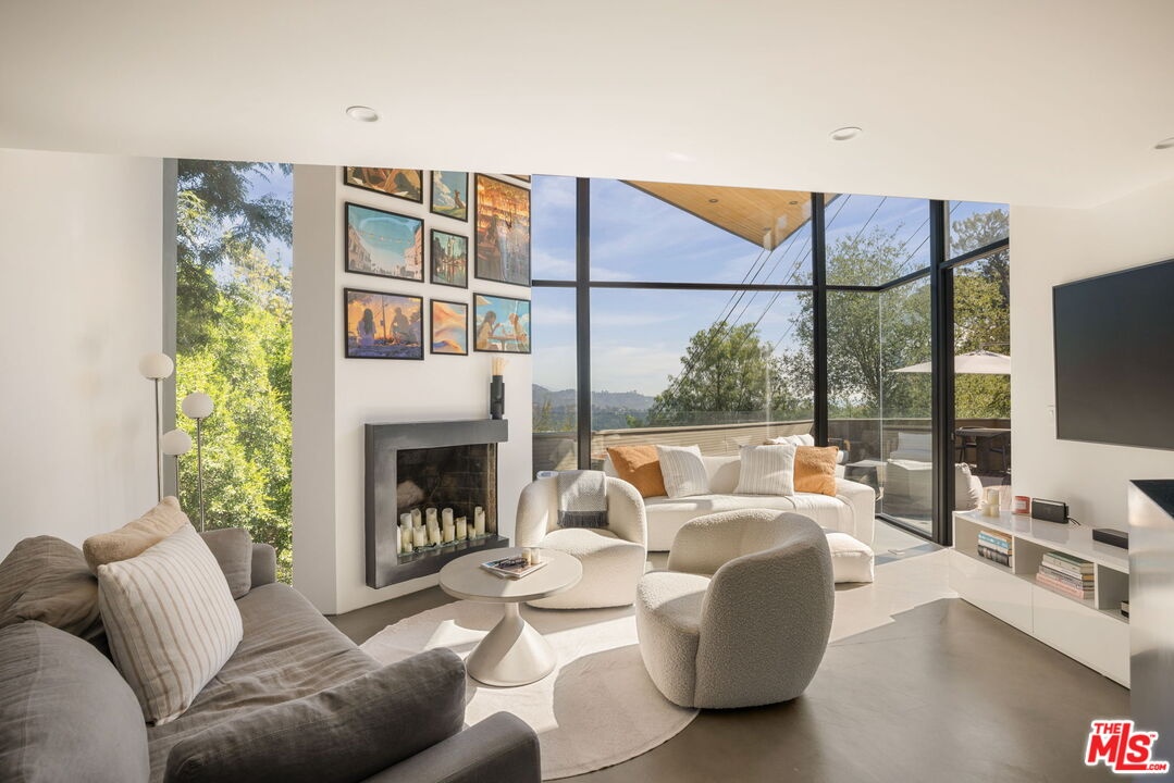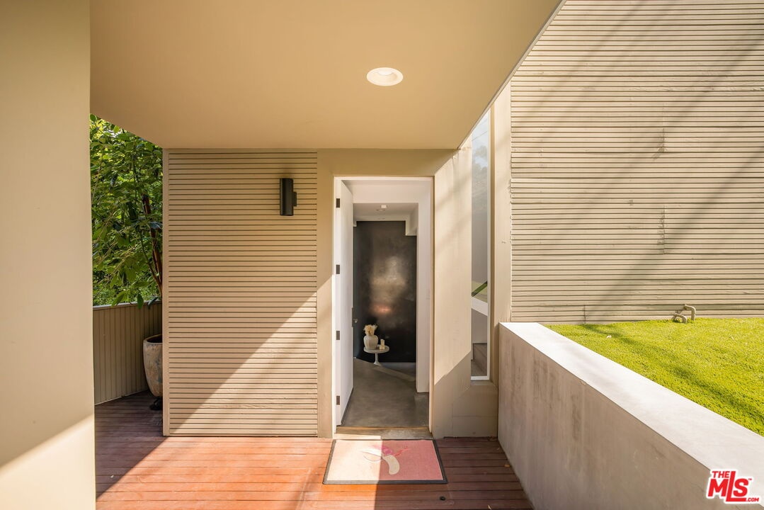 Dramatic Lautner-inspired architecture in the prestigious Outpost Estates. Proudly presenting the George Deutsch Residence. Deutsch worked with Lautner on the world-famous Wolff Residence (1963), quickly becoming enamored with the unique design of Lautner's masterpiece. 7187 Macapa is Deutsch's site-specific, 2/3 scale model of Wolff, Lautner's only homage to his teacher, Frank Lloyd Wright. George Deutsch built his dream home for himself. 7187 Macapa is sited on a rare double wide serenet street in the Hollywood Hills, which culminates in a cul-de-sac. The home is the product of a comprehensive multi-year restoration / modernization. Everything has been considered & meticulously renovated with custom finishes and thoughtful design. The living area boasts polished concrete floors, 16.5 foot ceilings, and walls of glass allowing for seamless indoor/outdoor living. The kitchen has been fitted with Miele appliances and custom blackened and stainless steel cabinetry. Upstairs, the private primary suite, features a considerable walk-in closet, custom wet room concept with teak flooring, rainfall showerhead, ceiling mounted tub filler, and freestanding Badeloft tub. With impeccable design and thoughtfully designed spaces, this property is the perfect retreat from city life for the most discerning collector. Newer Ipe multi-level decks offer abundant space for entertaining and taking in sunsets. Outdoor amenities include a lounge area, fire pit, a jacuzzi, and landscaped terraces. The garage has been converted into a fully equipped ADU. All this, only moments from Runyon Canyon hiking trails, West Hollywood, the Studios, and 101 Freeway.