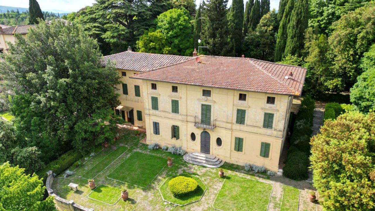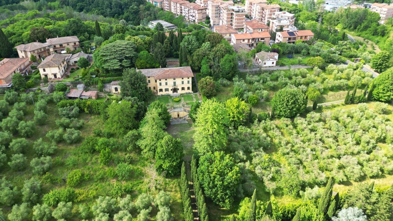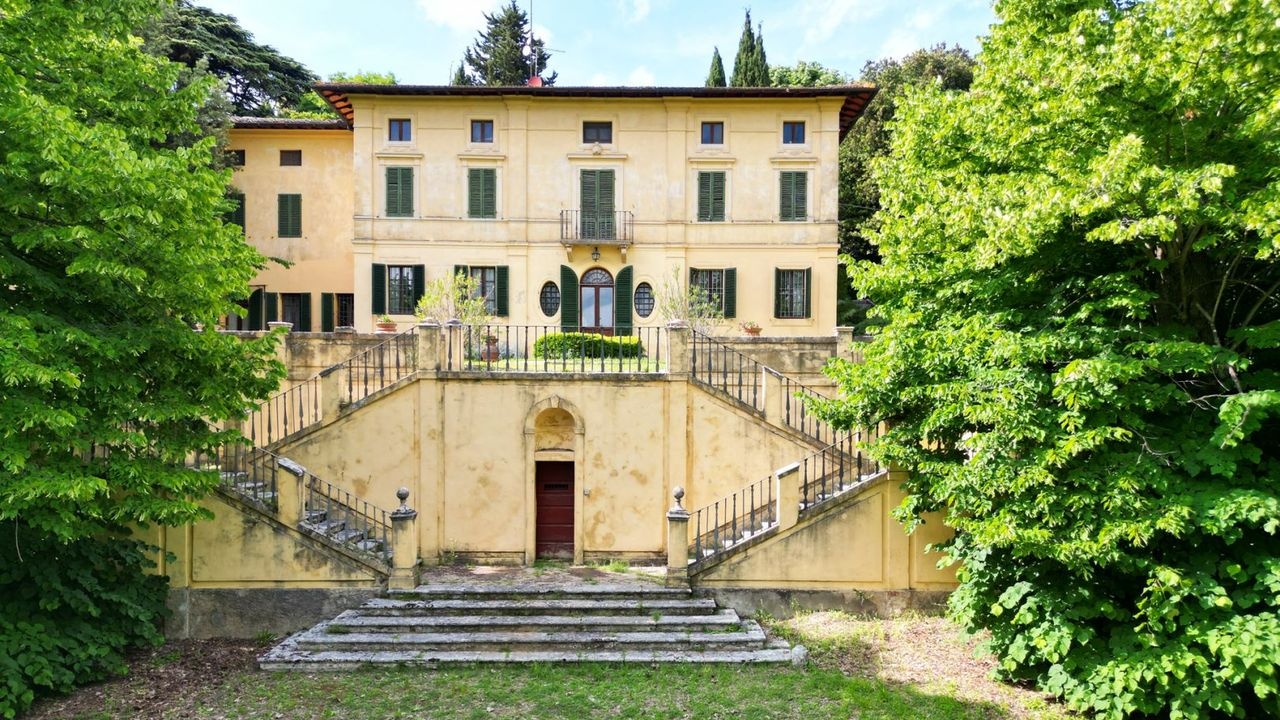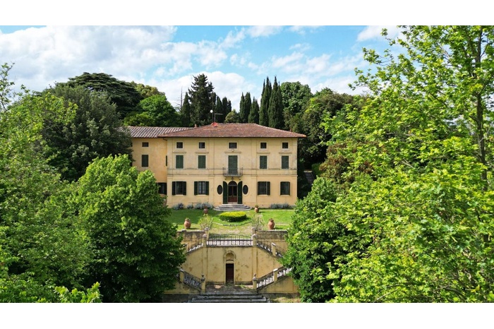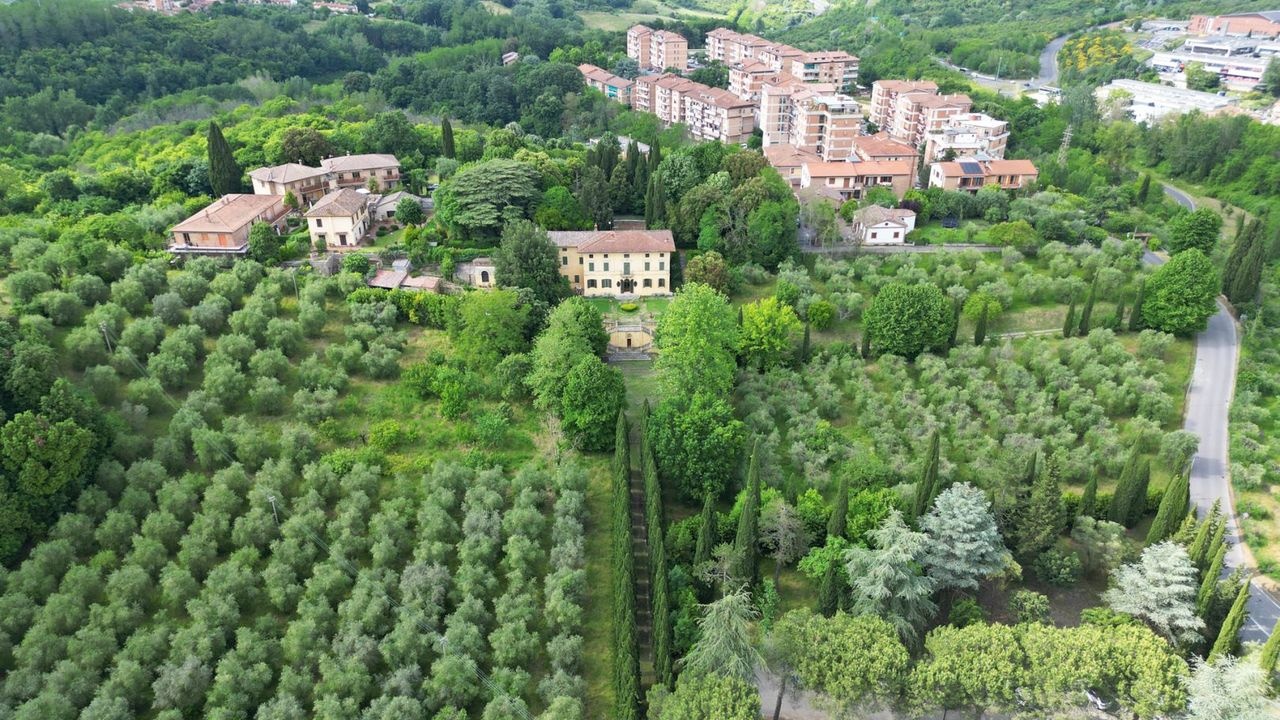 The property, surrounded by three hectares of land with olive grove, park and Italian-style garden, stands out for its historical charm and privileged position.