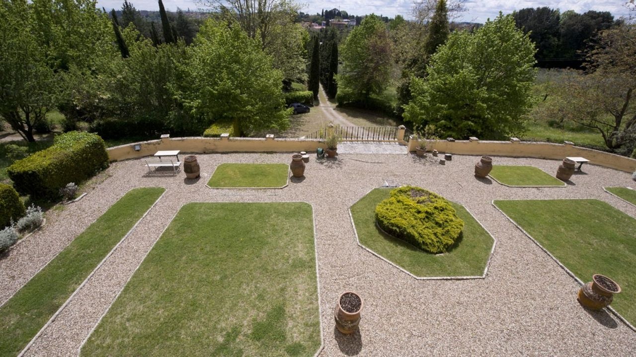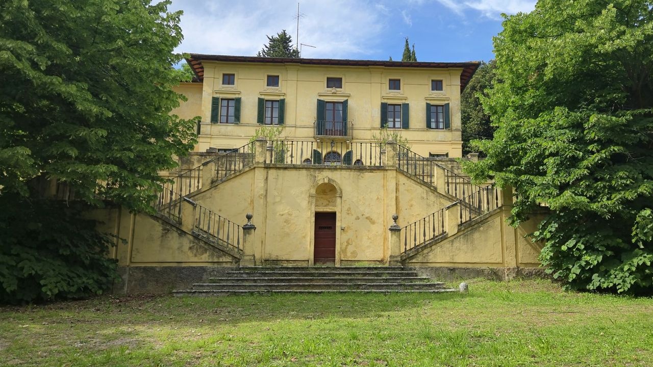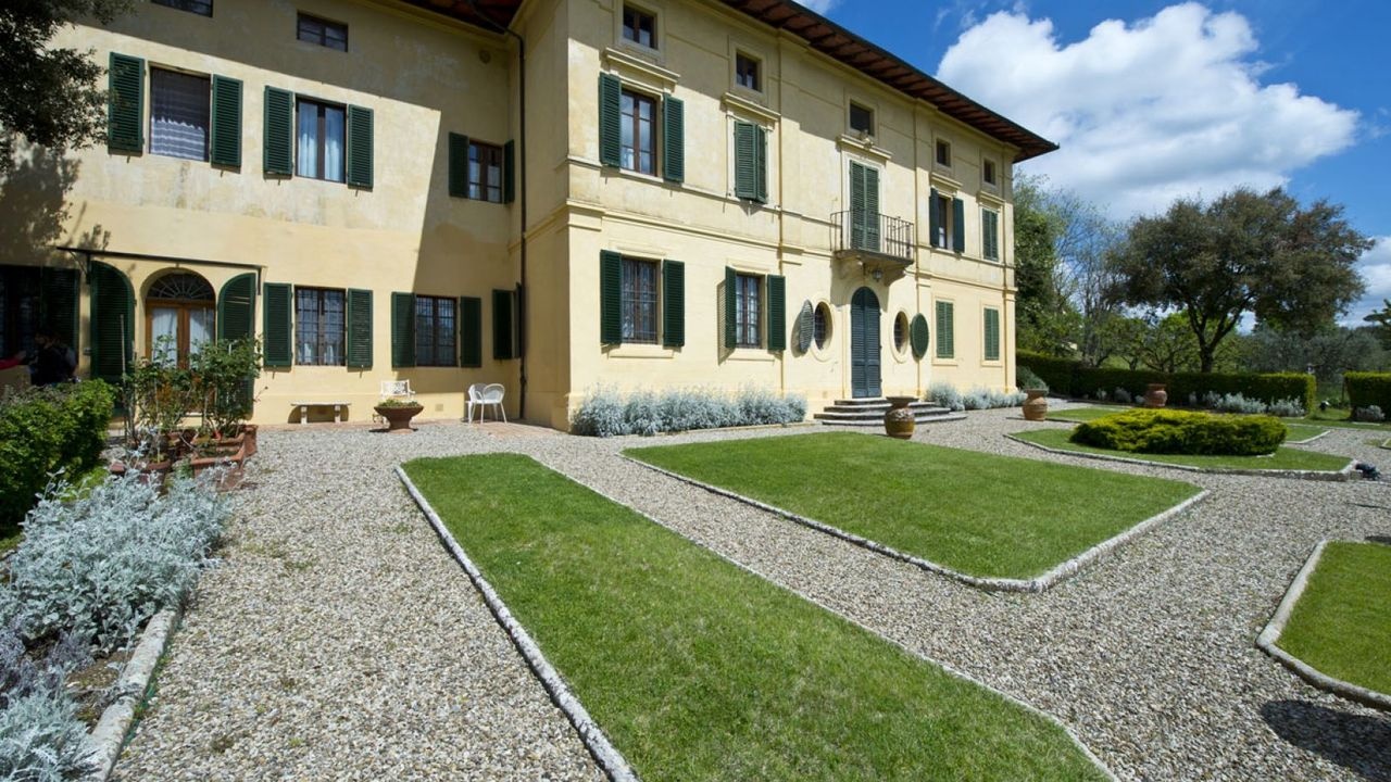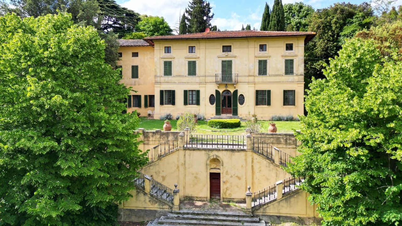 The property, surrounded by three hectares of land with olive grove, park and Italian-style garden, stands out for its historical charm and privileged position.