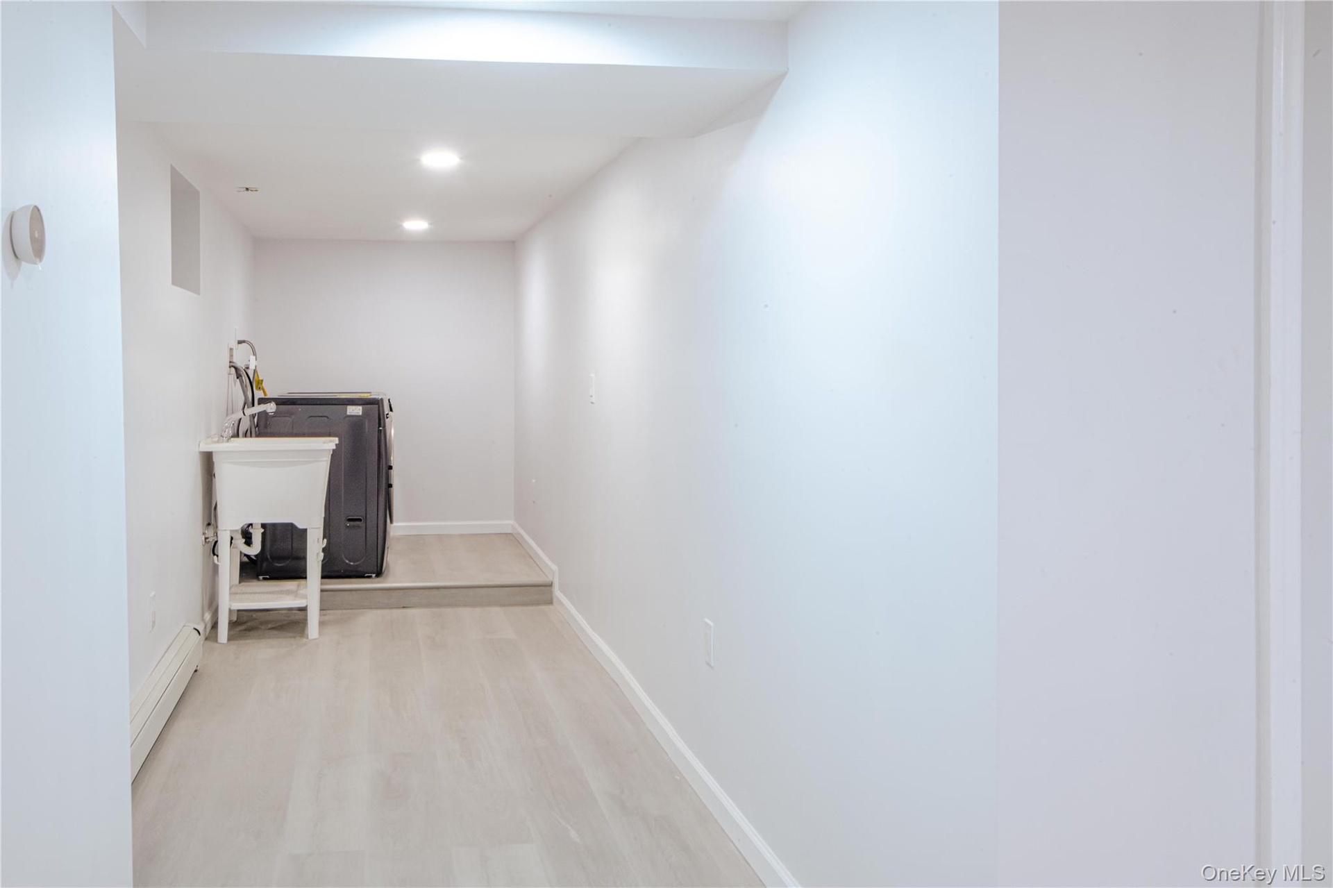 The brand-new, eat-in kitchen is a true showpiece, featuring a large center island, quartz countertops, custom cabinetry, farmhouse sink, built-in gas oven/microwave, smart range hood, and high-end stainless steel appliances. From the kitchen, enjoy direct access to a spacious deck—perfect for outdoor dining, entertaining, or summer grilling.