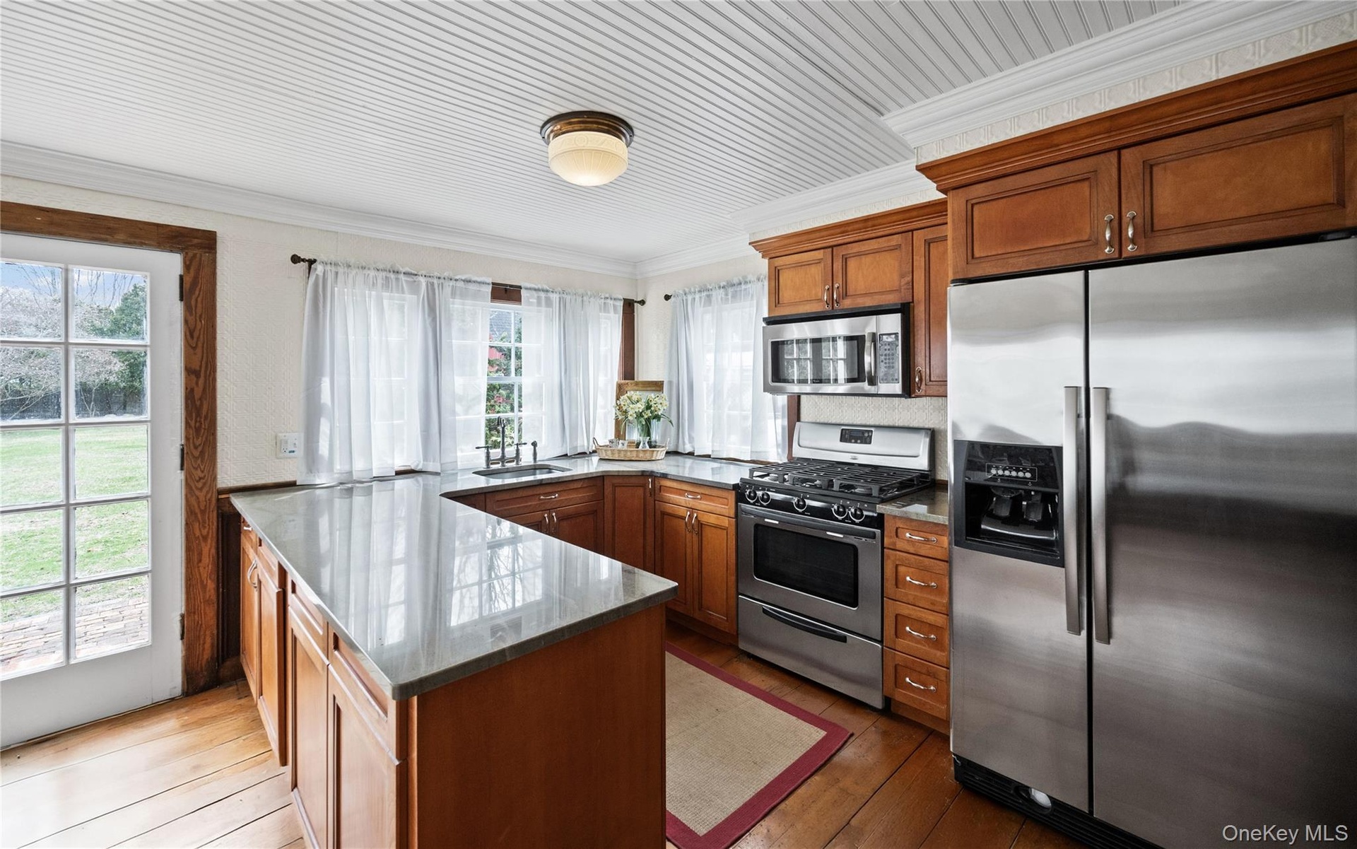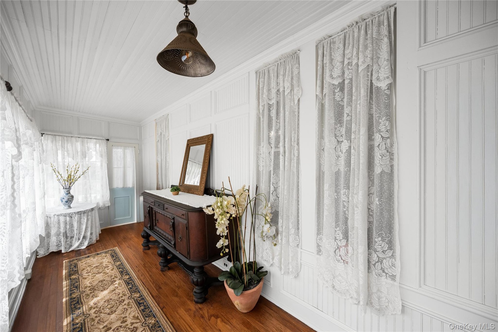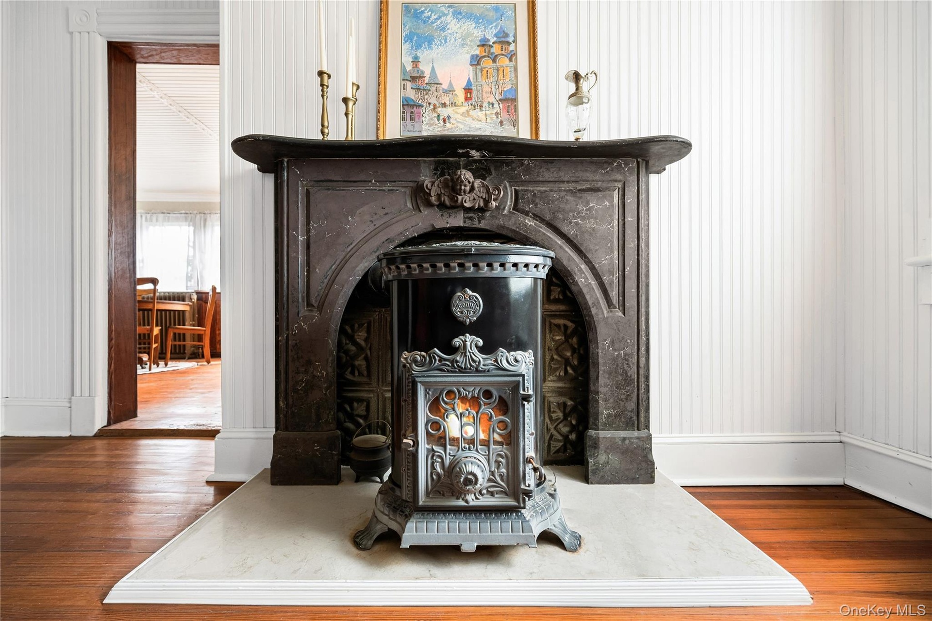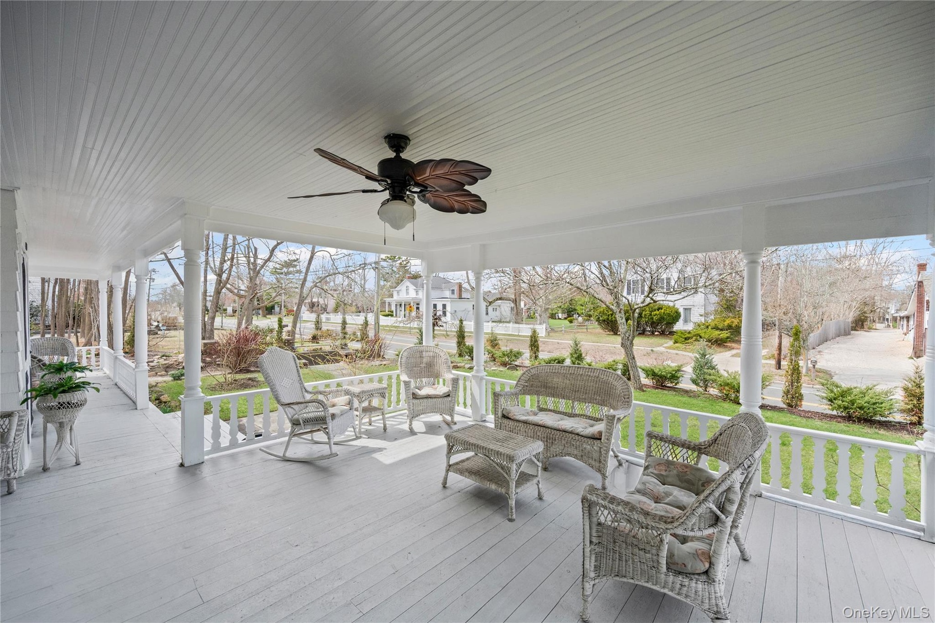 Nestled in the heart of the Historic District, this enchanting 1870 Victorian Farmhouse offers timeless elegance and a rich sense of history. Meticulously maintained and full of character, the home features 5 spacious bedrooms, 3 full bathrooms, and approximately 2,801 square feet of living space set on a beautifully landscaped half-acre lot. The freshly repainted exterior highlights the enduring beauty of the cedar siding, while the 8-year-old cedar roof adds to the home's classic appeal. A gracious wrap-around porch invites quiet mornings and leisurely afternoons. The property also includes a framed but unfinished cottage, a separate shed, and newly planted trees that enhance the storybook setting. Inside, the home showcases original fir hardwood floors, intricate crown molding, antique light fixtures, and ornate radiators. Period details abound, from the rare French Godin stove in the dining area to a traditional fireplace in the living room—adding both charm and warmth. The eat-in kitchen retains its classic appeal while offering generous space for gathering. The private primary suite offers a peaceful retreat, complete with a cozy sitting room that’s perfect for reading, relaxing, or quiet reflection—adding a layer of comfort and charm to the second level. A charming sunroom at the side entry welcomes you in with warmth and natural light, while a separate side room provides the perfect space for a home office, game room, or creative retreat. Two stairways offer easy flow between levels, and a spacious attic provides additional flexibility. Comfort features include Rexall insulation throughout (including between bedrooms for sound and heat retention), a new 275-gallon oil tank, and a new hot water heater. Choice of Westhampton, ESM, or Center Moriches High School. With thoughtful enhancements, preserved craftsmanship, and a location steeped in history, this distinctive home offers a rare opportunity to own a piece of the past.