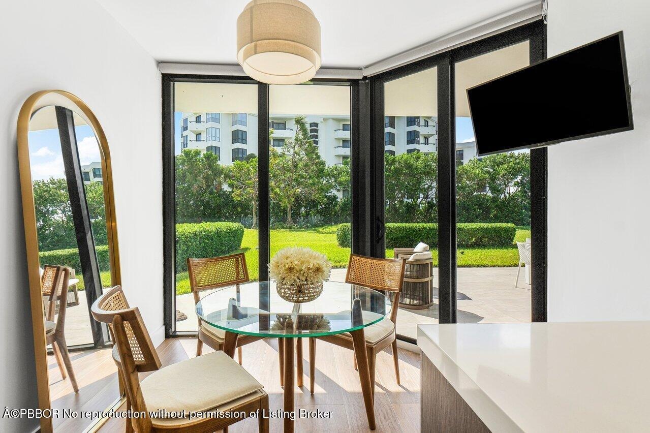 This magnificent 3-bedroom, 3-bathroom lanai offers a tranquil and tropical ambiance, all in a beach house setting. Step inside this spacious, 2,913-foot renovated residence and be greeted by exquisite decorator finishes, 8' 10'' ceilings, and porcelain tile flooring that create an elegant and relaxed atmosphere. Each room has direct access to the outdoor lanai living space, adding another element of this exquisite home. Embrace the outdoors and the coastal lifestyle that Palm Beach has to offer, with direct access to the resort-style swimming pool and hot tub, a private beach, and the ocean. Indulge in an ultra-luxury lifestyle only the Palm Beach Hampton can provide. Stay fit in the new fitness facility, play tennis or pickle ball, or simply relax and unwind. Security is a top priority, with 24/7 manned gates and doormen, as well as two garage spaces. And the best part... Your two pets are welcome to join you in this luxurious haven.