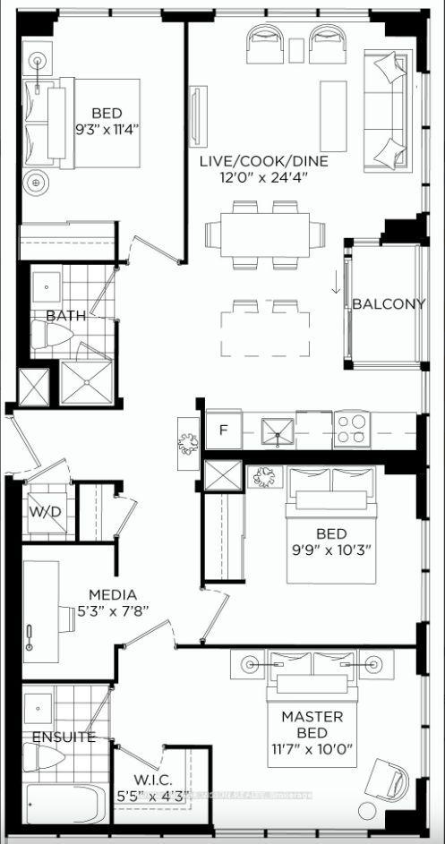 Urban style, convenience, and comfort - welcome home to XO Condos. 3-bedroom + den, 2-bath corner suite offering 1,099 sq. ft. of bright, modern living with parking and storage locker included. Open-concept layout with floor-to-ceiling windows, upscale finishes, a sleek kitchen with integrated appliances, and in-suite laundry.Enjoy 24-hour concierge, fitness and yoga studio, party/meeting rooms, and more in this professionally managed building. Prime King & Dufferin location-steps to TTC transit, Liberty Village, Exhibition Place, cafés, restaurants, and shops.