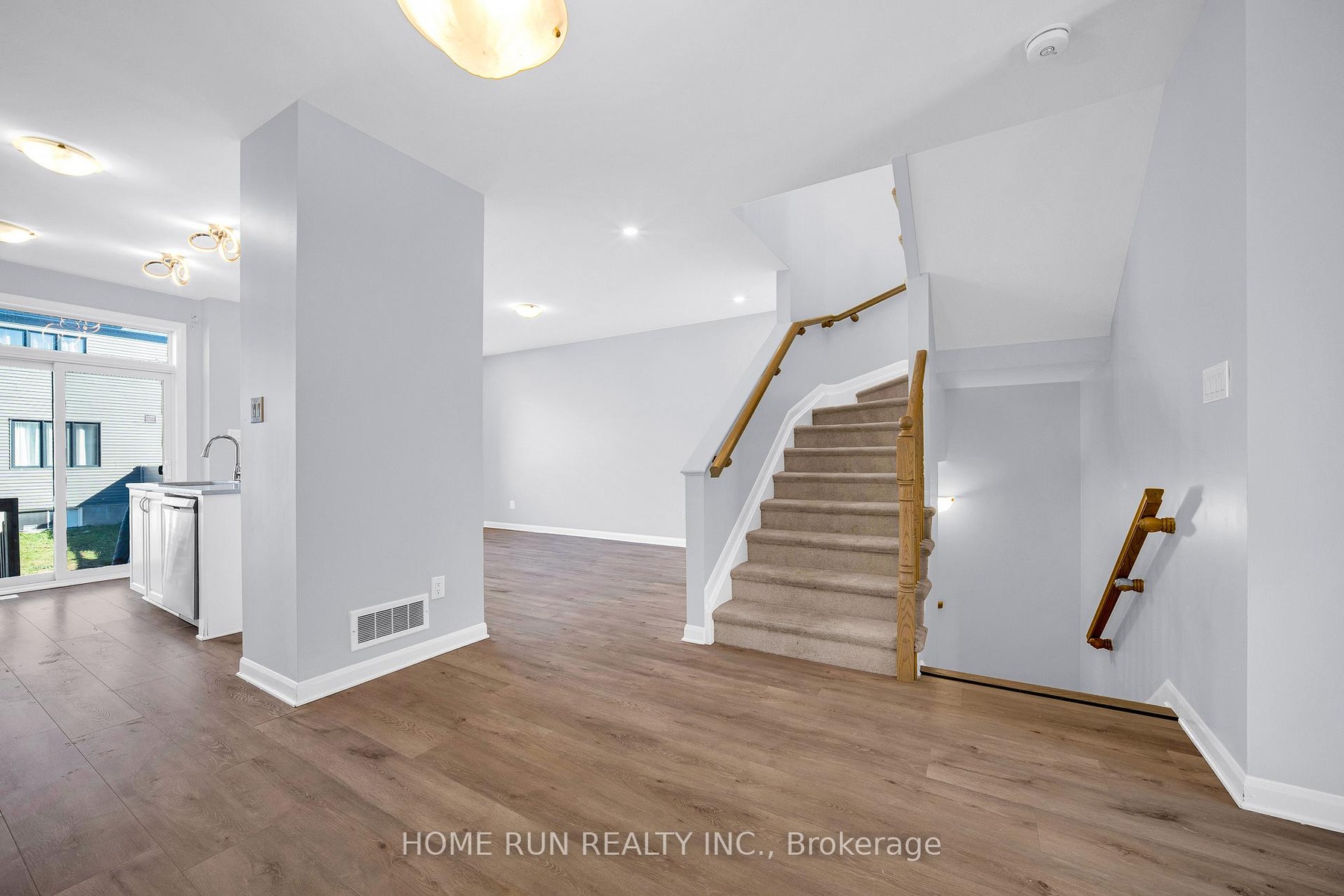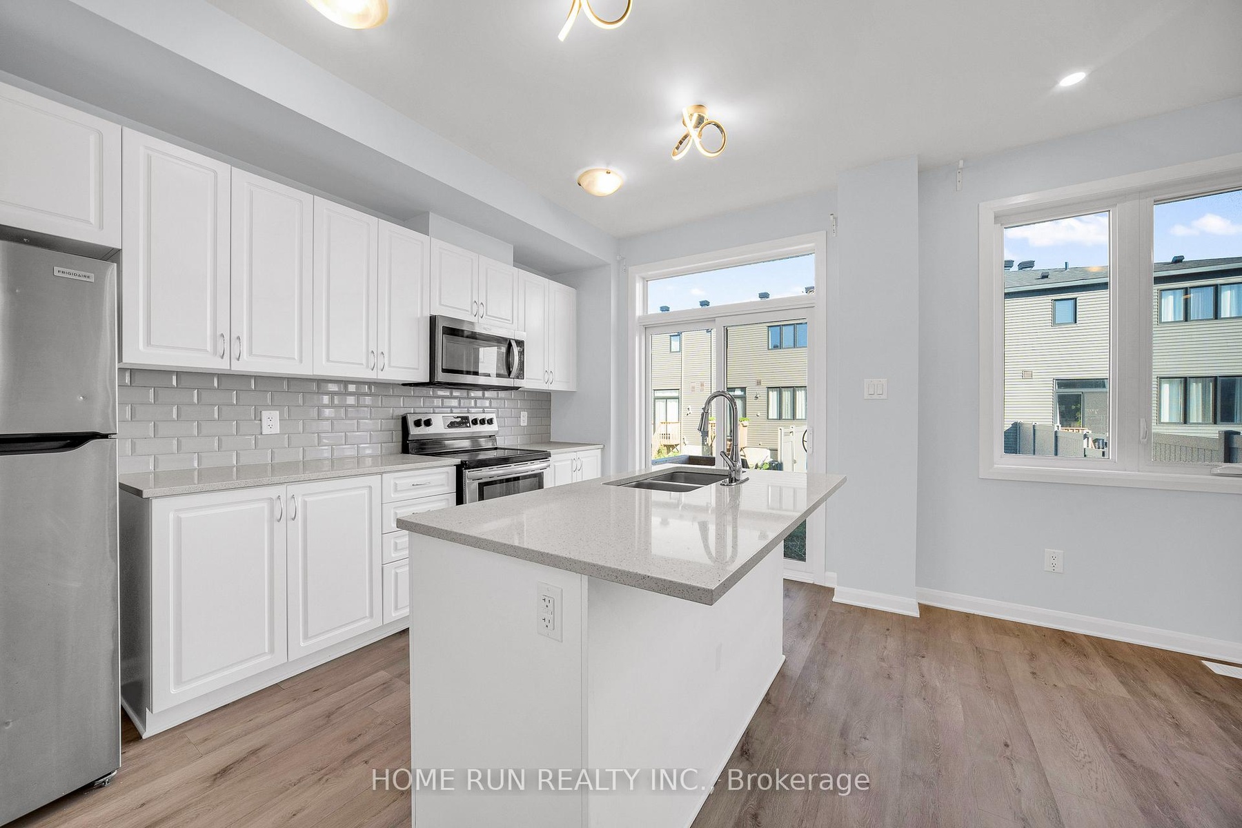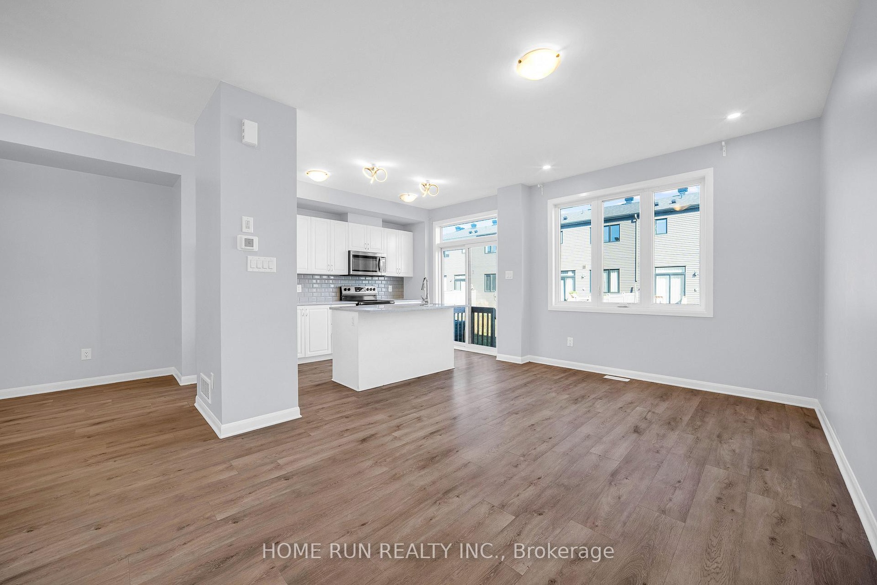 Welcome to this well-maintained modern townhome in the heart of Barrhaven, just steps from schools, parks, shopping, restaurants, and transit. Built in 2022 and freshly painted, this home features 9 ft ceilings on the main level. The kitchen offers stainless steel appliances, a pantry for additional storage, a breakfast bar, and direct access to the backyard. The lower level provides a comfortable family room-ideal for a play area, home office, or media space.Upstairs, the spacious primary bedroom includes a walk-in closet and an ensuite. Two additional bedrooms are well-sized, perfect for family or guests. The extra-long driveway accommodates parking for two vehicles in addition to the garage.The backyard is ready for your personal landscaping or outdoor entertaining vision. A great opportunity to live in a convenient and family-friendly neighbourhood.