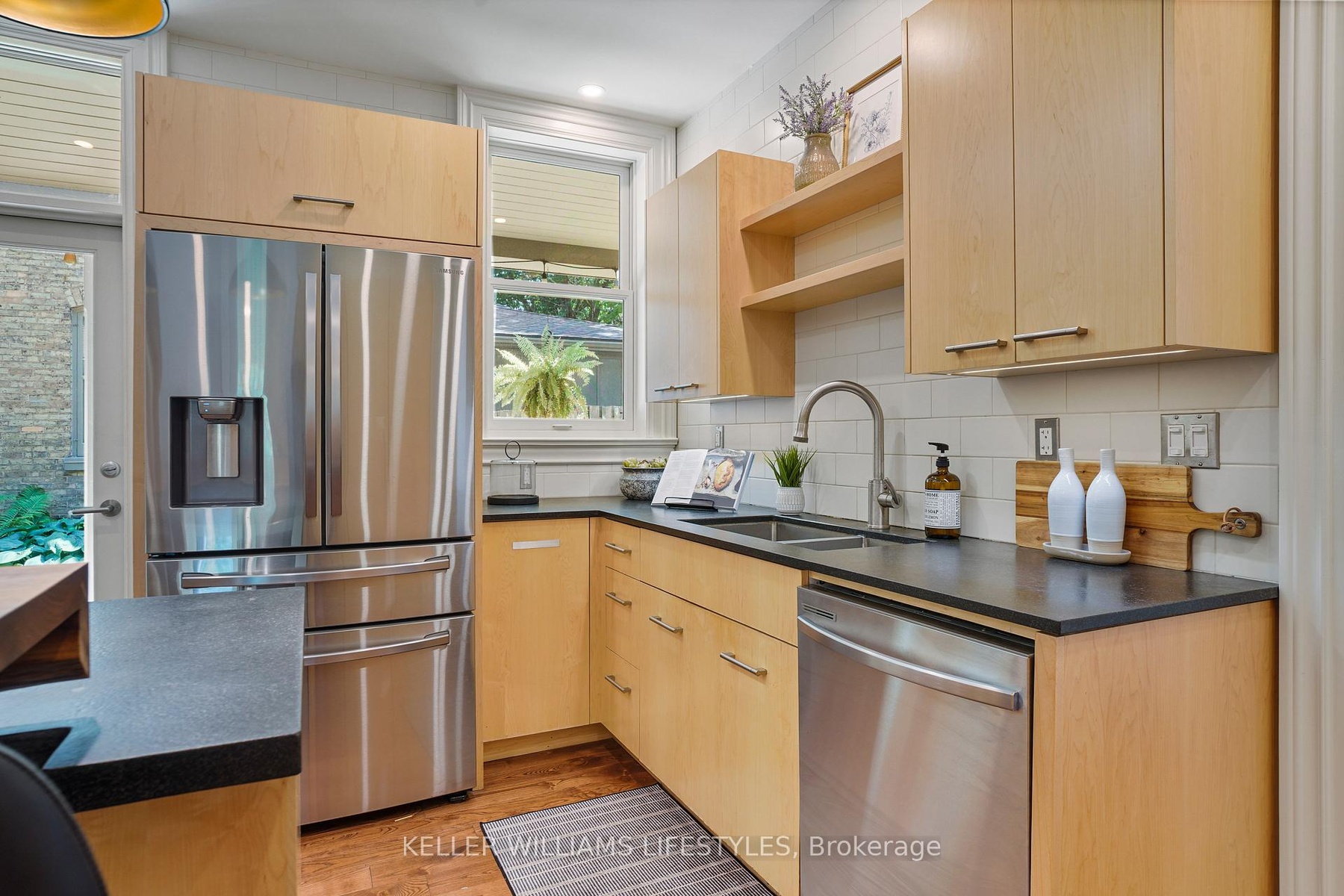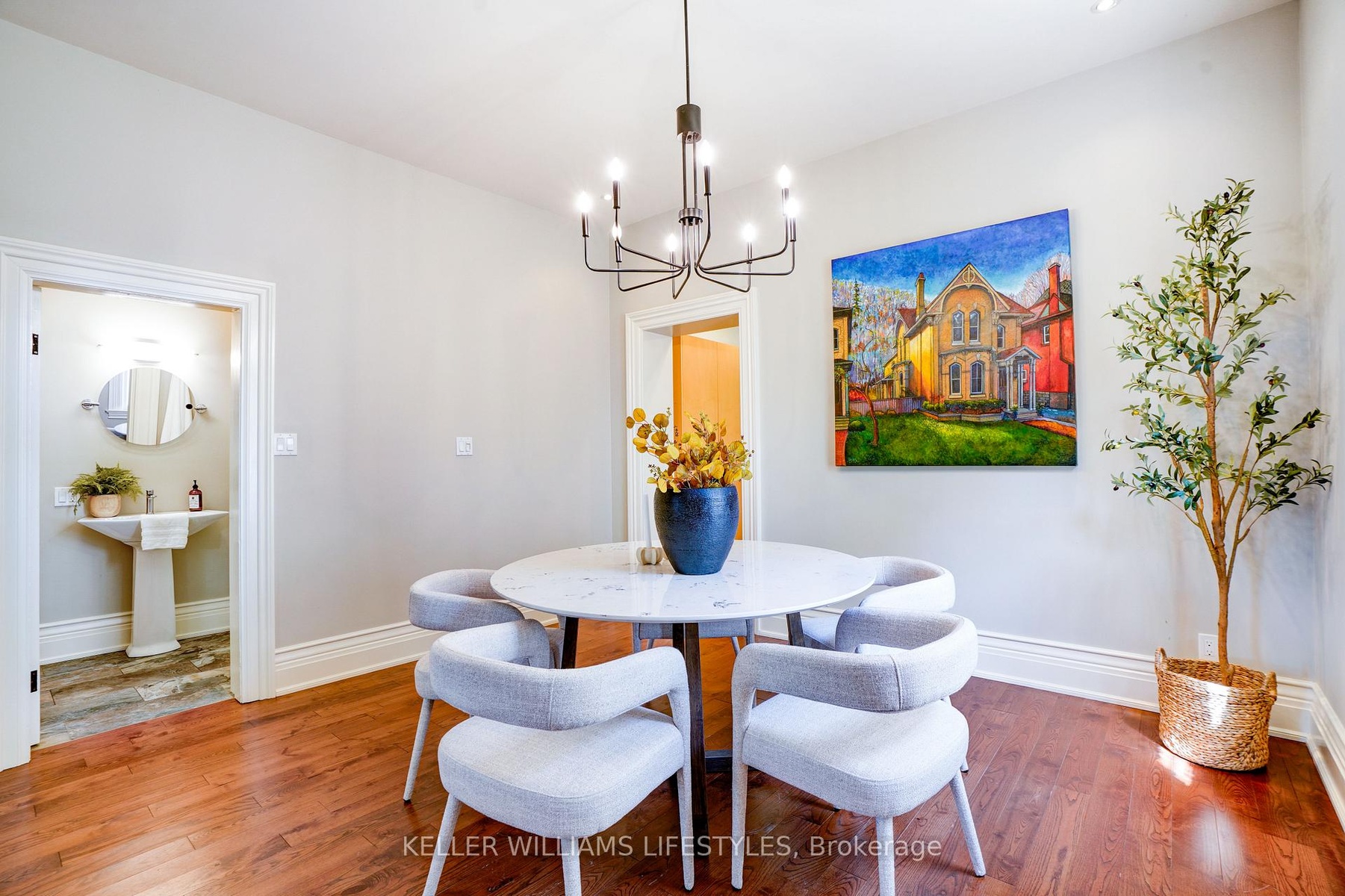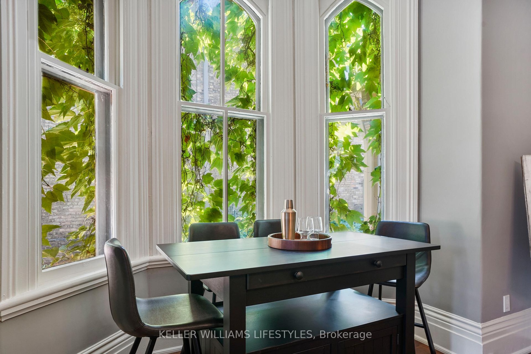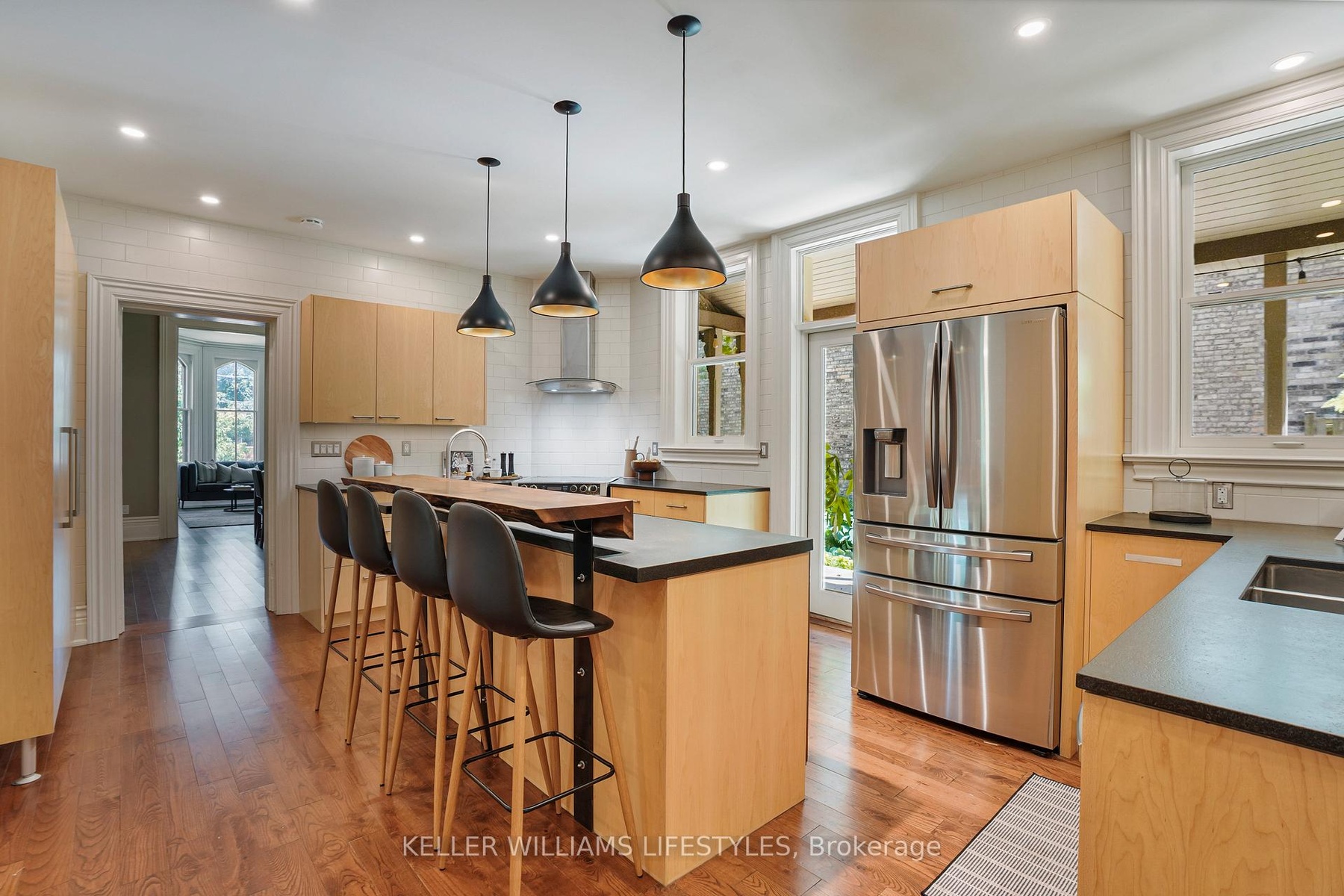 Discover a masterpiece in the heart of the prestigious Woodfield district. This magnificent home offers an unparalleled fusion of historic elegance and sophisticated modern living. With over 2,700 sq. ft. of exquisitely finished space AG, this 4-bedroom residence is a testament to timeless character and thoughtful renovation. Step through the grand double doors into a breathtaking foyer where a majestic staircase and soaring ceilings set a tone of classic grandeur. The main floor is an entertainer's dream, featuring a formal living room with a decorative fireplace and a spacious dining room, both adorned with intricate crown moulding and rich hardwood floors. The heart of the home is the stunning, fully renovated kitchen, which boasts leathered countertops, premium stainless-steel appliances, a large centre island, and seamless flow into the cozy family room. This level also provides exceptional flexibility with a dedicated home office and convenient main floor laundry. Upstairs, the private quarters include four generous bedrooms. The serene primary suite is a true retreat, featuring a spa-like ensuite bathroom with a glass-enclosed shower, and a modern double vanity. An open loft area on this level provides another versatile space for work or relaxation. The finished lower level adds a large recreation room. Outside, the property sits on a beautifully landscaped lot with a long, interlocking stone driveway providing ample parking. The private, fenced backyard offers a tranquil escape within the city. Situated on a mature, tree-lined street, this home is just steps from the vibrant culture of downtown London, Richmond Row's boutiques and restaurants, and beautiful Victoria Park. Its prime location also offers an effortless commute to Western University and London's major hospital campuses. Families who want to ensure a priority in academics can rest easy knowing they are situated within boundaries of top schools like Central SS, Banting FI & CCH & MTS FI.