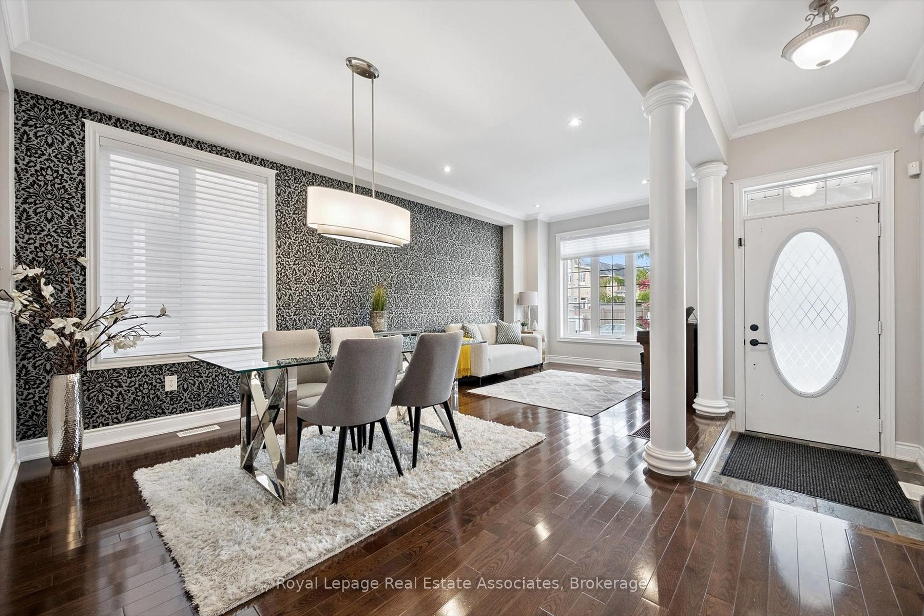Located in highly sought after Lakeshore Woods and just steps from the lake, this beautifully maintained 4-bedroom, 3-bathroom home offers over 2,000 square feet of open-concept living space. The main floor has hardwood flooring throughout the main living areas, starting with the sun-filled open concept living & dining room that features a custom accent-wall, a modern dining pendant, and crown moulding. The kitchen features ceiling-height wood cabinetry, granite counters, stainless-steel appliances and a spacious breakfast nook with a walkout to the patio for easy indoor-outdoor flow. Open to the kitchen, the family room invites relaxation with a gas fireplace, and two large windows. Completing the main level are the powder room and large laundry room with direct access to the garage. The second level has hardwood floors throughout, starting with the private primary bedroom that features a 5 pc. Ensuite bathroom that features a double vanity, glass shower and deep soaker tub, and a large walk-in closet. Three additional bright bedrooms provide exceptional square footage and ample closet space, and are served by the 2nd full bathroom on this level. The fully fenced backyard blends function and leisure with a large patio for dining and lounging, plenty of greenspace for play, and a convenient storage shed. This home is located in one of the most convenient areas in Oakville. It is just steps from Creek Path Woods and year round nature trails, South Shell Park Beach, Tennis/Pickleball courts, grocery stores, top-rated schools, the Bronte GO Station, shopping, and Highways 403/QEW. This move-in ready house is waiting for you to call it home. Book your private viewing today.
