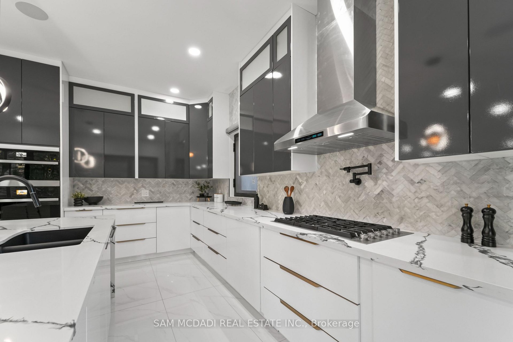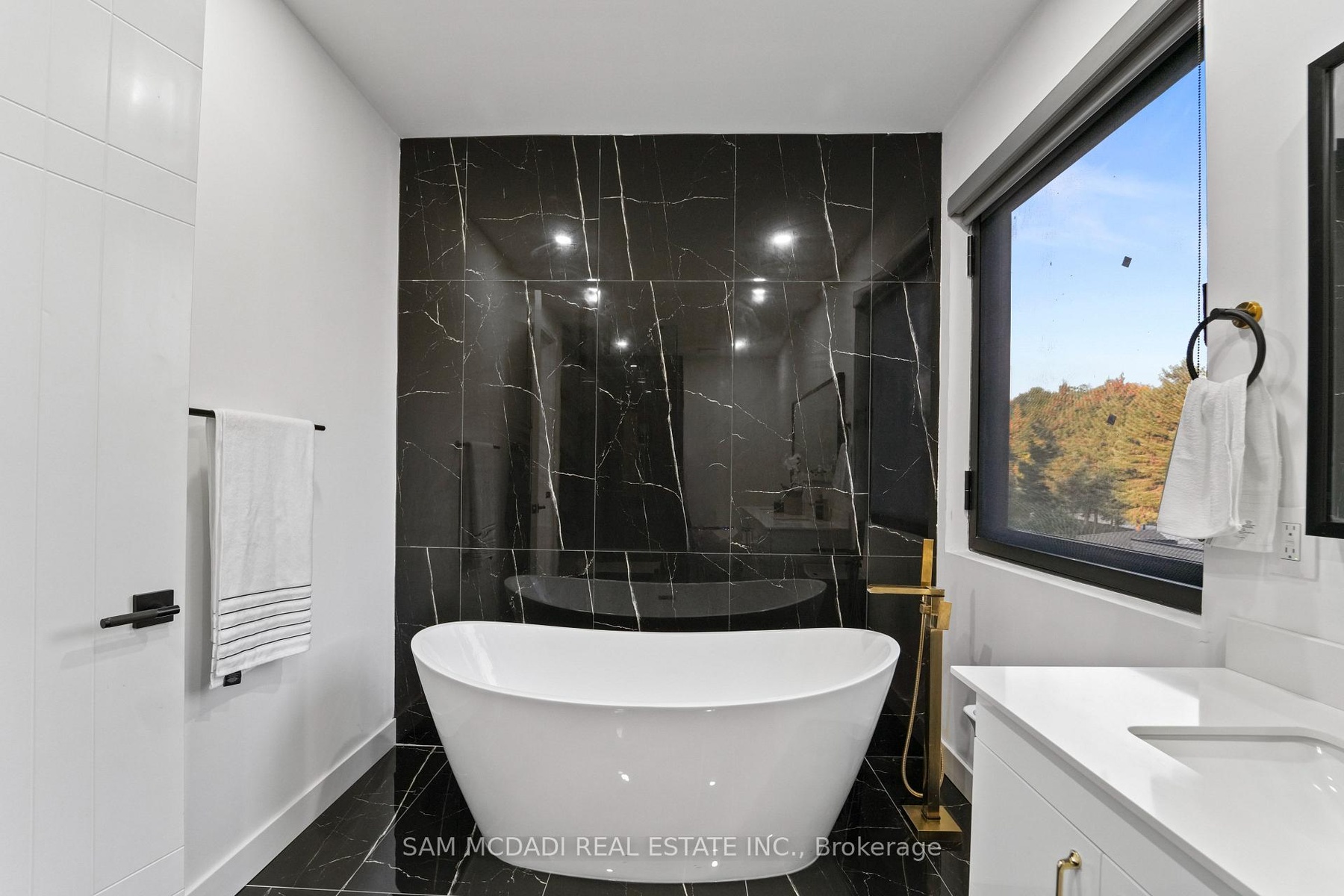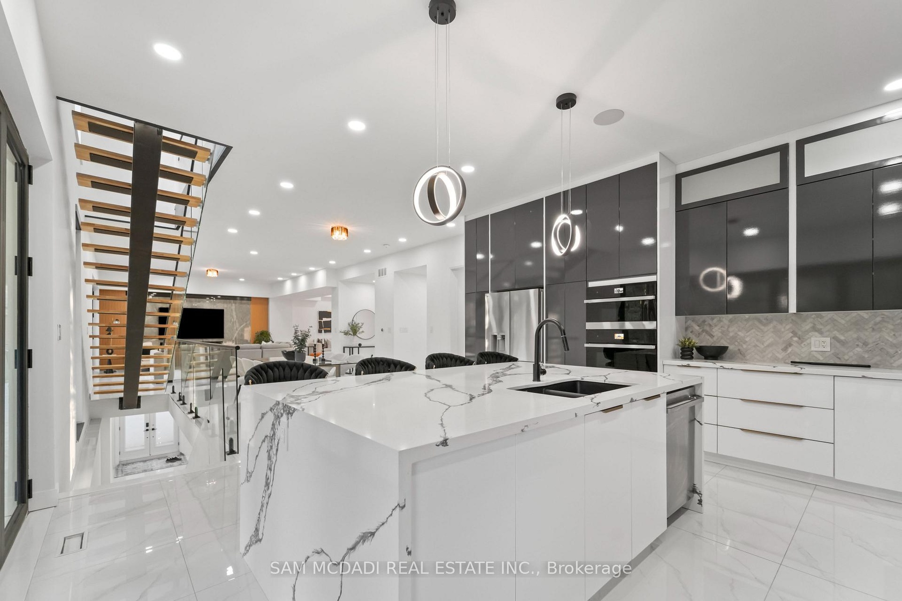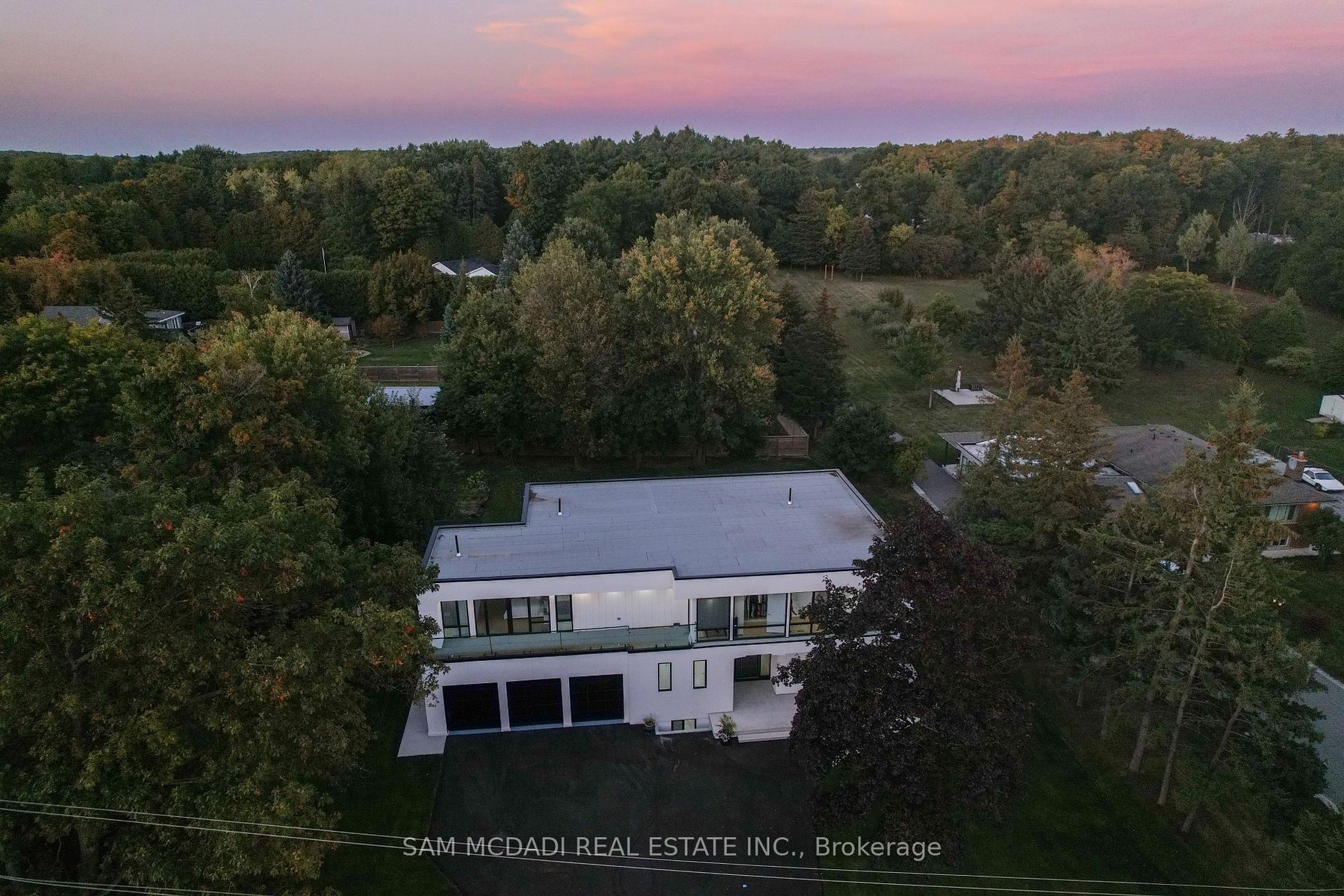 Located on a private half acre lot in one of Burlington's most desirable settings, this new custom modern estate offers nearly 6,000 SF of refined living space. Designed with bold architecture and contemporary finishes, the home reflects state-of-the-art features for todays discerning buyer. Inside, porcelain tile flooring flows across the main and lower levels, while glass-railed white oak staircases and engineered hardwood enrich the upper quarters. A gourmet kitchen with quartz countertops, premium appliances, a walk-in pantry, and an oversized centre island anchors the open-concept main floor, seamlessly connecting the dining, living, and family rooms. Oversized walk-outs extend to a private terrace and backyard oasis, perfect for summer entertaining or morning coffee. The upper level boasts a primary retreat with a spa-inspired 5-pc ensuite, walk-in closet, and balcony views. Each additional bedroom enjoys its own ensuite, creating private sanctuaries for family and guests. Bathrooms throughout are appointed with designer porcelain tile, custom vanities, and luxury fixtures. The fully finished lower level expands the lifestyle, offering a sprawling recreation room, additional bedroom, full bath, and cold storage, ideal for a home gym, theatre, or lounge. Built-in ceiling speakers, central vacuum, and oversized windows further enhance everyday living. Beyond the home itself, families will appreciate the lifestyle that comes with this location: weekend hikes at Mount Nemo Conservation Area just minutes away, golf outings at Burlington Springs, quick access to shops and dining along Guelph Line, and waterfront strolls or festivals at Spencer Smith Park. With top schools, medical services, and the Royal Botanical Gardens all nearby, convenience pairs effortlessly with serenity.