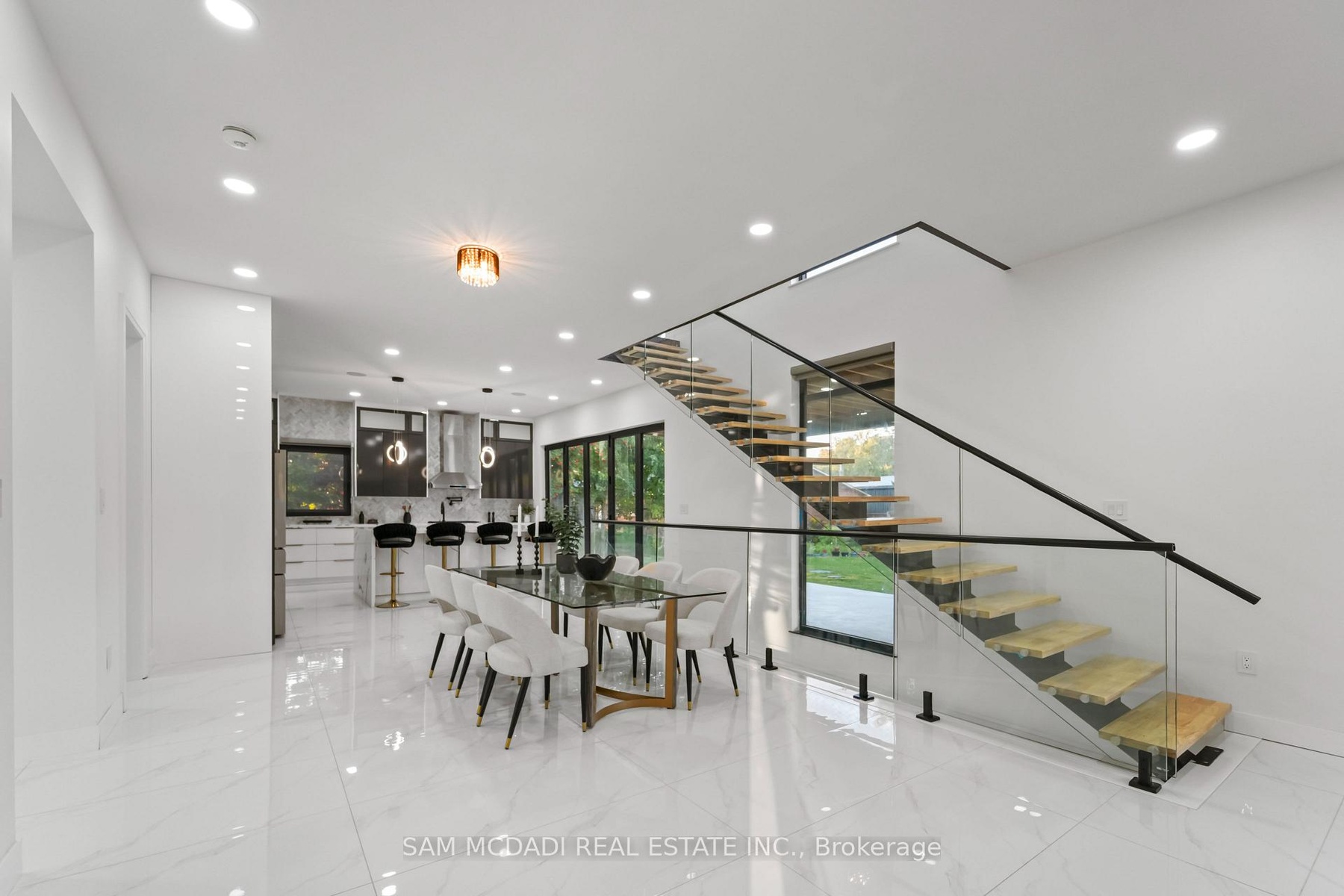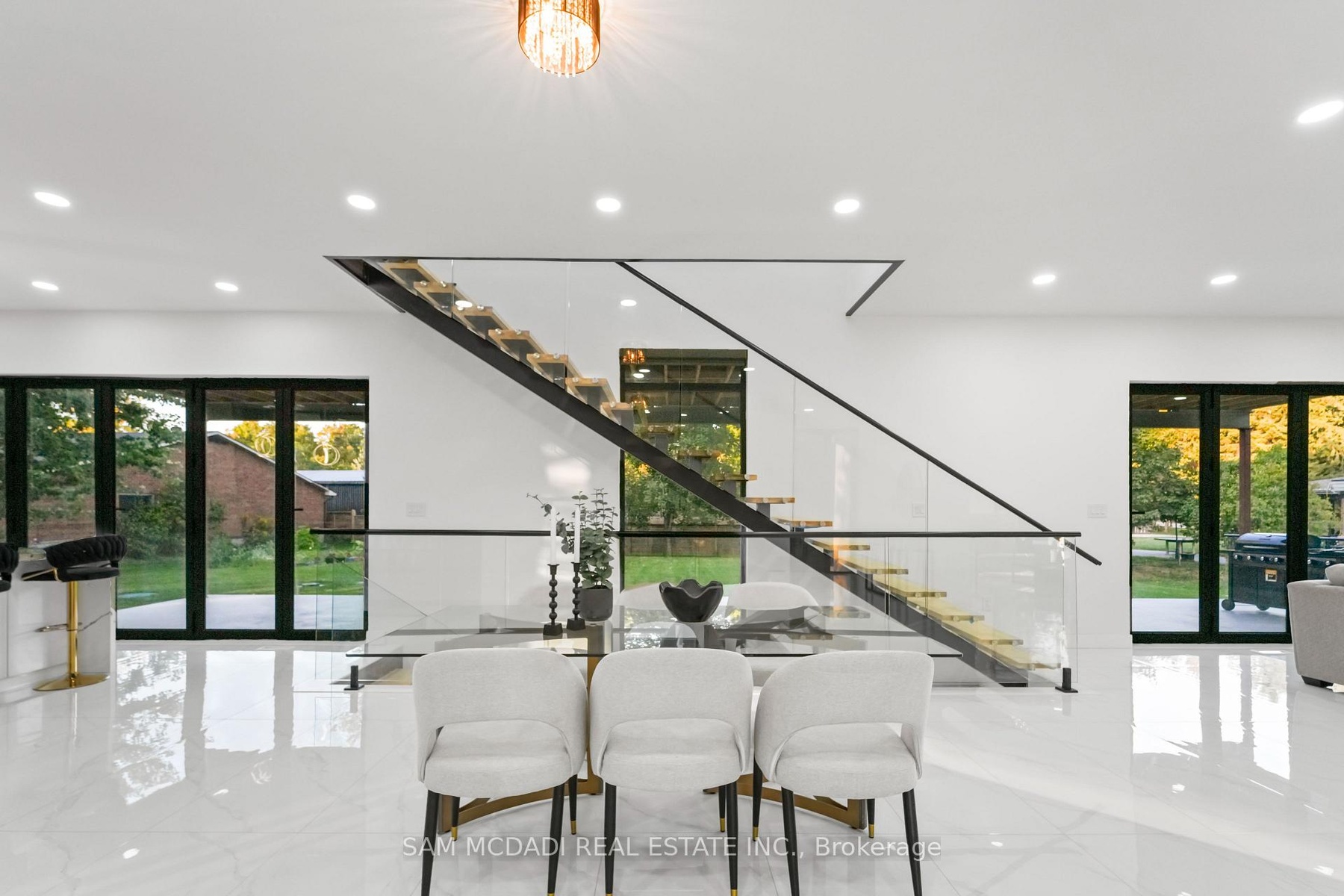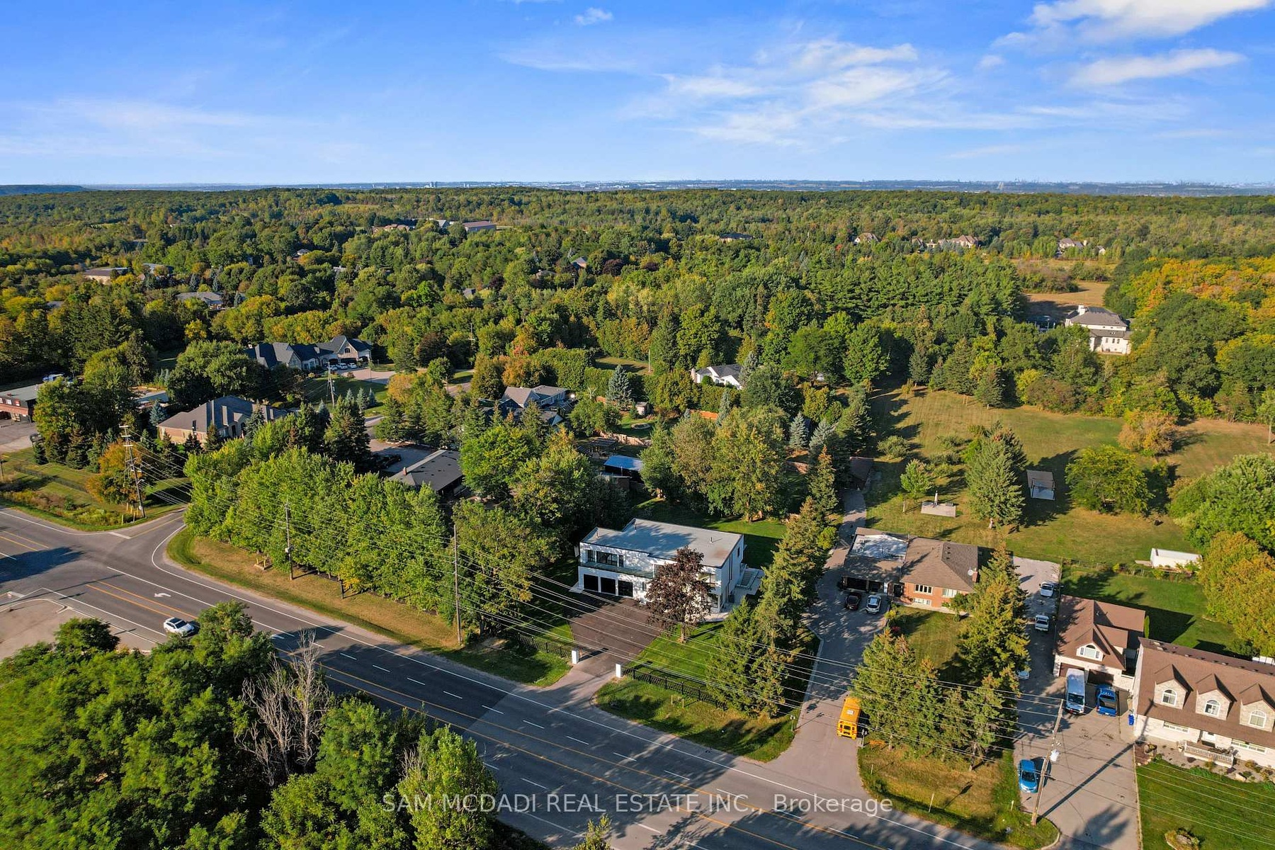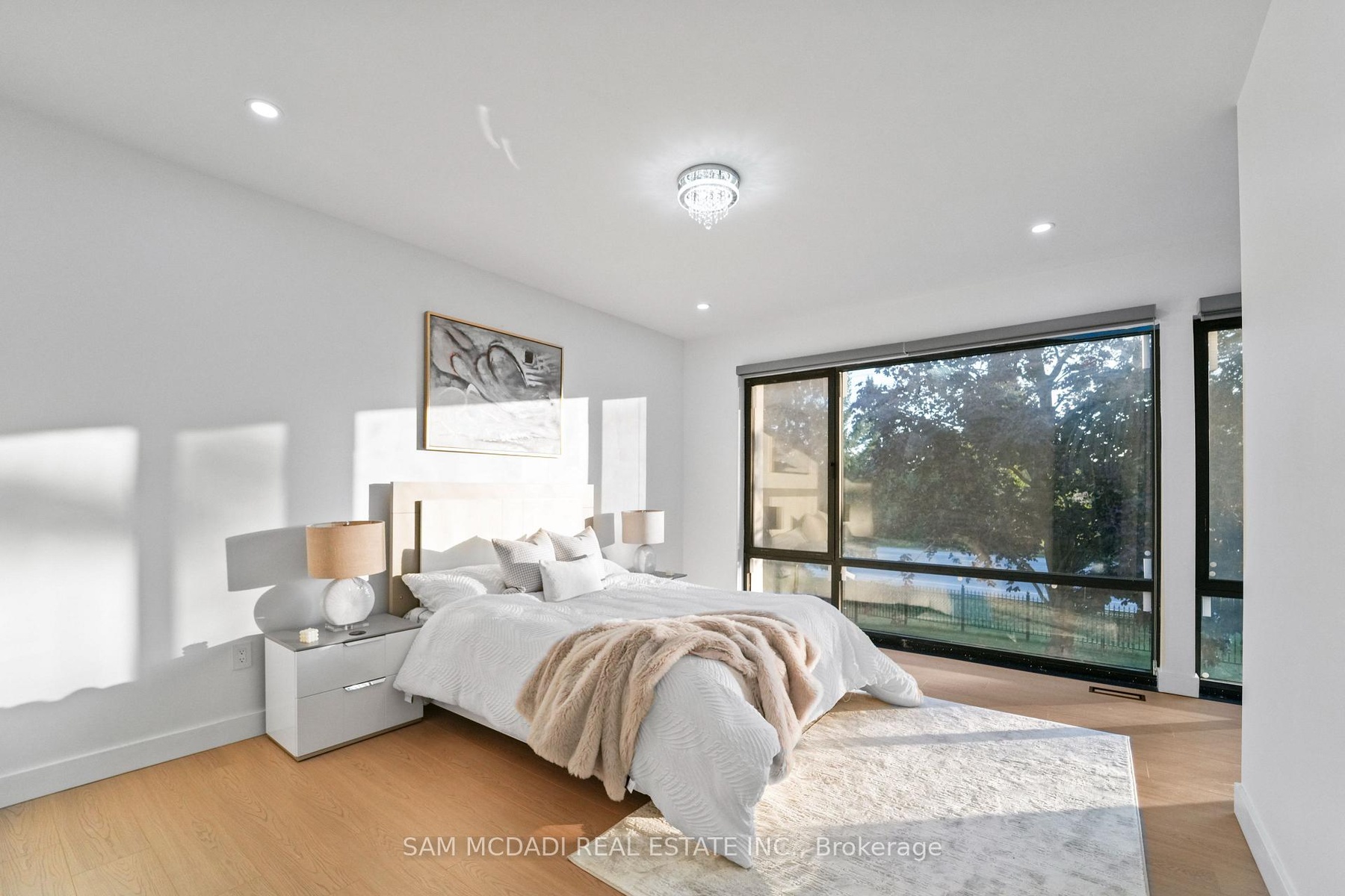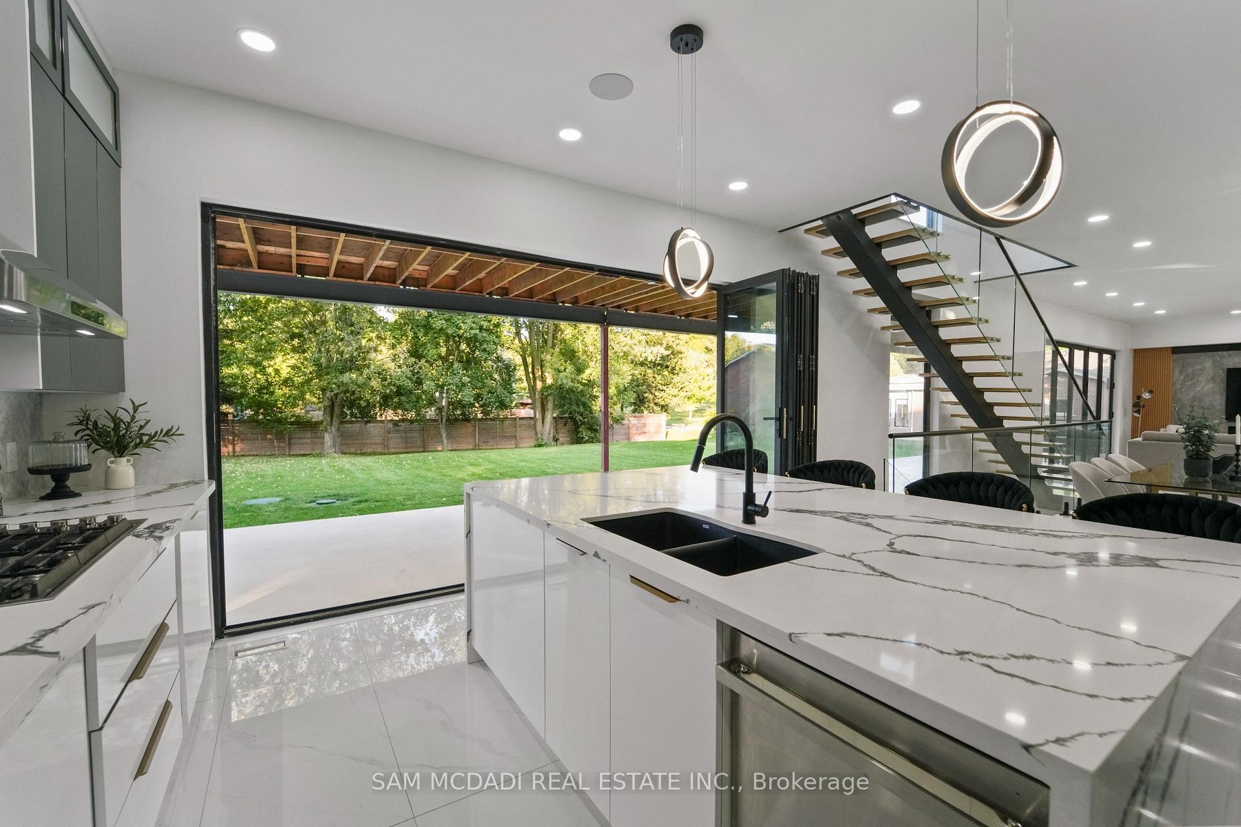 Located on a private half acre lot in one of Burlington's most desirable settings, this new custom modern estate offers nearly 6,000 SF of refined living space. Designed with bold architecture and contemporary finishes, the home reflects state-of-the-art features for todays discerning buyer. Inside, porcelain tile flooring flows across the main and lower levels, while glass-railed white oak staircases and engineered hardwood enrich the upper quarters. A gourmet kitchen with quartz countertops, premium appliances, a walk-in pantry, and an oversized centre island anchors the open-concept main floor, seamlessly connecting the dining, living, and family rooms. Oversized walk-outs extend to a private terrace and backyard oasis, perfect for summer entertaining or morning coffee. The upper level boasts a primary retreat with a spa-inspired 5-pc ensuite, walk-in closet, and balcony views. Each additional bedroom enjoys its own ensuite, creating private sanctuaries for family and guests. Bathrooms throughout are appointed with designer porcelain tile, custom vanities, and luxury fixtures. The fully finished lower level expands the lifestyle, offering a sprawling recreation room, additional bedroom, full bath, and cold storage, ideal for a home gym, theatre, or lounge. Built-in ceiling speakers, central vacuum, and oversized windows further enhance everyday living. Beyond the home itself, families will appreciate the lifestyle that comes with this location: weekend hikes at Mount Nemo Conservation Area just minutes away, golf outings at Burlington Springs, quick access to shops and dining along Guelph Line, and waterfront strolls or festivals at Spencer Smith Park. With top schools, medical services, and the Royal Botanical Gardens all nearby, convenience pairs effortlessly with serenity.