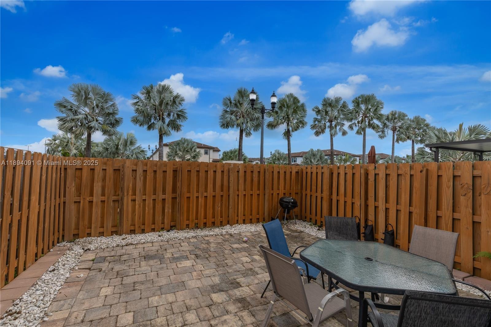 Gorgeous 3-bedroom, 2.5-bath townhouse built in 2019, located in the highly desirable gated community of Coco Palm Villas. This home offers beautiful curb appeal with two assigned parking spaces plus guest parking, tile flooring on the first floor and luxury vinyl plank upstairs, freshly painted interior, tall baseboards, and modern light fixtures and ceiling fans. The kitchen features quartz countertops, stainless steel appliances, a modern backsplash, window over the sink overlooking the fenced patio. Laundry room with Washer and dryer included. Enjoy resort-style amenities: fitness center, hot spa, dog park, playground, and 24-hour gated security. HOA includes lawn and common area maintenance.