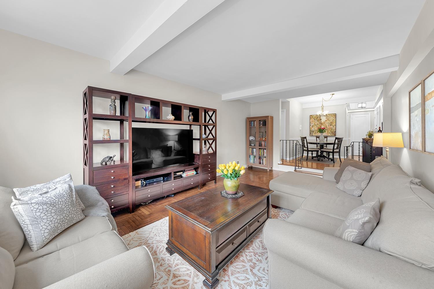 This spacious home blends prewar charm with modern updates, featuring a gracious layout that includes a sunken living room, separate dining area, and elegant herringbone hardwood floors throughout. Oversized casement windows fill the space with natural light and showcase beautiful views of the treetops and brownstones on West 76th Street.