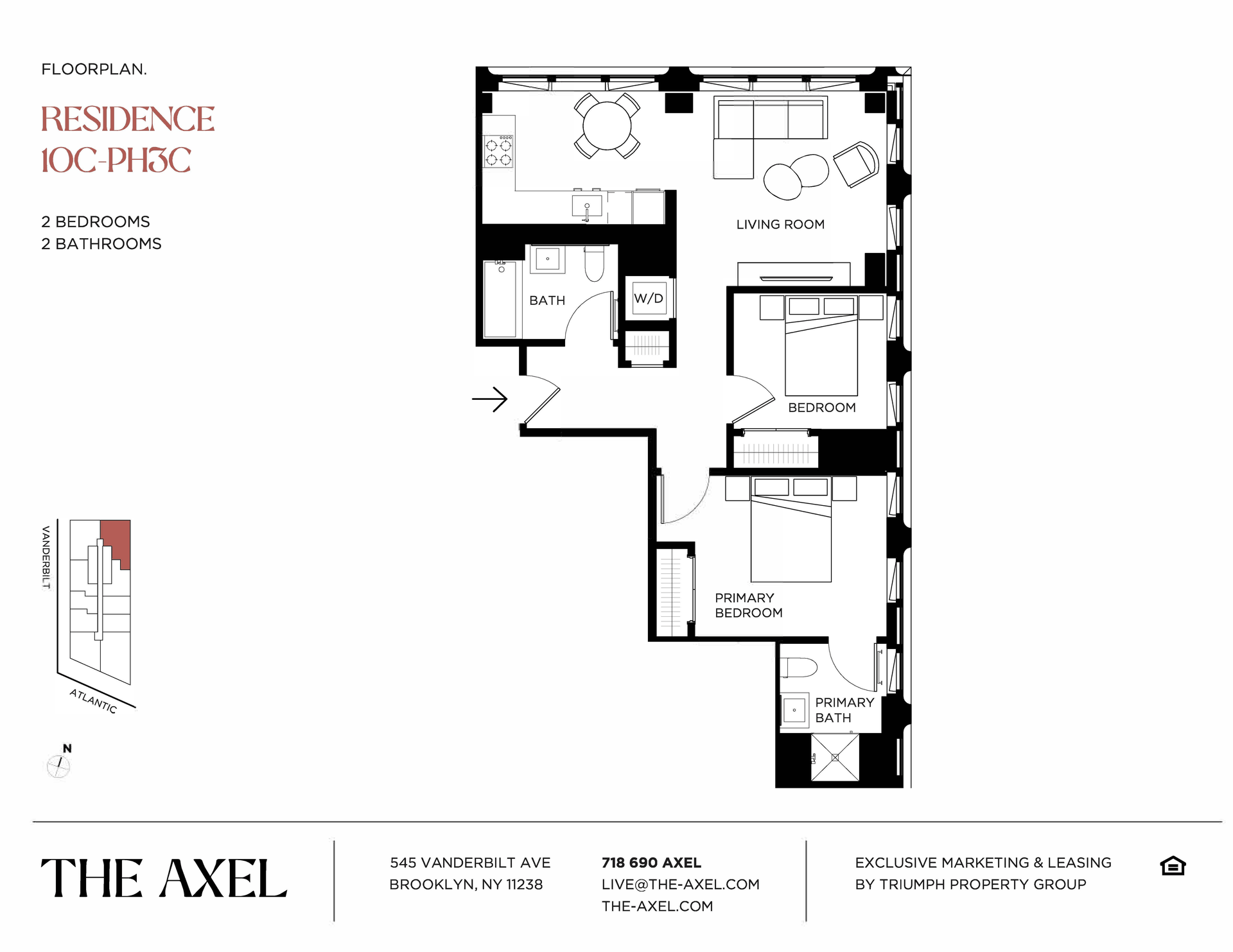 Located at 545 Vanderbilt Ave, The Axel is conveniently within walking distance of some of Brooklyn’s landmarks including the Brooklyn Botanical Garden, Grand Army Plaza, Prospect Park, and Barclays Center. Transportation in the city is a breeze as The Axel is nested near over ten MTA train lines and the Long Island Rail Road.