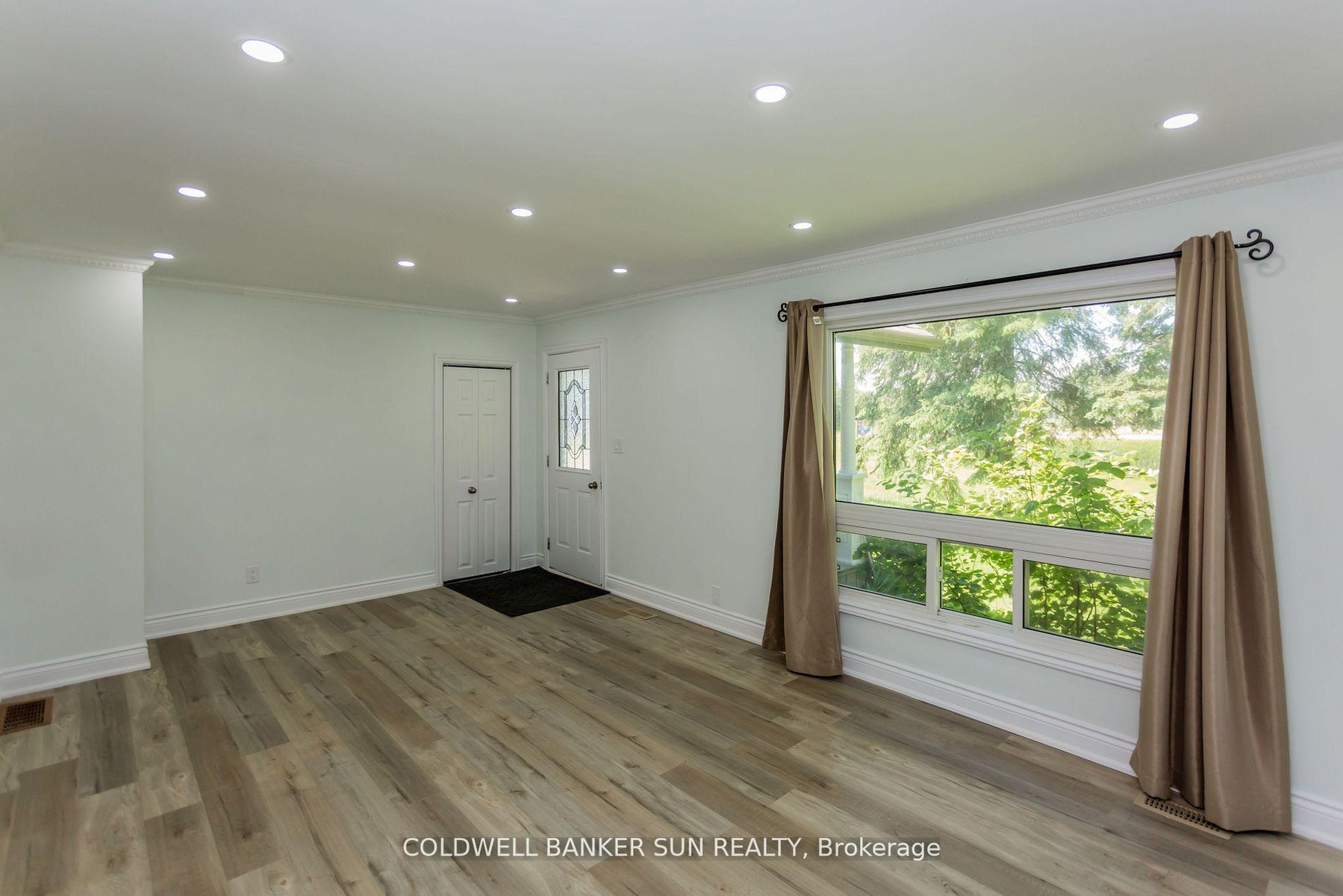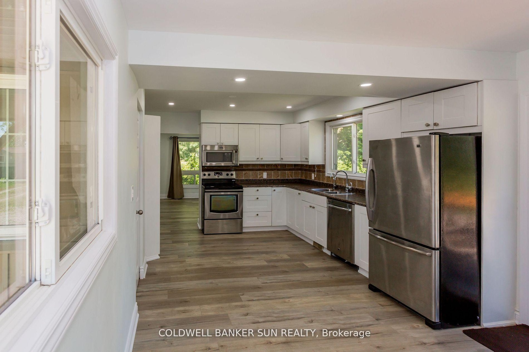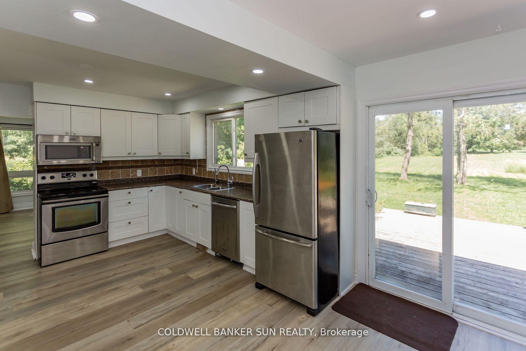 Fully upgraded 2-bedroom bungalow situated on over 3 acres of land just 2 minutes from Hwy 401 and Toyota. This beautiful country property offers the perfect blend of privacy and convenience. Featuring new vinyl flooring throughout, fresh paint, and an updated kitchen with stainless steel appliances, this home is move-in ready. Enjoy abundant pot lights and a walkout to a large deck overlooking hundreds of feet of open land and mature bush ideal for relaxing or entertaining. The outbuilding, constructed using storage containers and wood, is heated and provides excellent space for a workshop or additional storage. A new central A/C system was installed in summer 2025. Flexible options available, the buyer can assume the existing tenant or take vacant possession upon closing. Kindly respect tenants privacy and personal belongings during all showings. Pictures were taken prior to tenant occupancy.