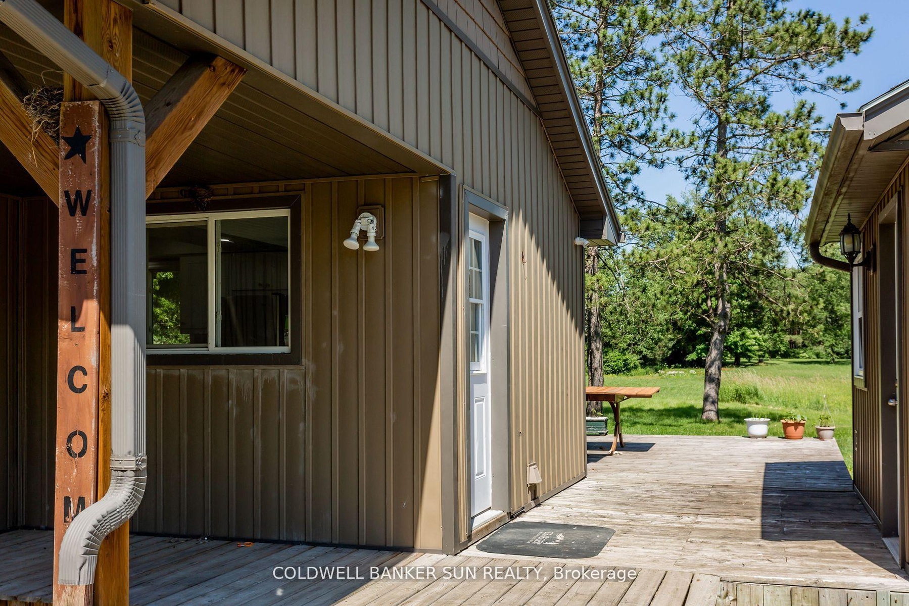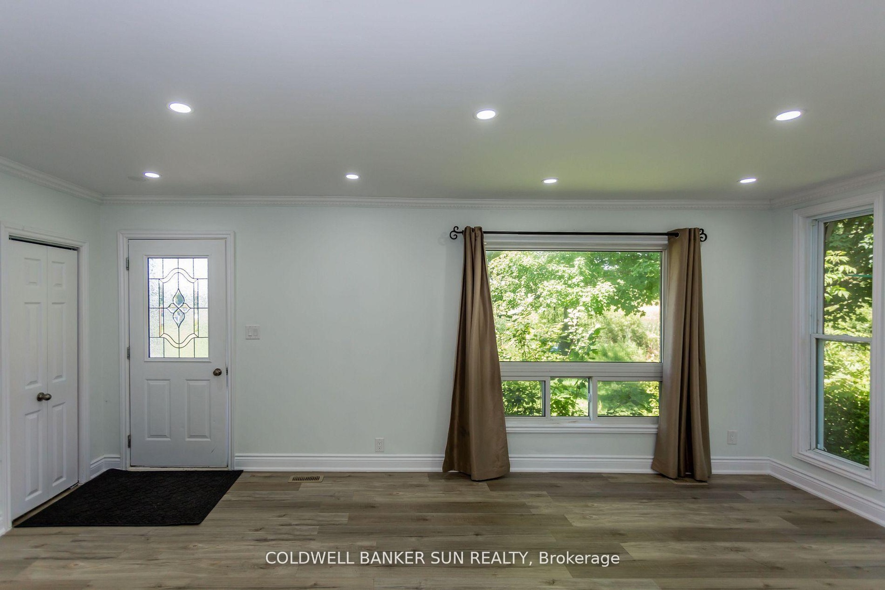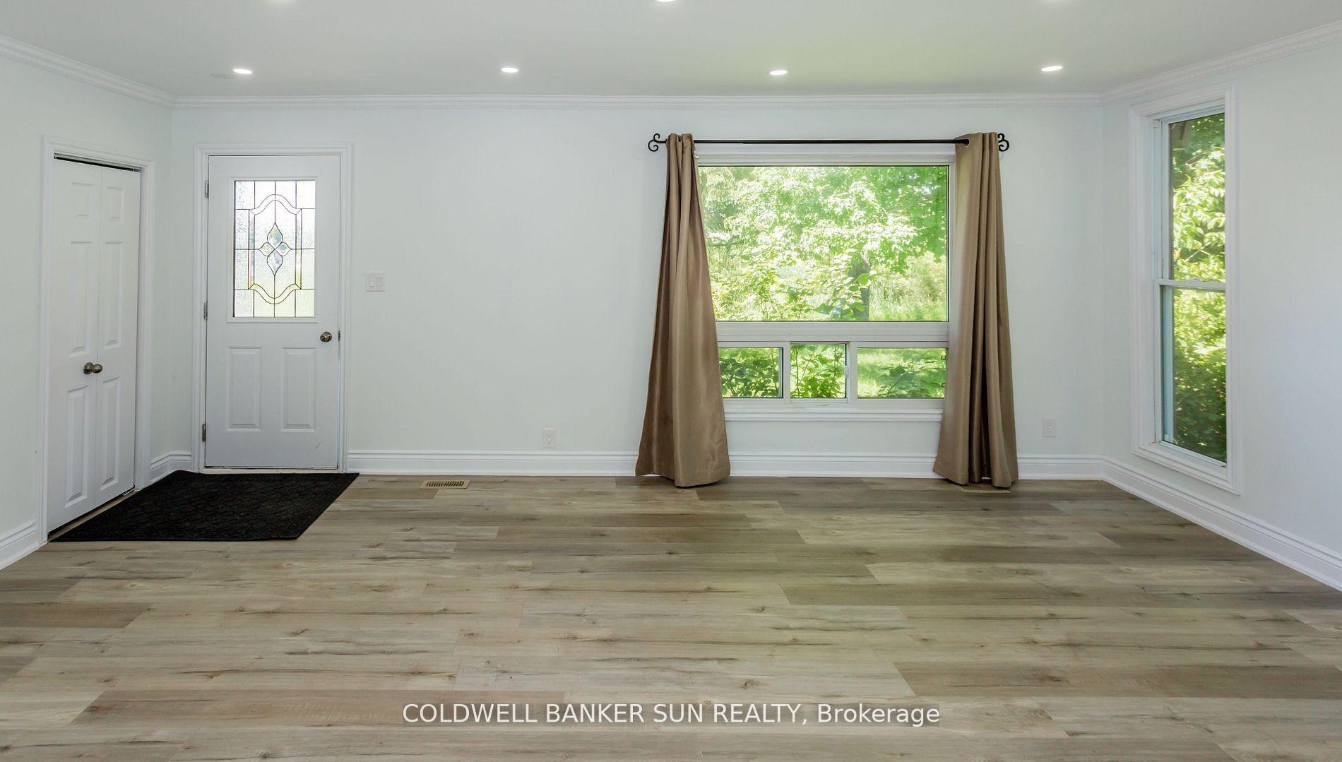 Fully upgraded 2-bedroom bungalow situated on over 3 acres of land just 2 minutes from Hwy 401 and Toyota. This beautiful country property offers the perfect blend of privacy and convenience. Featuring new vinyl flooring throughout, fresh paint, and an updated kitchen with stainless steel appliances, this home is move-in ready. Enjoy abundant pot lights and a walkout to a large deck overlooking hundreds of feet of open land and mature bush ideal for relaxing or entertaining. The outbuilding, constructed using storage containers and wood, is heated and provides excellent space for a workshop or additional storage. A new central A/C system was installed in summer 2025. Flexible options available, the buyer can assume the existing tenant or take vacant possession upon closing. Kindly respect tenants privacy and personal belongings during all showings. Pictures were taken prior to tenant occupancy.