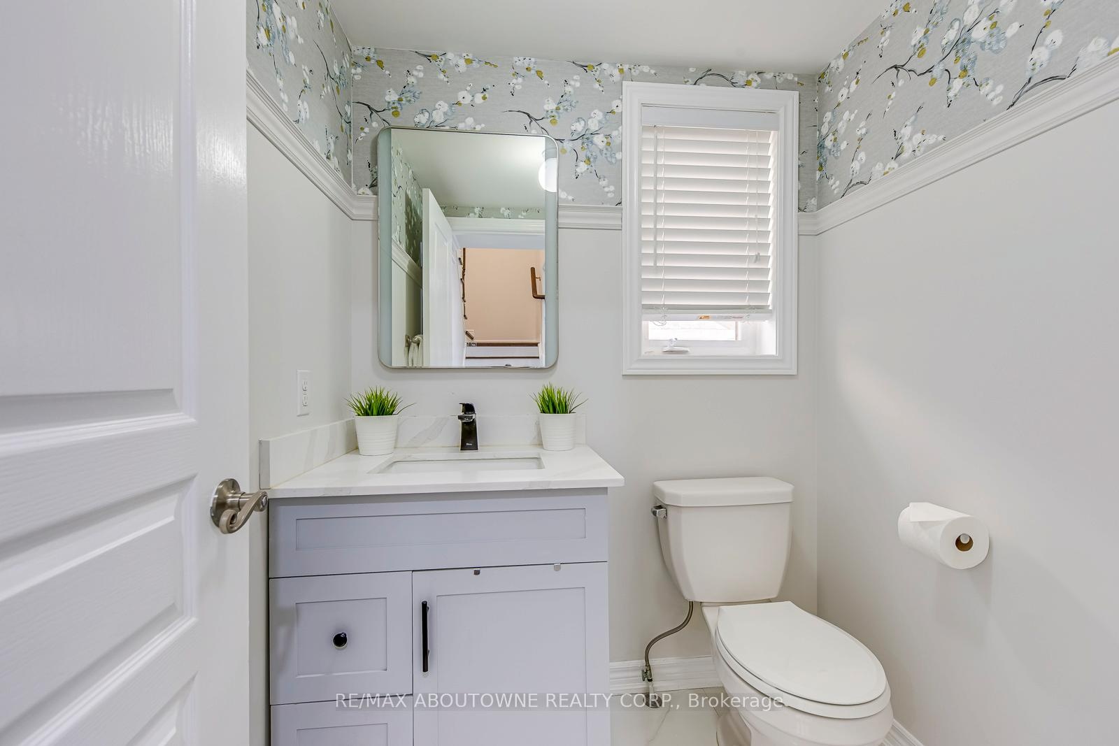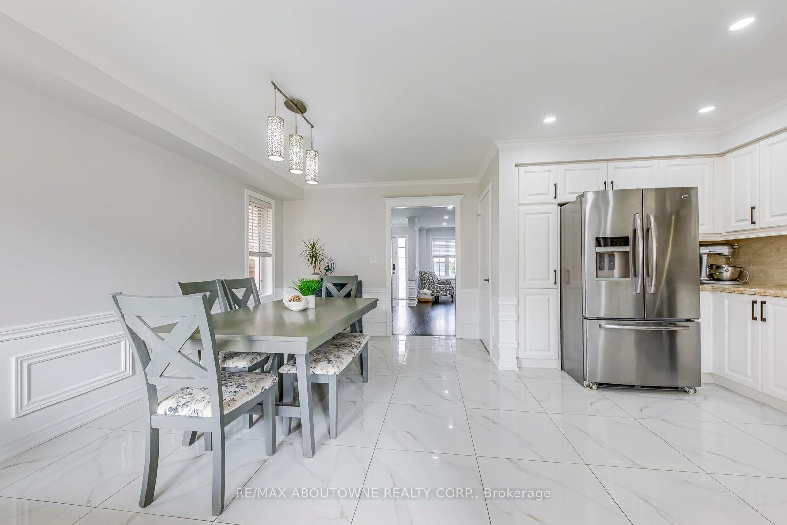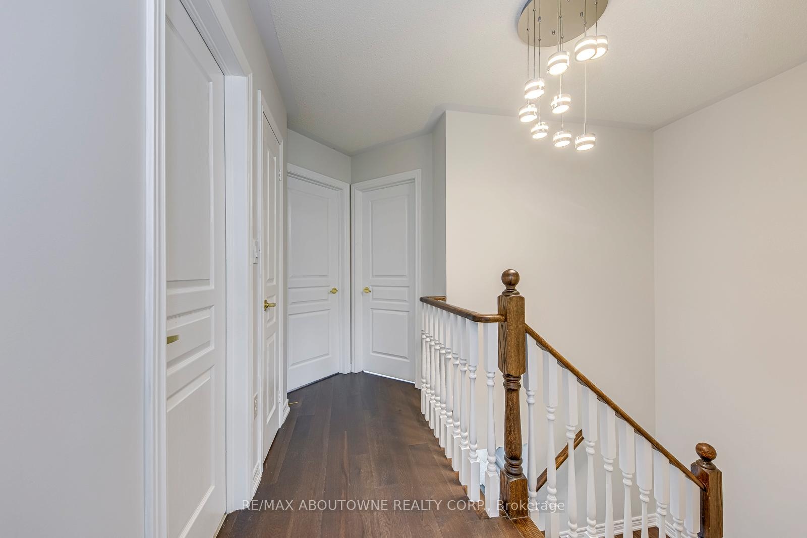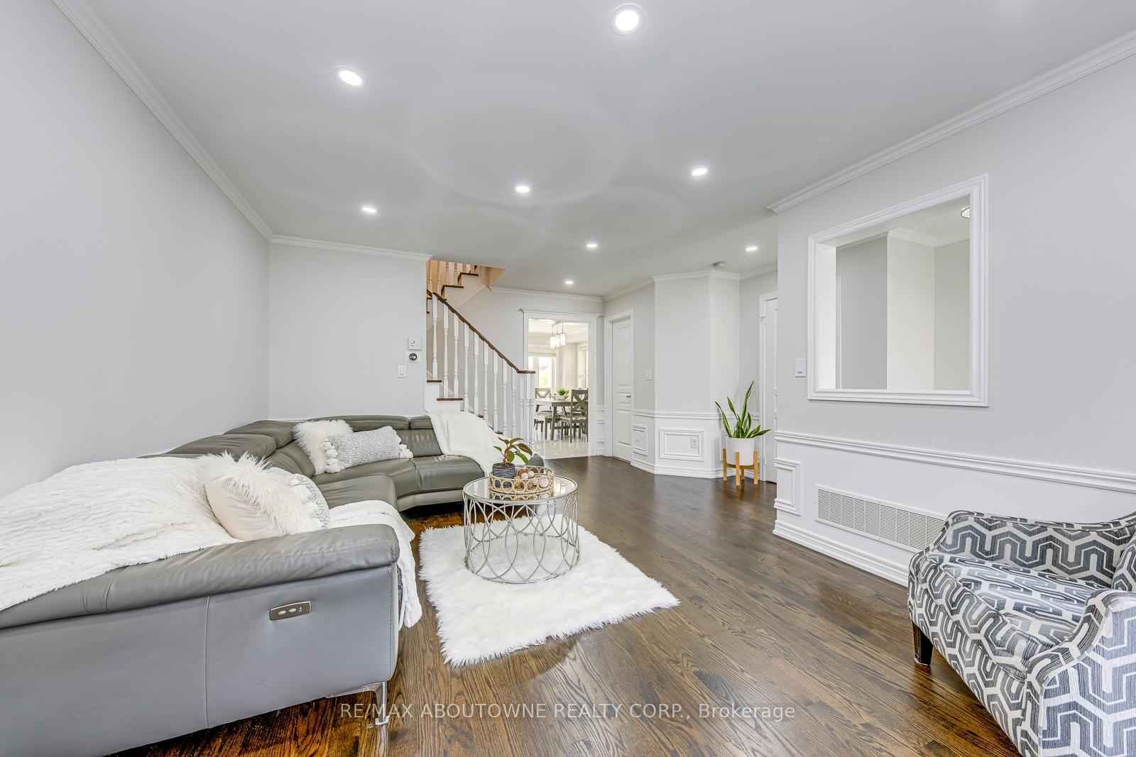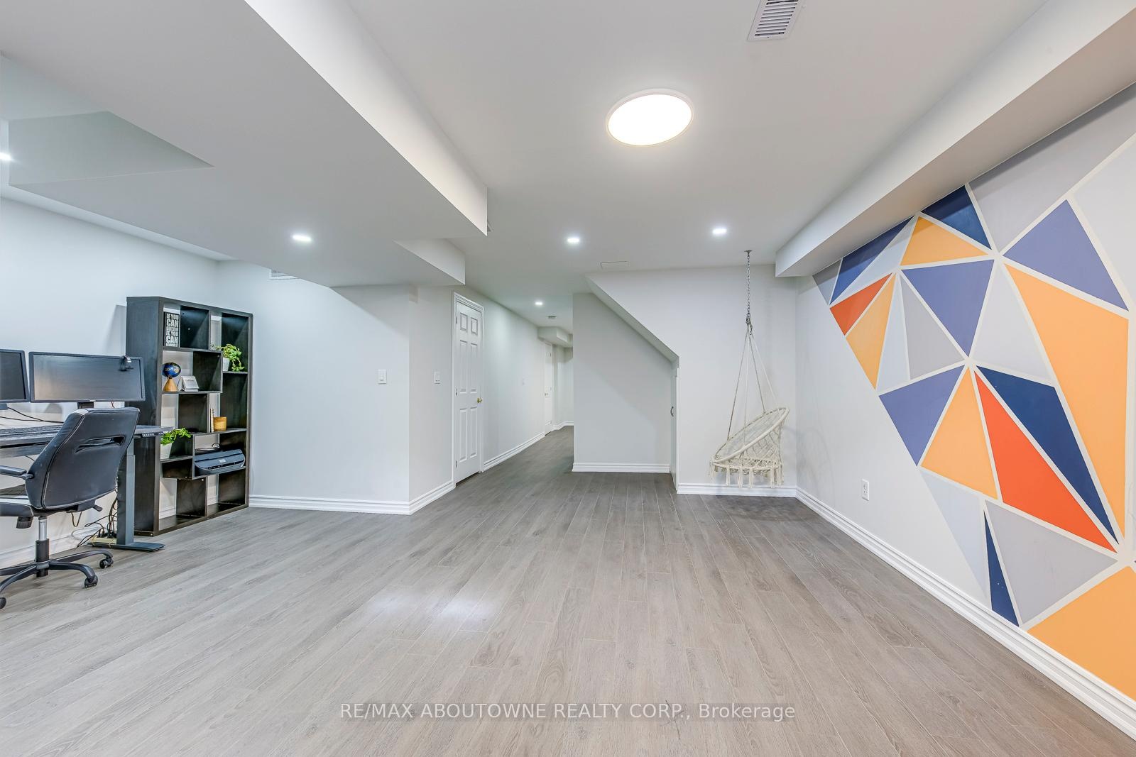 Beautifully Updated Freehold Semi-Detached Home in Sought-After Glenorchy. This exceptional 3-bedroom, 2.5-bath fully freehold semi-detached home sits on a quiet, family-friendly street in North Oakville's desirable Glenorchy community - steps from top-rated schools, parks, the new library, recreation centre, shopping, and restaurants. Offering nearly 2,500 sq. ft. of finished living space and a true double-car garage, this home has been lovingly maintained and thoughtfully updated by the current owners. It is now carpet-free, freshly repainted throughout, and features modernized bathrooms and impeccable finishing touches. The inviting main floor features an open-concept layout with a bright living and dining area, hardwood flooring, crown mouldings, and wainscoting. The eat-in kitchen offers granite countertops, stainless steel appliances, upgraded cabinetry, and a breakfast area overlooking the private backyard. Upstairs are three spacious bedrooms, including a primary suite with a 4-piece ensuite, along with a beautifully updated main bathroom. The newly finished lower level adds valuable living space, including a media/TV room, recreation area, home office, and provisions for a future bathroom. Outside, enjoy a covered back porch, low-maintenance interlock patio, and access to the detached two-car garage. Ideally located for easy access to major highways, public transit, Oakville GO, and Oakville Trafalgar Memorial Hospital. Within the catchment for Oodenawi Public School and Forest Trail French Immersion, both highly sought-after. A beautifully presented, move-in-ready home in one of Oakville's most popular neighbourhoods - with no condo or laneway fees and every detail taken care of.