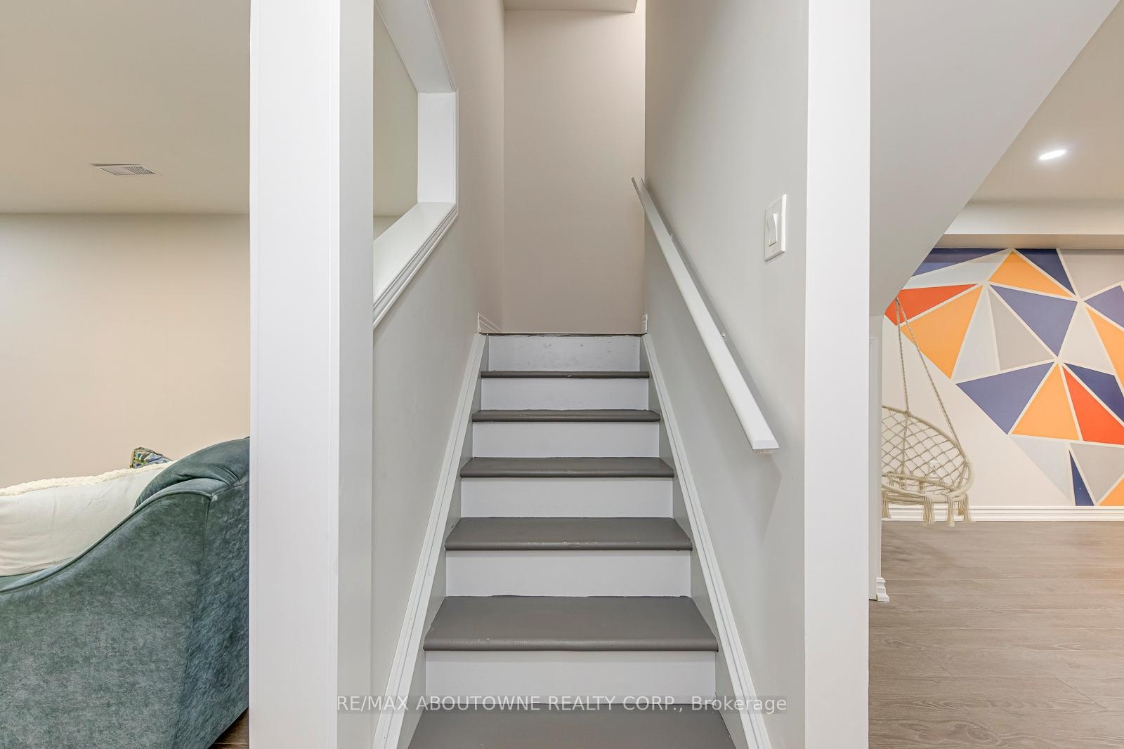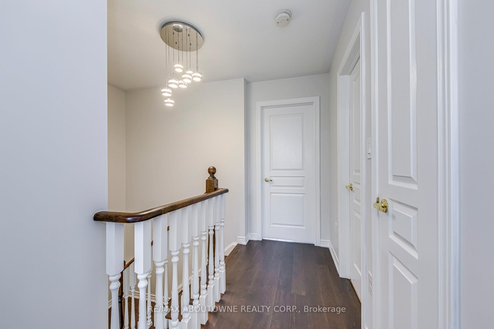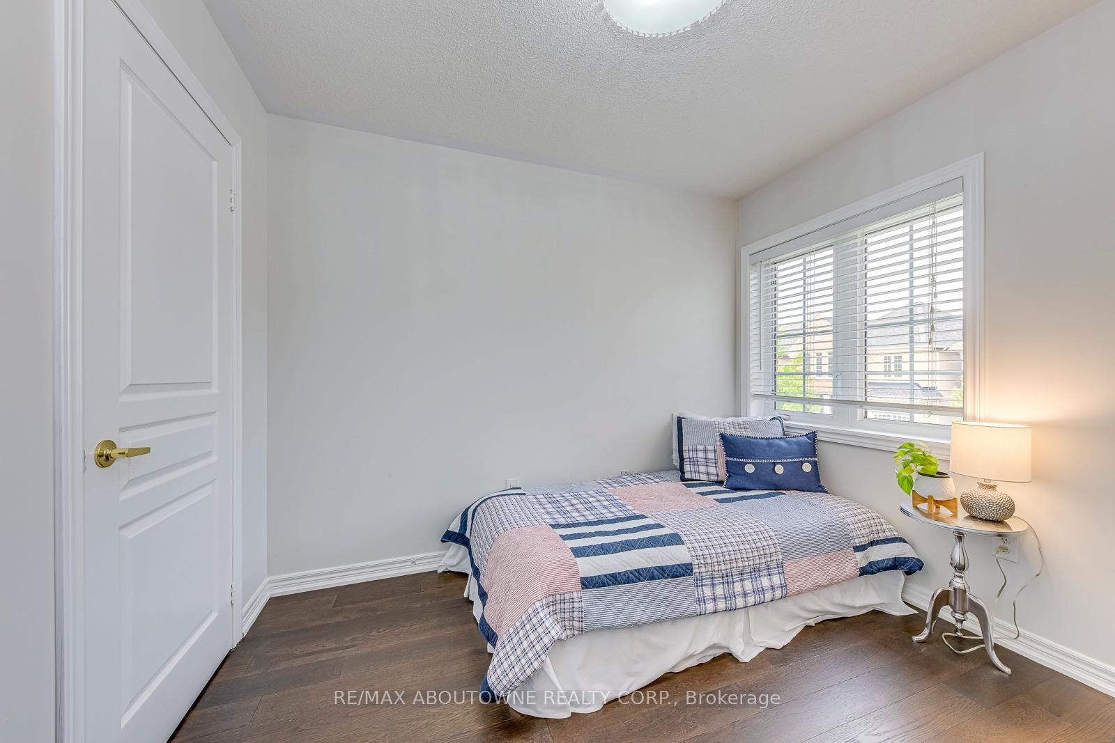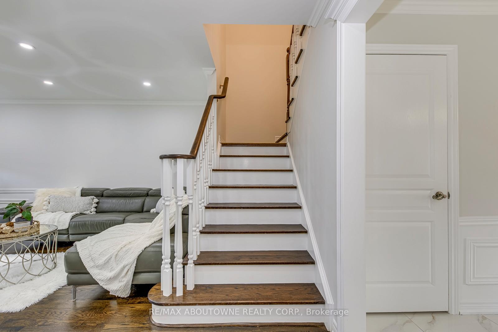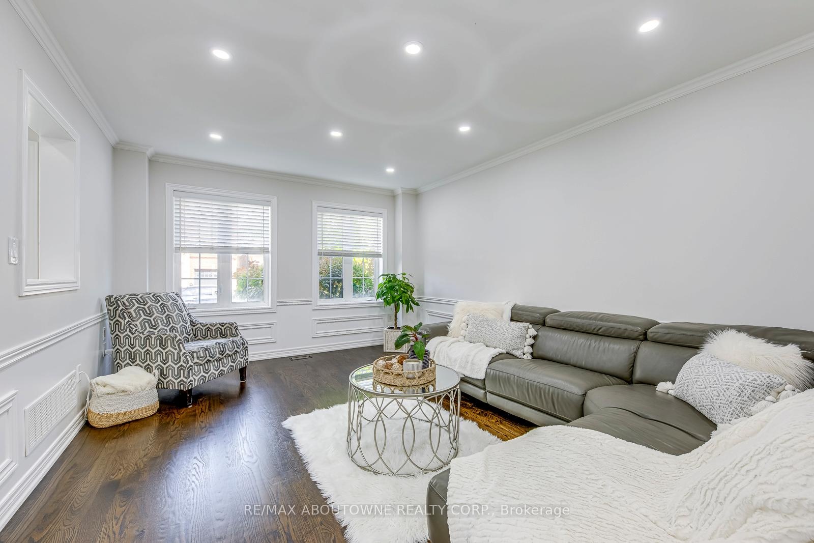 Beautifully Updated Freehold Semi-Detached Home in Sought-After Glenorchy. This exceptional 3-bedroom, 2.5-bath fully freehold semi-detached home sits on a quiet, family-friendly street in North Oakville's desirable Glenorchy community - steps from top-rated schools, parks, the new library, recreation centre, shopping, and restaurants. Offering nearly 2,500 sq. ft. of finished living space and a true double-car garage, this home has been lovingly maintained and thoughtfully updated by the current owners. It is now carpet-free, freshly repainted throughout, and features modernized bathrooms and impeccable finishing touches. The inviting main floor features an open-concept layout with a bright living and dining area, hardwood flooring, crown mouldings, and wainscoting. The eat-in kitchen offers granite countertops, stainless steel appliances, upgraded cabinetry, and a breakfast area overlooking the private backyard. Upstairs are three spacious bedrooms, including a primary suite with a 4-piece ensuite, along with a beautifully updated main bathroom. The newly finished lower level adds valuable living space, including a media/TV room, recreation area, home office, and provisions for a future bathroom. Outside, enjoy a covered back porch, low-maintenance interlock patio, and access to the detached two-car garage. Ideally located for easy access to major highways, public transit, Oakville GO, and Oakville Trafalgar Memorial Hospital. Within the catchment for Oodenawi Public School and Forest Trail French Immersion, both highly sought-after. A beautifully presented, move-in-ready home in one of Oakville's most popular neighbourhoods - with no condo or laneway fees and every detail taken care of.