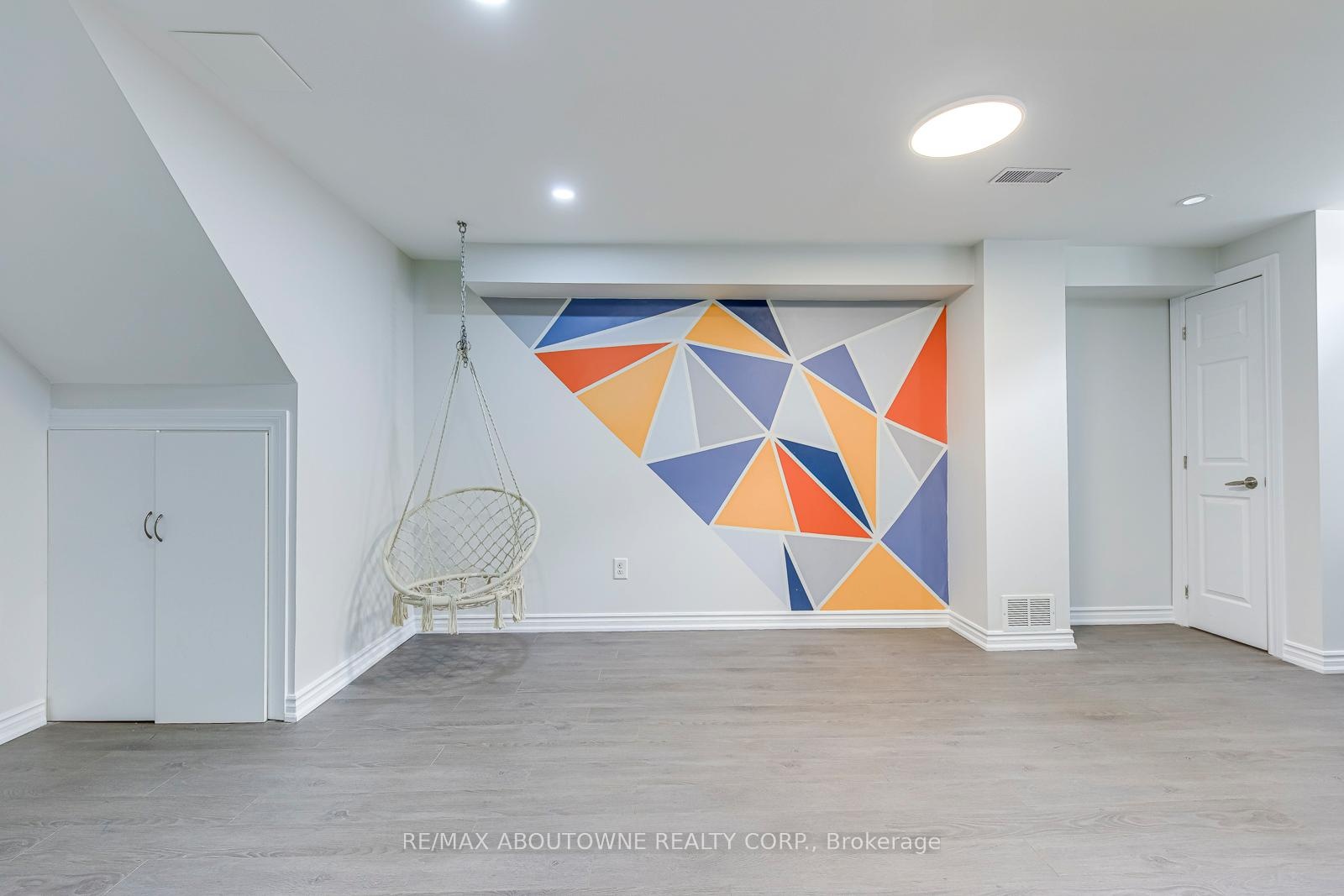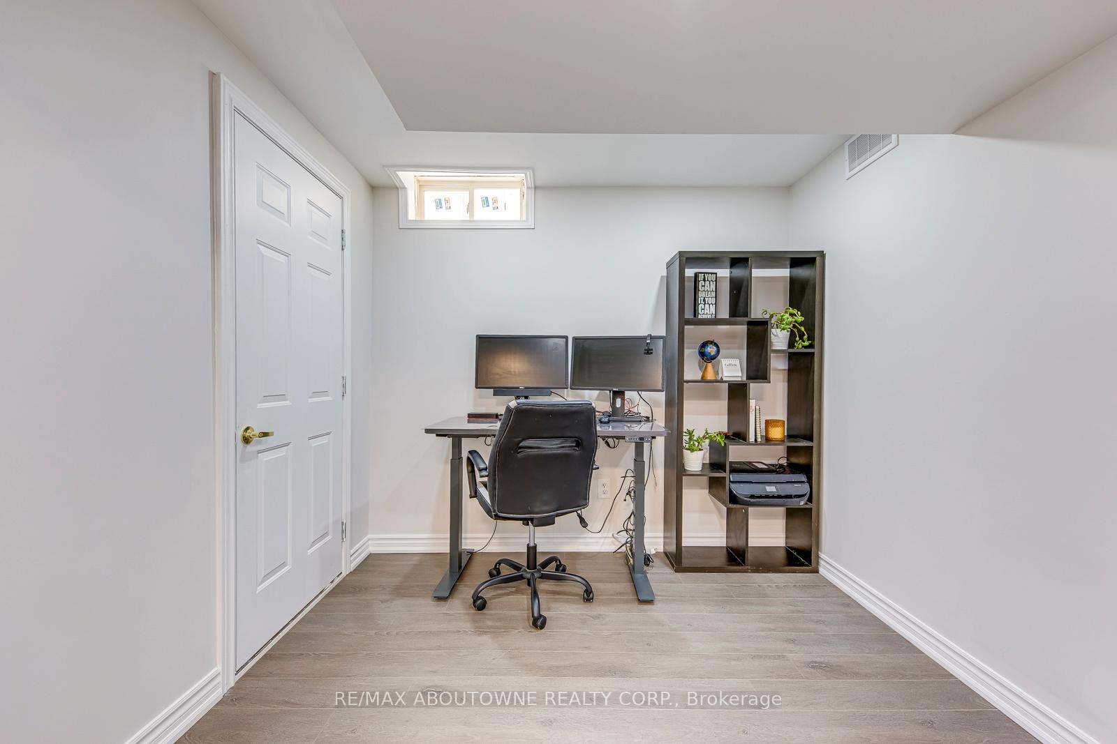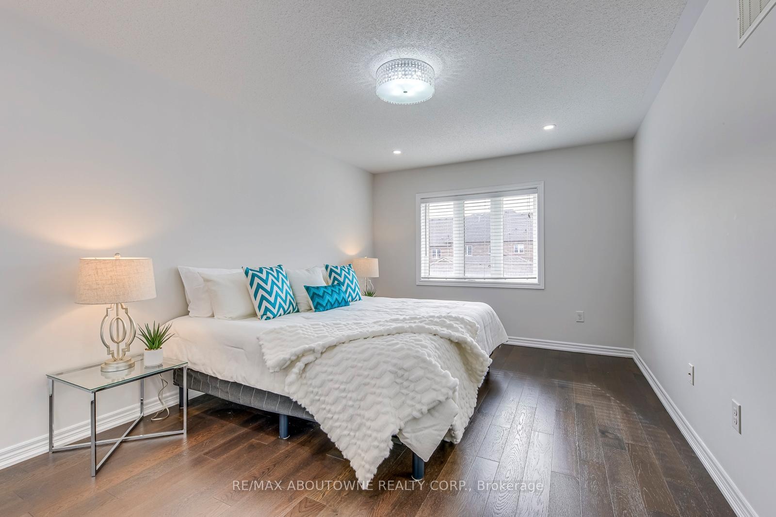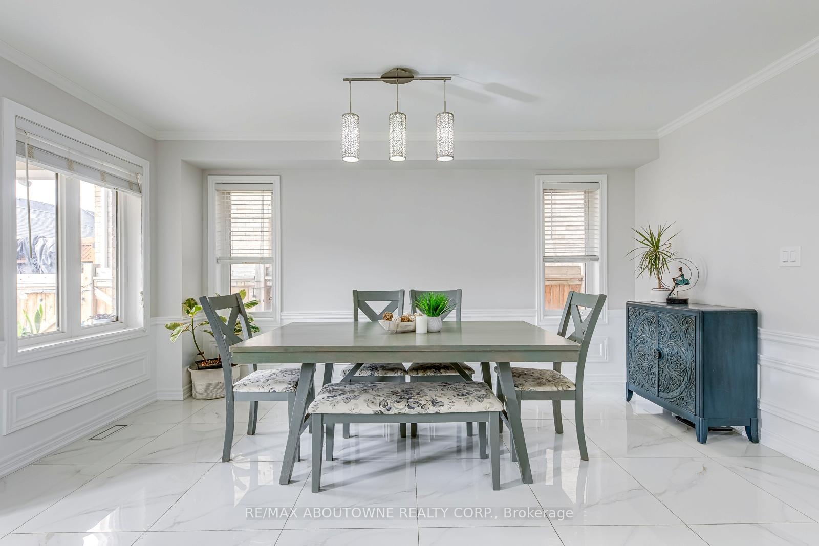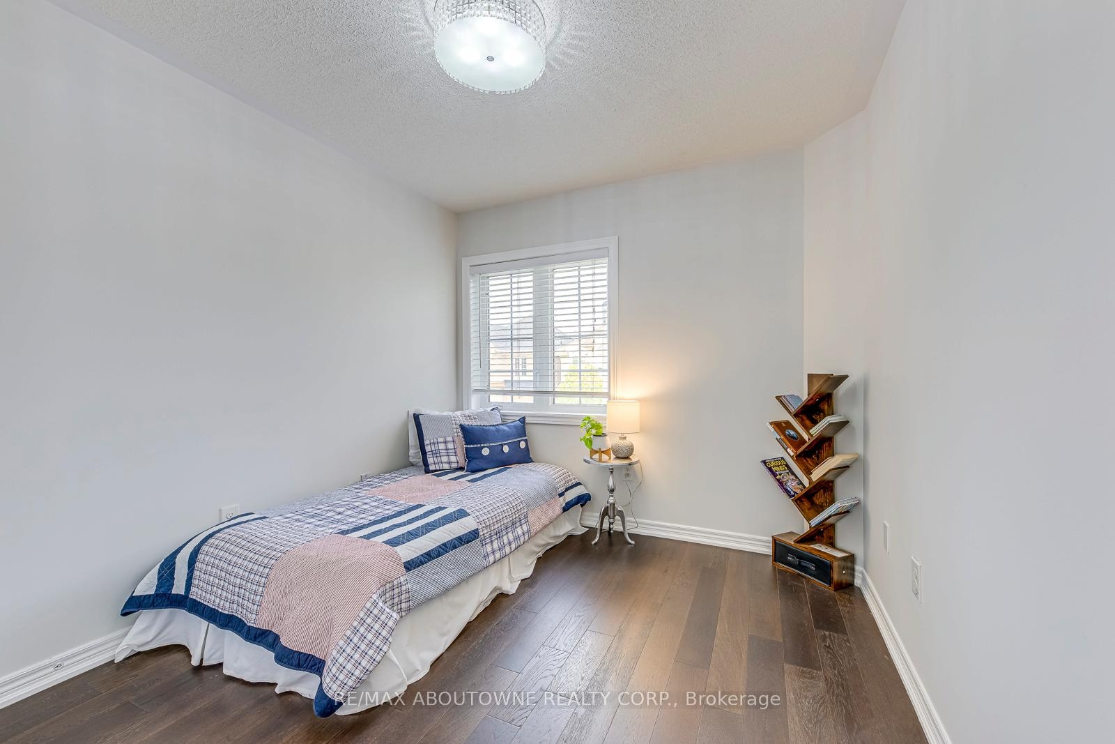Beautifully Updated Freehold Semi-Detached Home in Sought-After Glenorchy. This exceptional 3-bedroom, 2.5-bath fully freehold semi-detached home sits on a quiet, family-friendly street in North Oakville's desirable Glenorchy community - steps from top-rated schools, parks, the new library, recreation centre, shopping, and restaurants. Offering nearly 2,500 sq. ft. of finished living space and a true double-car garage, this home has been lovingly maintained and thoughtfully updated by the current owners. It is now carpet-free, freshly repainted throughout, and features modernized bathrooms and impeccable finishing touches. The inviting main floor features an open-concept layout with a bright living and dining area, hardwood flooring, crown mouldings, and wainscoting. The eat-in kitchen offers granite countertops, stainless steel appliances, upgraded cabinetry, and a breakfast area overlooking the private backyard. Upstairs are three spacious bedrooms, including a primary suite with a 4-piece ensuite, along with a beautifully updated main bathroom. The newly finished lower level adds valuable living space, including a media/TV room, recreation area, home office, and provisions for a future bathroom. Outside, enjoy a covered back porch, low-maintenance interlock patio, and access to the detached two-car garage. Ideally located for easy access to major highways, public transit, Oakville GO, and Oakville Trafalgar Memorial Hospital. Within the catchment for Oodenawi Public School and Forest Trail French Immersion, both highly sought-after. A beautifully presented, move-in-ready home in one of Oakville's most popular neighbourhoods - with no condo or laneway fees and every detail taken care of.