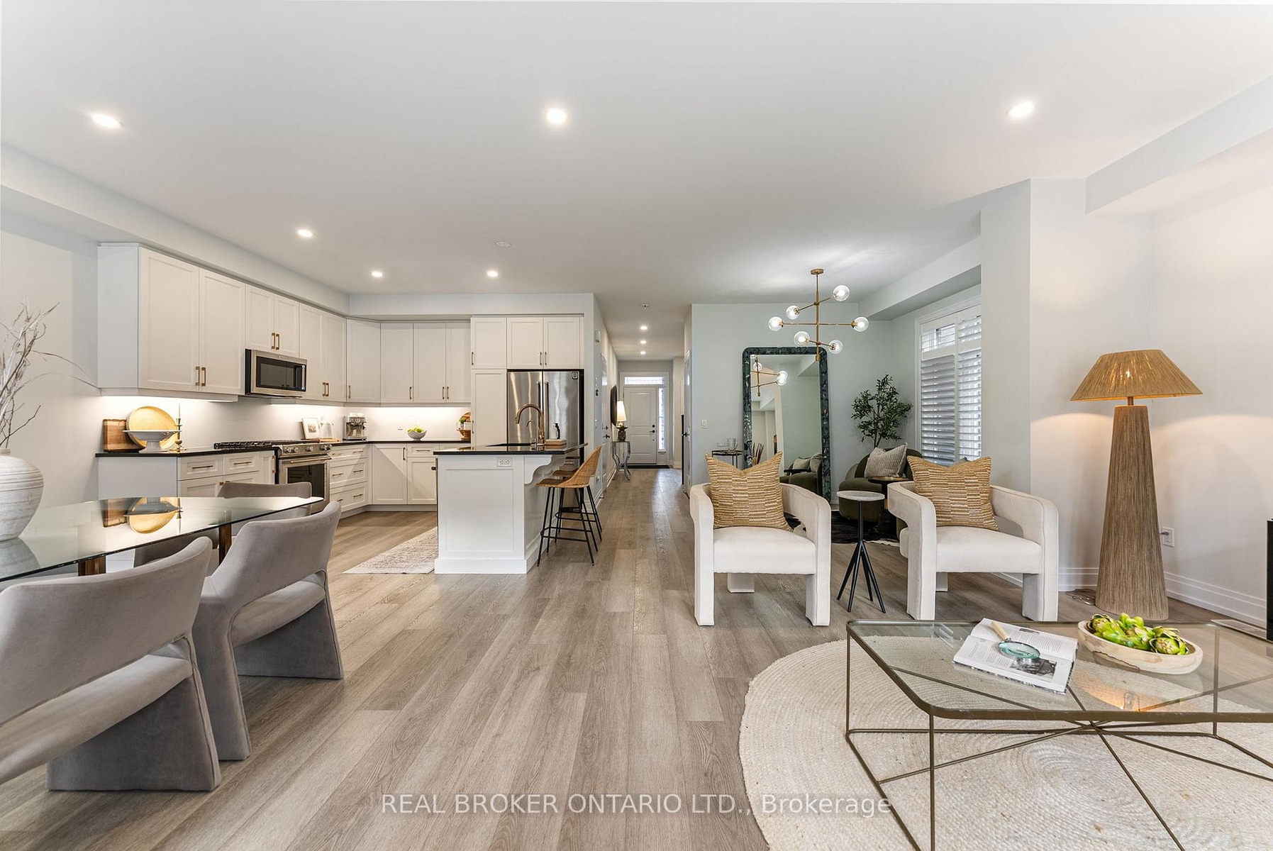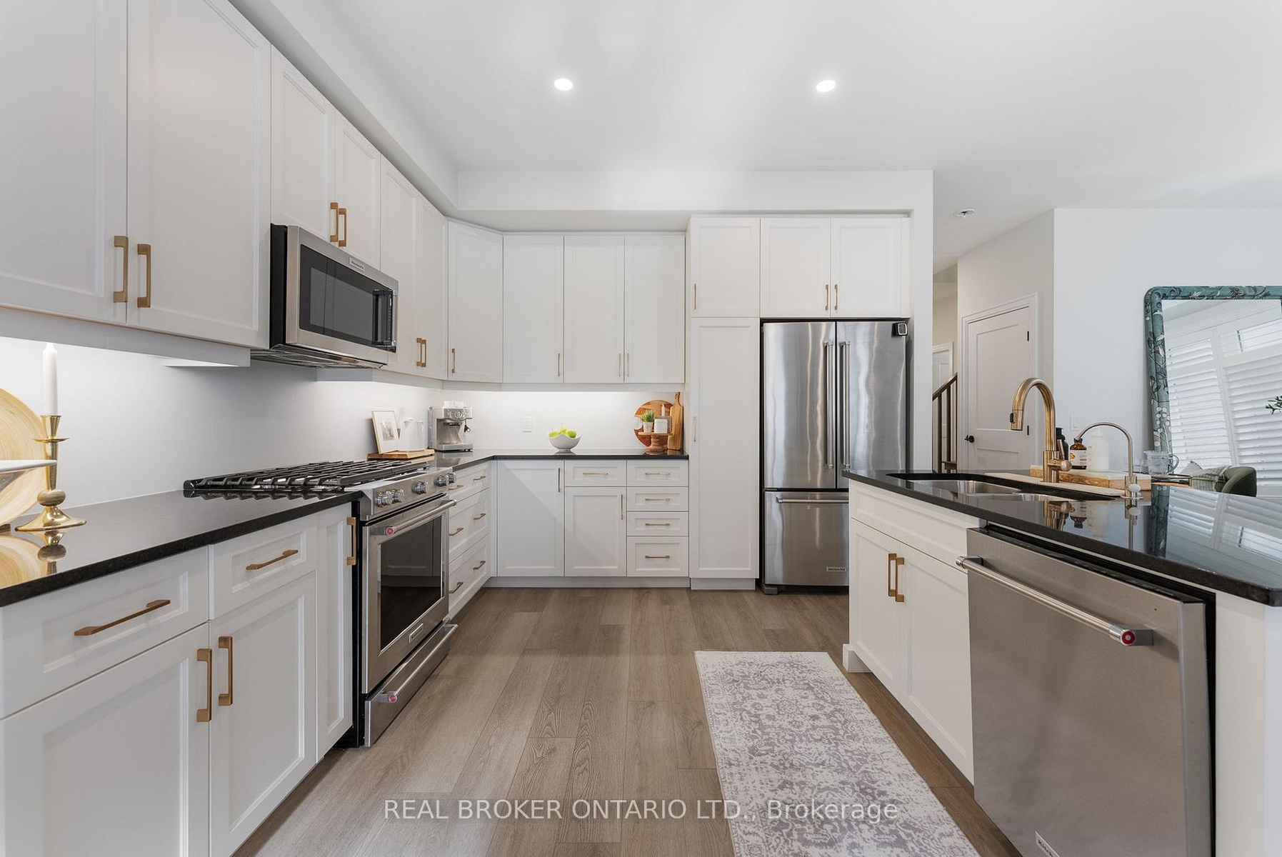 Rare find - freehold townhouse 4 bedrooms + main floor den, primary ensuite bathroom connecting through walk-through closet and bonus junior ensuite inside front bedroom. Situated in one of Waterdown's most desirable new neighbourhoods, 10 Granite Ridge Trail is an exceptional end-unit freehold townhome offering a stylish, carpet-free interior and high-end finishes and upgrades throughout. With four bedrooms, four bathrooms, and over 2,400 sq. ft. of above-grade living space, this home has been meticulously maintained and feels like new. The elegant stone and brick exterior provides timeless curb appeal. Inside, the open-concept main floor features soaring 9-foot ceilings, luxury vinyl plank flooring, and an interior entrance from the garage. The front office den offers the ideal workspace away from the main living area. The kitchen impresses with granite countertops, upgraded stainless steel appliances including a gas stove, and gold-accent lighting and fixtures. The kitchen flows seamlessly into the dining and living spaces, perfect for entertaining and family living. Upstairs, the primary suite features a stunning walk-through closet with access to a spa-like ensuite complete with a custom glass shower, upgraded 12x24 porcelain tile, and double quartz vanity. A second bedroom highlights a vaulted ceiling and Palladian window, while another includes its own private ensuite. The home is carpet-free throughout and finished with plantation shutters on every window for a refined touch. The lower level offers a full-height unfinished basement with a 3-piece rough-in, ready for your personal design. Outdoor space includes a deck for relaxing, plus a private garage and driveway. Located in an amazing Waterdown location, you can walk to Sweet Paradise, nearby parks, schools, shops, restaurants, and transit, with quick access to major highways and the Aldershot GO Station. This home combines luxury, function, and an unbeatable location-nothing to do but move in!