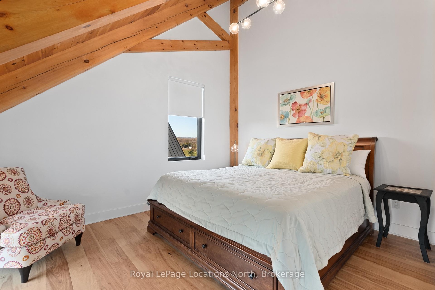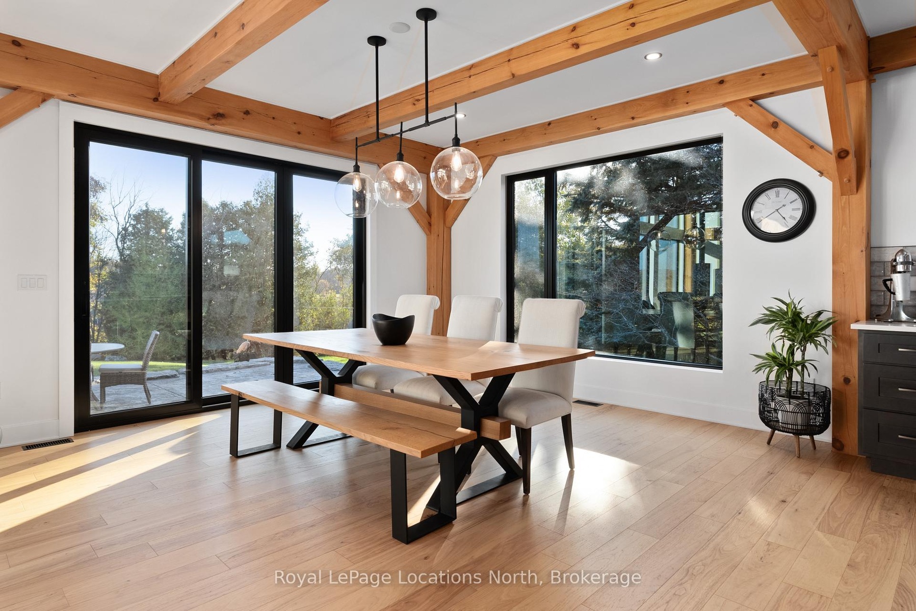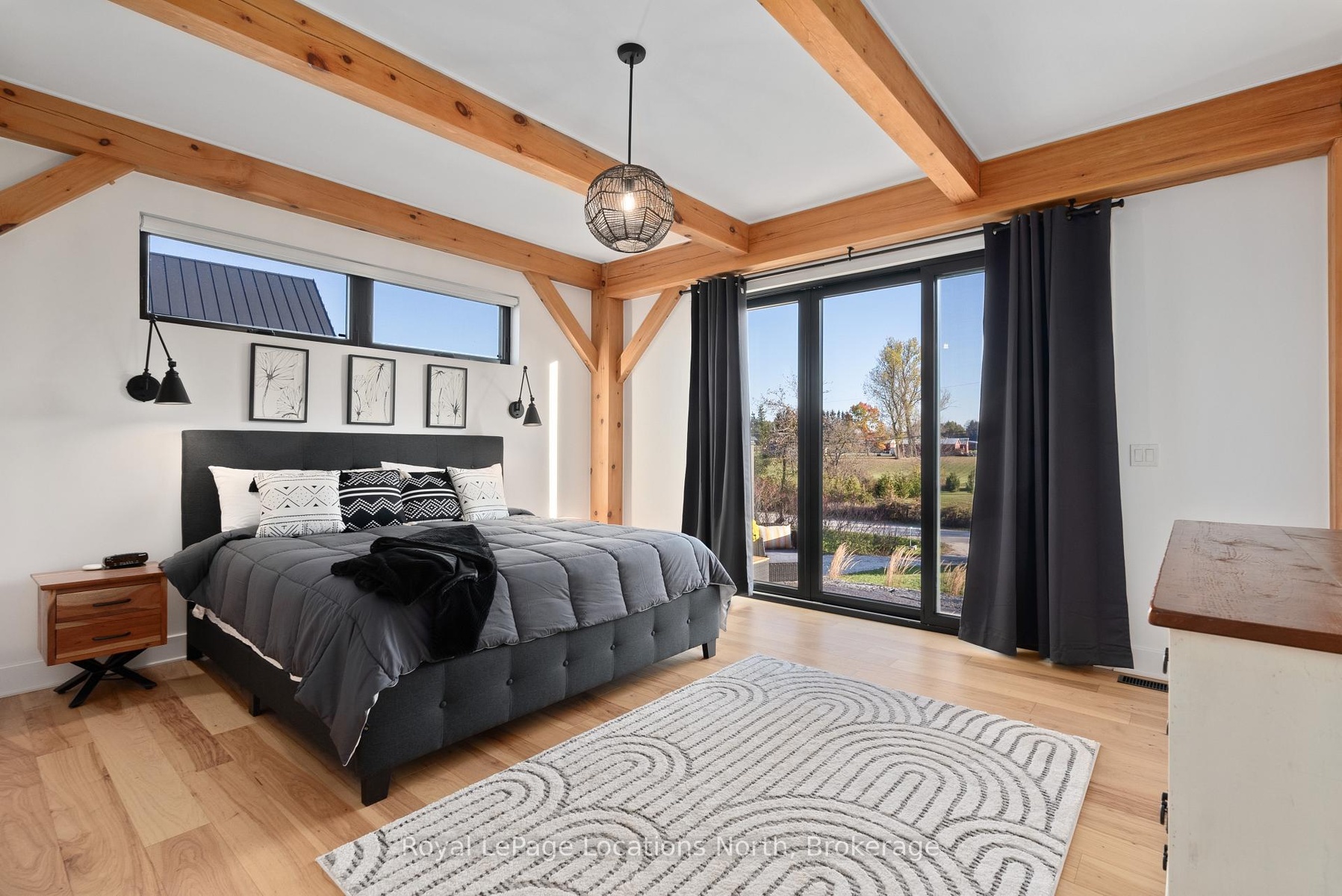 Welcome to 113 Slabtown Rd W, a modern timber frame home in one of the area's most charming and quietly sought-after enclaves. Thoughtfully designed and built with timeless craftsmanship, this nearly 5,000 sq. ft. home balances luxury with an inviting warmth that makes everyday living feel relaxed and comfortable. Soaring ceilings, exposed beams, and expansive windows create a sense of openness while drawing in natural light throughout the day. The main living spaces flow seamlessly-perfect for gathering with family, hosting friends, or simply settling into a slower pace. The kitchen, living, and dining areas are grounded by natural materials and thoughtful details, while multiple walkouts connect you effortlessly to the outdoors.The private primary suite offers a calming retreat with a serene ensuite. The main floor is complemented with an upstairs with 2 additional bedrooms and flexible spaces suited to work, hobbies, or guests. The fully finished lower level provides additional room for living and entertaining, complete with a large mudroom, an additional bedroom and direct garage access for practical day-to-day living.There is also a bonus room that would make a great sauna or ski tuning room. Outside, the setting is something truly special. Slabtown is a small, welcoming community-rural in feel, yet just a 5-minute drive to Thornbury's highly desirable community school, shops, dining, marina, and conveniences. Step outside your door to the Slabtown Dam for a summer swim or paddle the Beaver River at sunset. Ski clubs, golf, hiking trails, and Georgian Bay are all close by, making four-season adventure part of your rhythm.This is a home where mornings are slow, evenings gather everyone at the table, and the natural beauty of the Blue Mountains shapes the way you live. Warm, grounded, and quietly luxurious- 113 Slabtown Rd W offers a lifestyle that feels both connected and comfortably at ease.