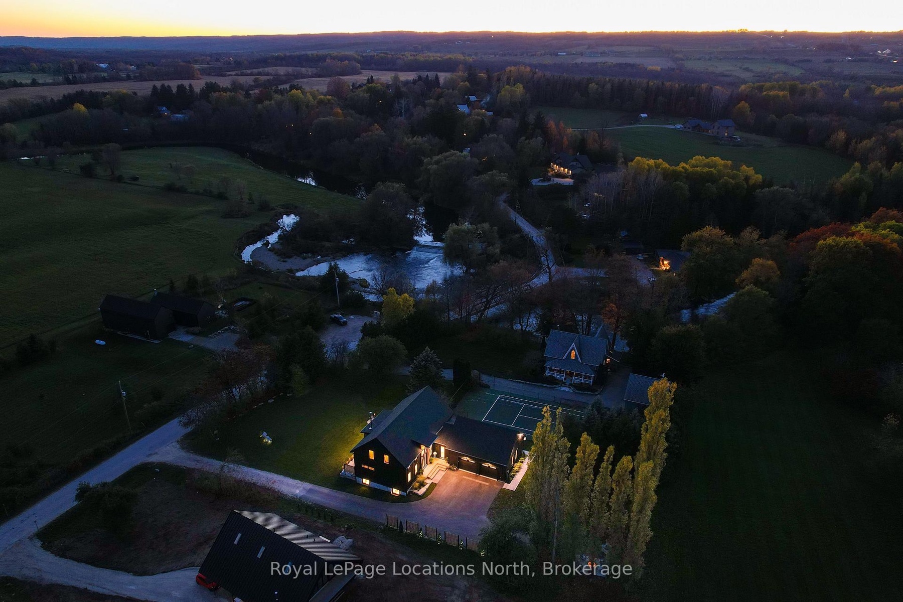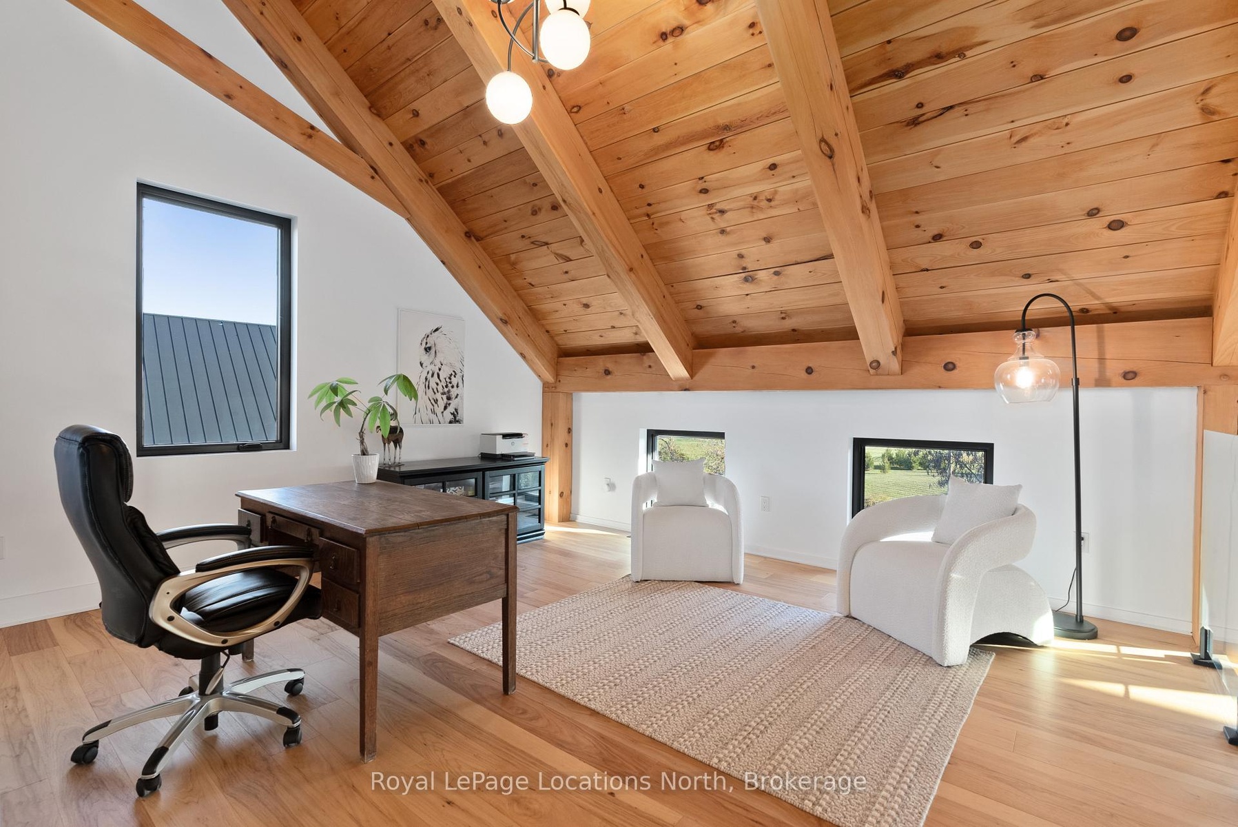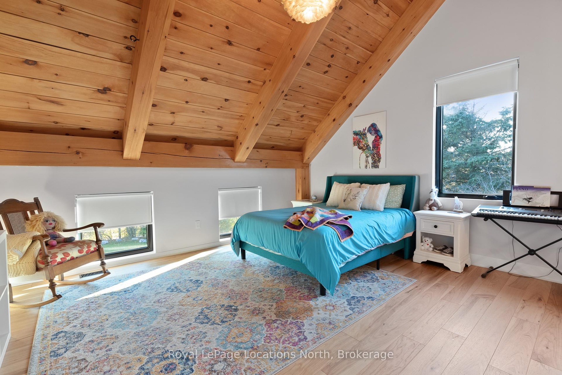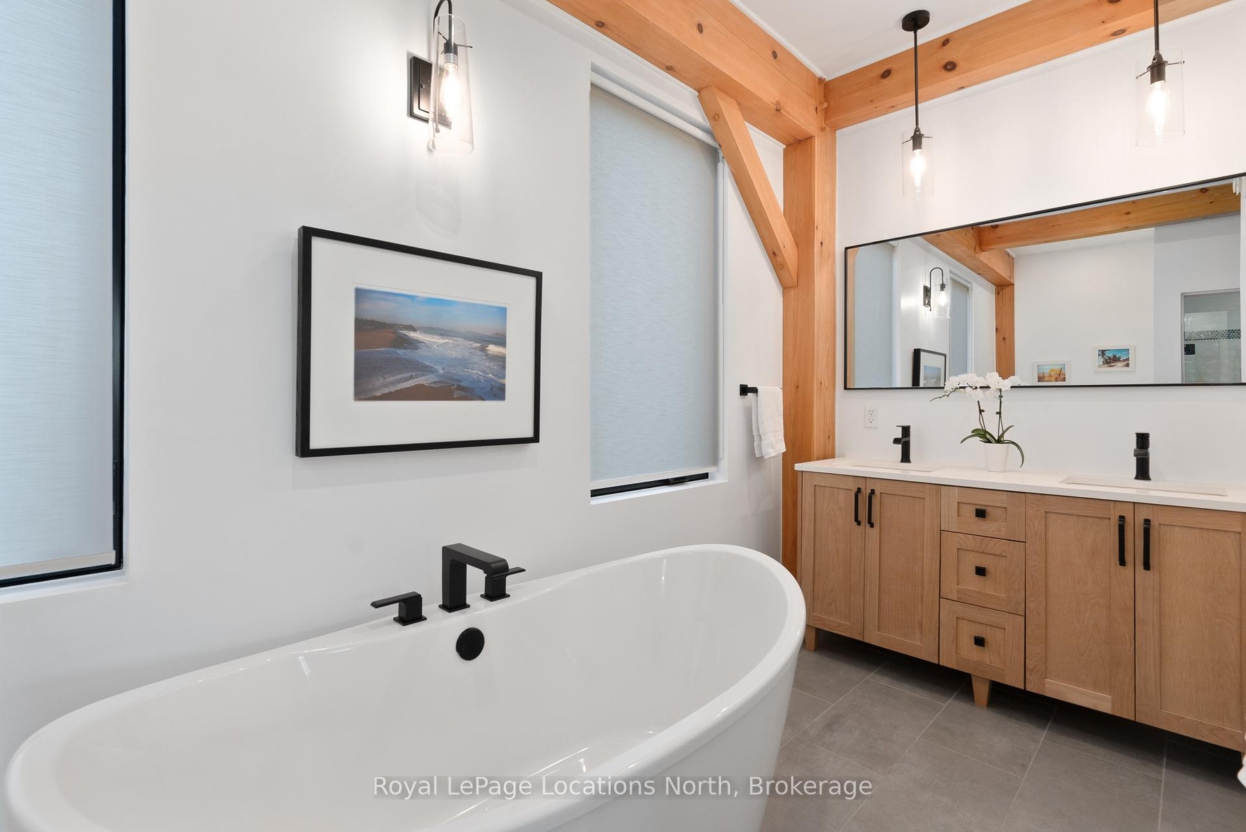 Welcome to 113 Slabtown Rd W, a modern timber frame home in one of the area's most charming and quietly sought-after enclaves. Thoughtfully designed and built with timeless craftsmanship, this nearly 5,000 sq. ft. home balances luxury with an inviting warmth that makes everyday living feel relaxed and comfortable. Soaring ceilings, exposed beams, and expansive windows create a sense of openness while drawing in natural light throughout the day. The main living spaces flow seamlessly-perfect for gathering with family, hosting friends, or simply settling into a slower pace. The kitchen, living, and dining areas are grounded by natural materials and thoughtful details, while multiple walkouts connect you effortlessly to the outdoors.The private primary suite offers a calming retreat with a serene ensuite. The main floor is complemented with an upstairs with 2 additional bedrooms and flexible spaces suited to work, hobbies, or guests. The fully finished lower level provides additional room for living and entertaining, complete with a large mudroom, an additional bedroom and direct garage access for practical day-to-day living.There is also a bonus room that would make a great sauna or ski tuning room. Outside, the setting is something truly special. Slabtown is a small, welcoming community-rural in feel, yet just a 5-minute drive to Thornbury's highly desirable community school, shops, dining, marina, and conveniences. Step outside your door to the Slabtown Dam for a summer swim or paddle the Beaver River at sunset. Ski clubs, golf, hiking trails, and Georgian Bay are all close by, making four-season adventure part of your rhythm.This is a home where mornings are slow, evenings gather everyone at the table, and the natural beauty of the Blue Mountains shapes the way you live. Warm, grounded, and quietly luxurious- 113 Slabtown Rd W offers a lifestyle that feels both connected and comfortably at ease.