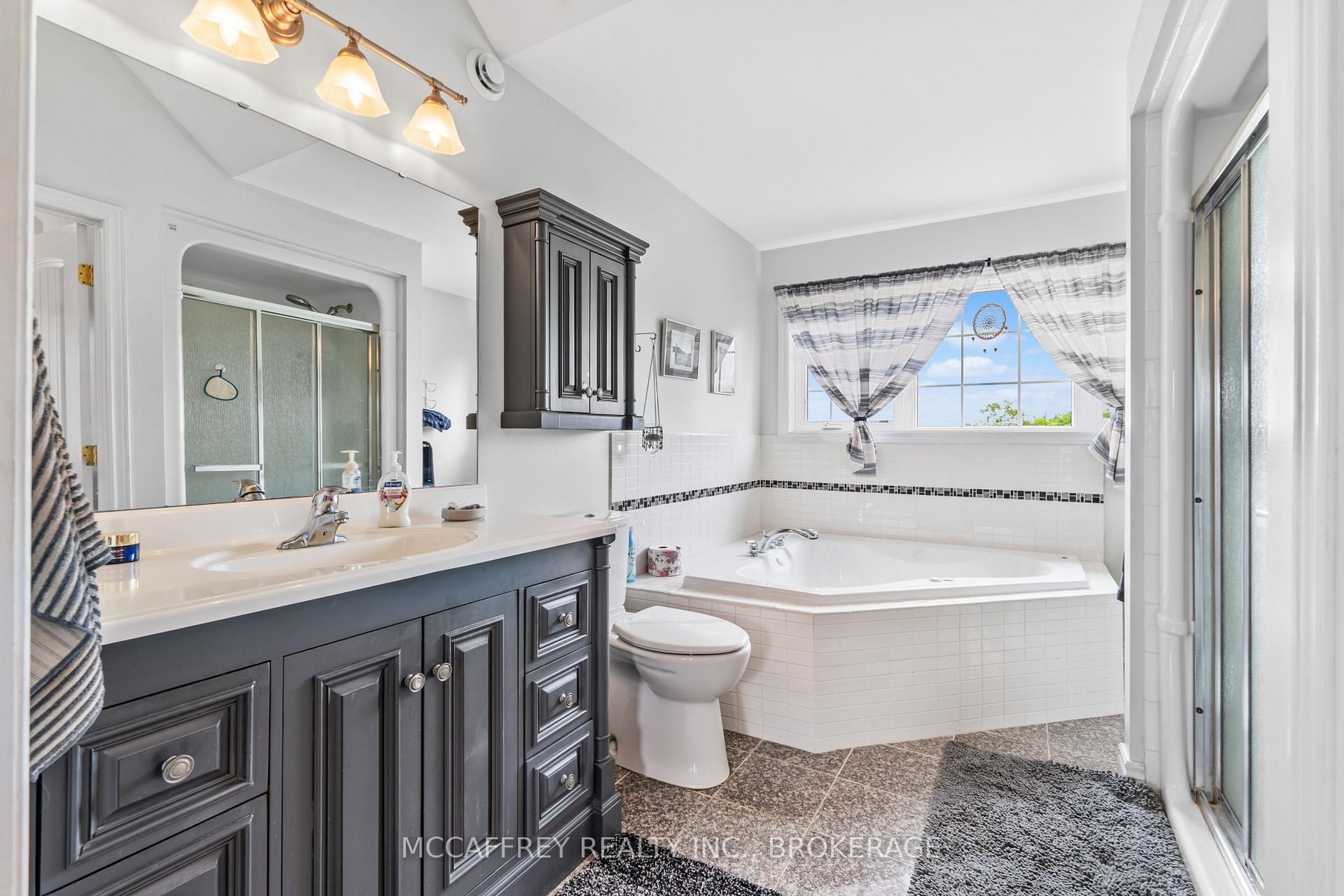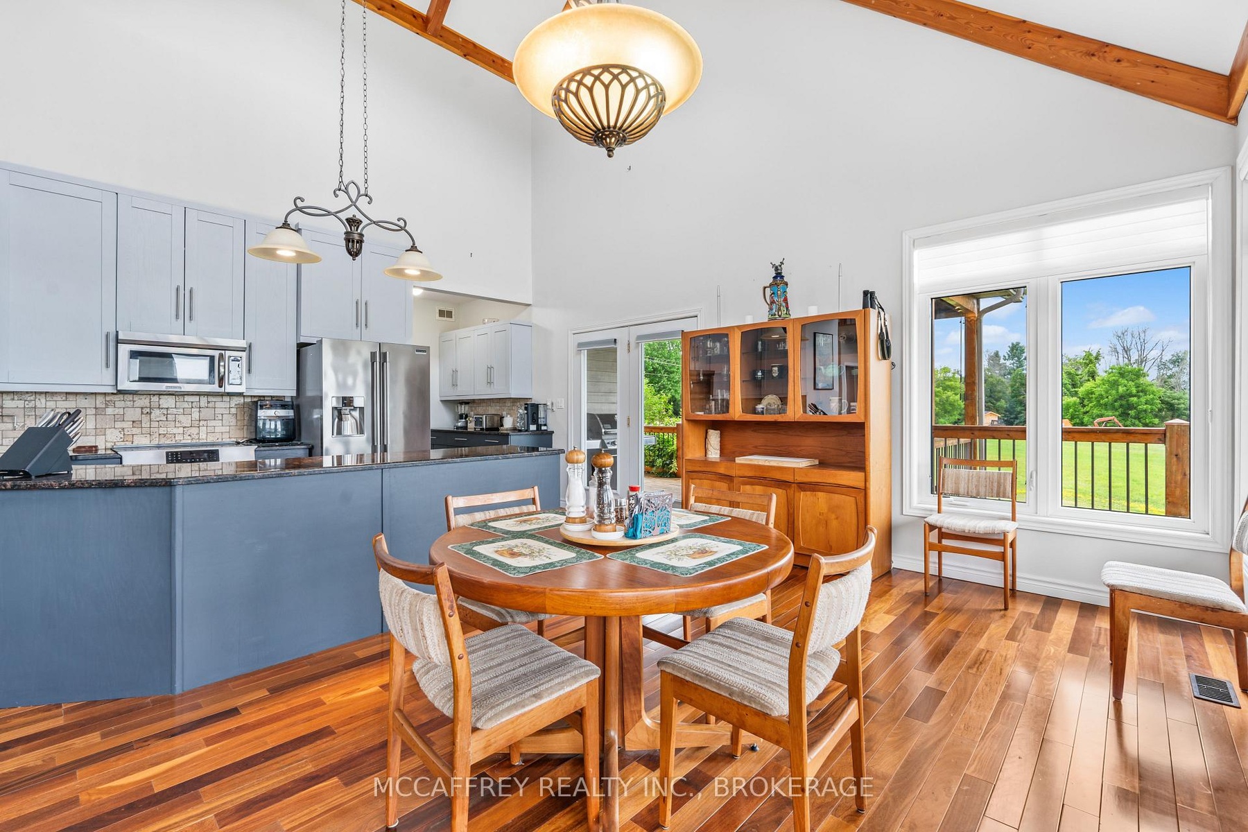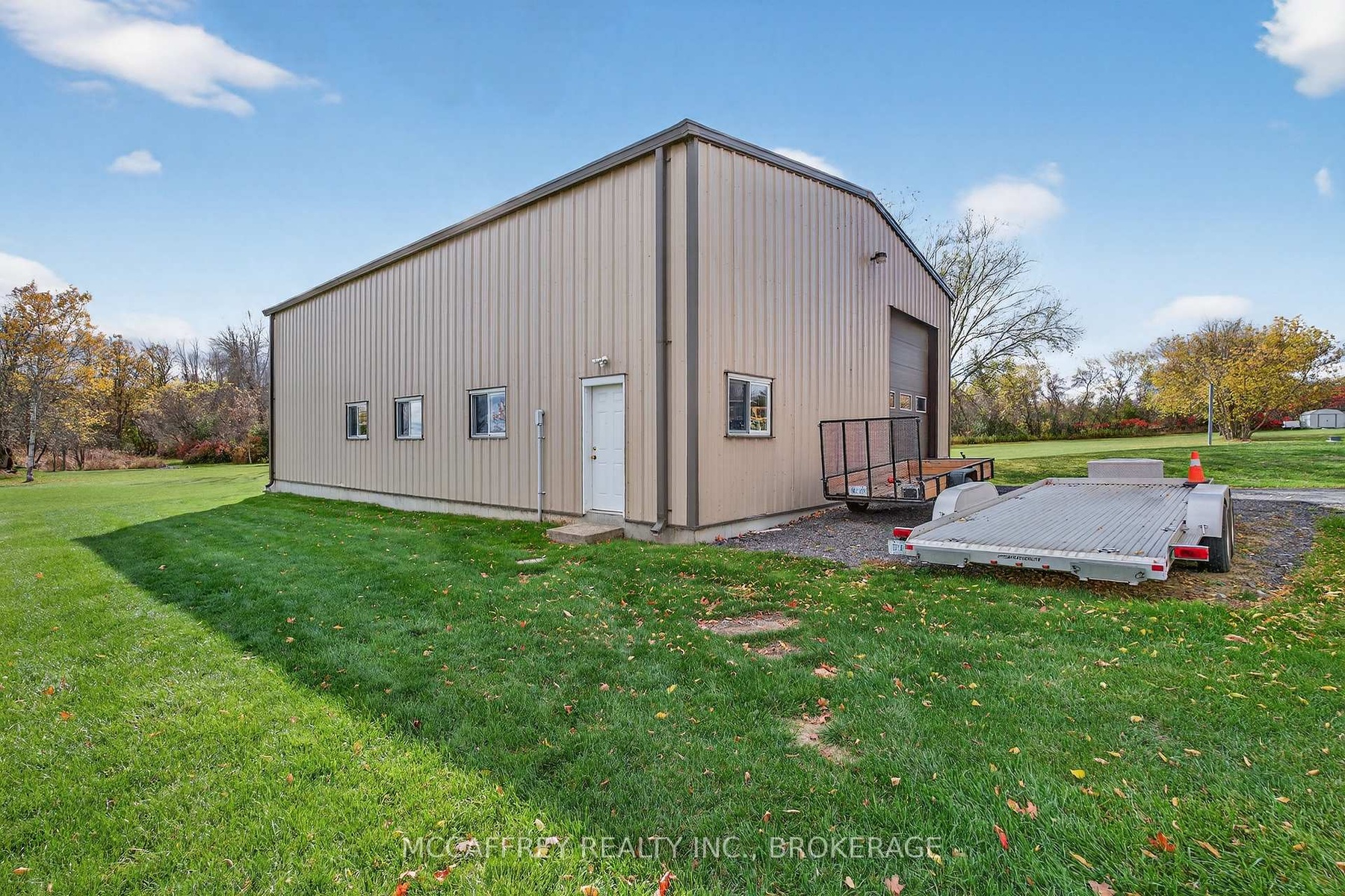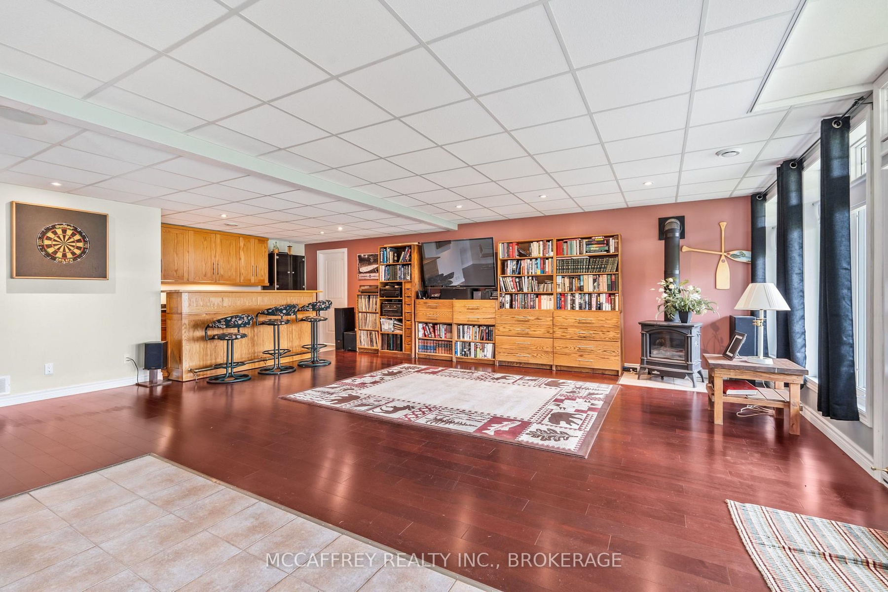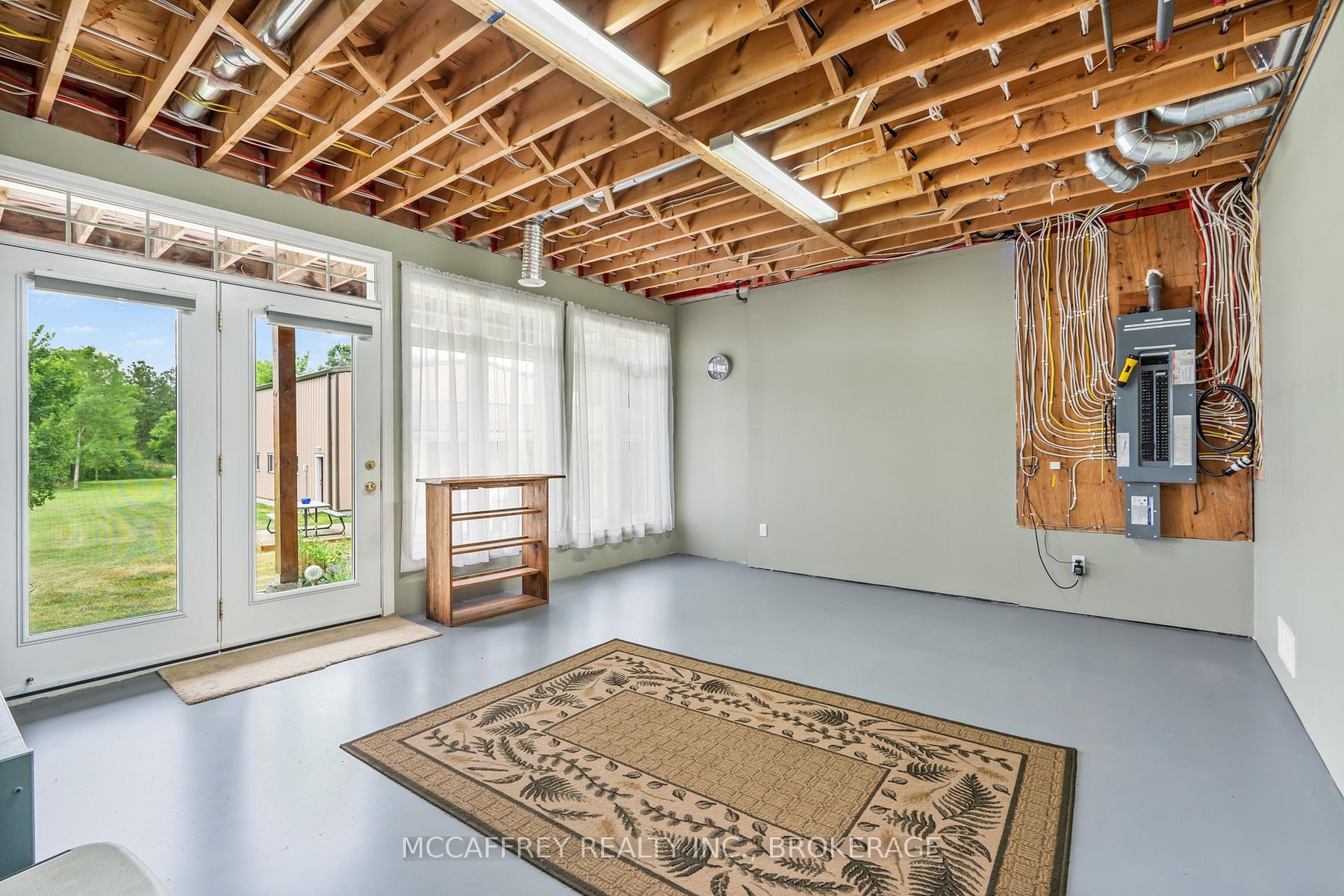 Welcome to your dream home on the shores of Hay Bay! This custom-built two-story masterpiece, constructed in 2012, blends luxury, comfort, and scenic beauty. Set on a 1.72-acre lot with 202 ft of waterfront, it offers unparalleled living. As you arrive, a double wide paved driveway leads to an attached 2-car garage and a distinctive detached 40' x 58' garage, complete with hydro and oversized doors (12'x14' & 12'x12'), ideal for boats, RVs, or a workshop. Inside, the main level impresses with 28 ft high cathedral ceilings adorned with BC Fir wood beams. Expansive windows illuminate interiors and offer picturesque views of the landscaped backyard and sparkling waters. This level includes a cozy living room with a gas fireplace, an office/den, and a gourmet kitchen with granite countertops, oak cabinetry, and a breakfast bar. The dining room and easy deck access enhance indoor-outdoor living, as well as entrances from the laundry room, and connections to the garage. Two spacious bedrooms, one with deck access, plus a 3 pc and a 4 pc bath, complete this level. Ascend the beautiful wooden staircase to discover the private sanctuary of the Primary suite. Here, you'll find a spacious bedroom complemented by two walk-in closets and a 4 pc ensuite, providing the ultimate retreat. The finished lower level enhances the home's entertainment and storage capabilities. The rec room features a wet bar, 2 pc bath, cold cellar, substantial storage room, and a utility room. Additionally, a semi-finished bedroom with walk-out offers flexibility for your needs. The outdoor space is nothing short of spectacular, with meticulously designed flower gardens and a 10'x24' floating dock invites you to embrace the waterfront lifestyle. Located just minutes from downtown Napanee, this home provides the perfect combination of convenient access to amenities and the privacy and tranquility of waterfront living.