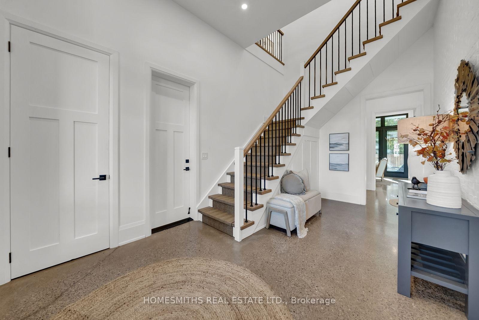 Welcome to 288 Beaver St S Newcastle, "The Carriage House" inspired by the character & aesthetic of a classic century carriage house this beautifully designed & unique offering combines modern amenity & efficiency w/ traditional charm & craftsmanship. Situated on a mature tree-lined street in the heart of Historic Downtown Newcastle walking distance to all amenities, schools, quaint shops/pubs/restaurants, 1 minute to Hwy 401 & under 1 hr to downtown T.O. Beautifully landscaped front exterior leads to a traditional front porch with bright entry with exposed brick interior wall & soaring 12-foot ceilings throughout the m/f. Ground floor features a beautifully appointed fully self-contained ADU apt with open-concept layout, large living area with gas f/p, custom kitchen w/ center island & quartz counters, large bedroom, three-piece bath w/ huge glass shower & en-suite laundry. Independent entry, heating/cooling making this space ideal for in-law, air bnb/income producing rental. The main house features a large m/f office/flex space, well suited for future bedroom, studio/gym/recreation rm or home based business, with a walkout to a covered rear porch & fully fenced backyard. Interior entry to heated & cooled 3+ car garage w/ 12-foot ceiling, epoxy floor & drive-through o/h door to the rear yard. Feature staircase up to the incredible 2nd floor with a gorgeous open living area with beamed cathedral ceilings, a custom kitchen w/ large center island, lux appliances, ensuite laundry & breakfast/dining area with a w/o to elevated rear deck o/l the backyard, surrounded by mature trees providing privacy & summer shade. Spacious primary suite with skylit ensuite bath with dual vanity & large shower, 2nd bdrm with 2nd skylit ensuite & dble closet. Classic wide plank engineered French Oak h/w floors through the 2nd floor, unique polished concrete terrazzo floor on the m/f. This is a show stopping, one of a kind, multidimensional home in a fantastic location. See Virtual Tour.