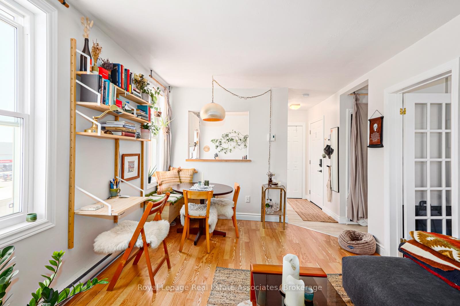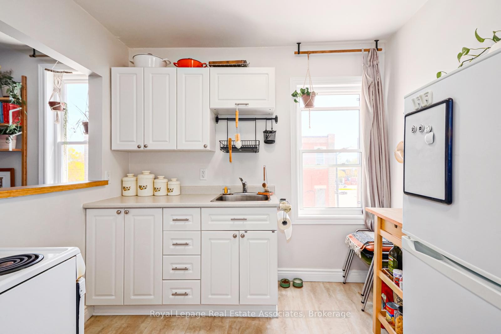 Welcome to downtown Meaford's charming 1-bedroom condo. Nestled within a historic 9-unit building, this cozy retreat offers a blend of modern comfort and rich heritage. Step inside to discover newer windows, a unit entry door, and upgraded security features, ensuring peace of mind and style in every corner.Residents enjoy free on-site laundry facilities, adding to the convenience of this well-maintained building. Embrace the vibrant downtown lifestyle with waterfront strolls, boutique shopping, and dining options just steps away. Explore the beauty of Meaford with nearby biking and walking trails, perfect for outdoor enthusiasts, and just a stones throw from Georgian Bay. Experience the charm of yesteryear with exterior features that pay homage to the building's historic roots. Ideally located close to the quaint village of Thornbury, Blue Mountain, and Collingwood, where you can experience endless adventures throughout the year and explore unique shops and restaurants.