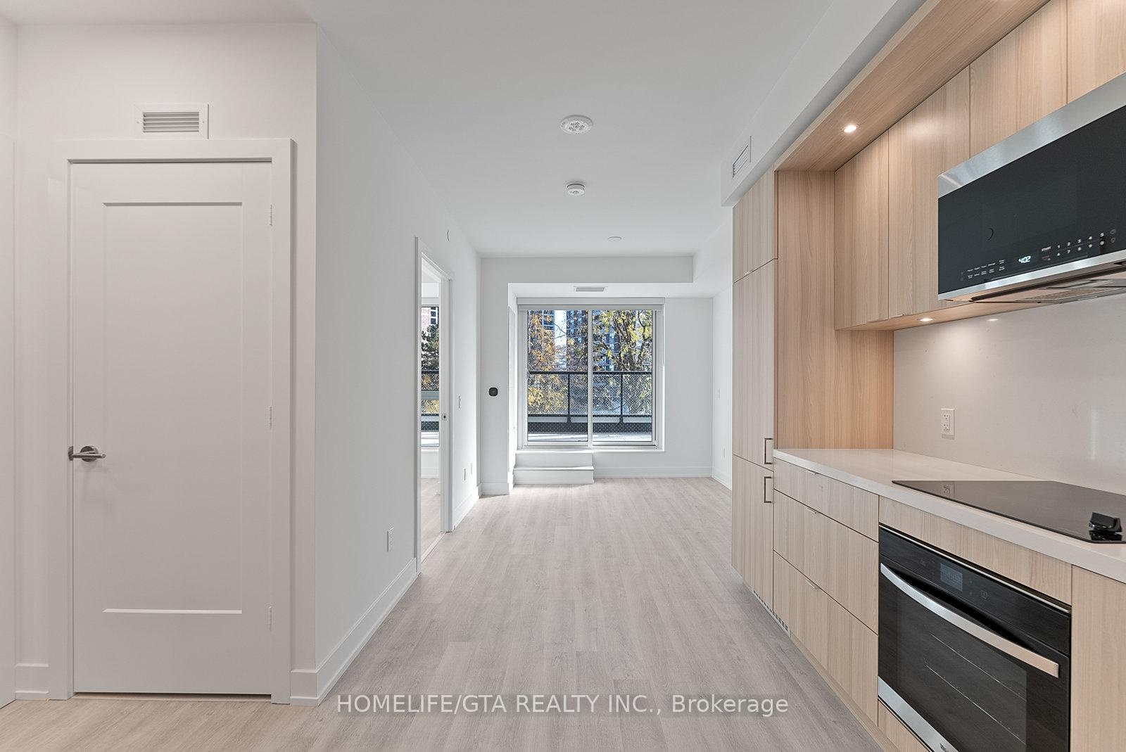 !! Welcome to Westerly II by Tridel. This one Bedroom/1 Bathroom unit comes with 1 Parking/Locker and is available for immediate possession. Unit 305 boasts an efficient floor plan with tons of storage, laminate flooring throughout and a large 4 pc bathroom. Unit offers an open concept living dining area which opens to an oversized south facing terrace. Living area is large enough to have a small dining table and a tv and sofa. Primary bedroom offers a rarely offered walk in closet and floor to ceiling windows with west views. Westerly II offers one of the best 2-Storey Lobbies in the city, a good sized gym, grand party room and a business/work lounge that you can book. This building is perfect for commuters and those who work from home. There's ample of visitor parking offered in the building. Come be one of the first residents in the building today!