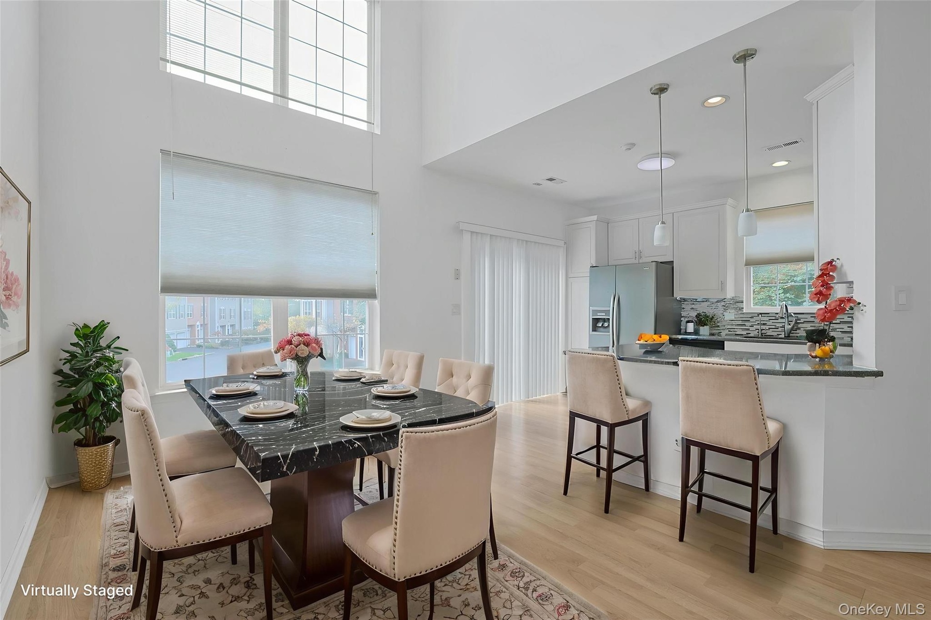 Welcome to this beautifully maintained, sun-filled end unit with bonus windows , offering the perfect blend of comfort, elegance, and modern living. From the moment you step inside, you’ll be greeted by an inviting open floor plan designed for today’s lifestyle. The bright eat-in kitchen features timeless white cabinetry, gleaming granite countertops, and stainless steel appliances, making it the perfect space for both cooking and casual dining. Vaulted ceiling in kitchen fills the home with natural light.