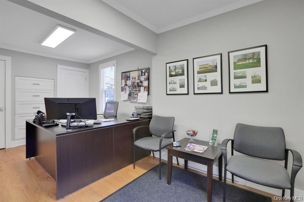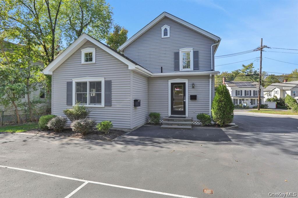 In the heart of the vibrant Village of New Paltz, where the hum of local businesses meets the beauty of the Hudson Valley, 46 North Chestnut stands as a fully turn-key commercial and residential opportunity, a property that truly has it all. Set on a generous .32-acre lot, this meticulously renovated building blends timeless craftsmanship with modern functionality. Designed and restored by Seakill Custom Home Builders for their private offices, every square foot showcases thoughtful design and care. The main level offers an inviting professional workspace ideal for an attorney office, boutique firm, creative agency, medical or wellness practice, or any growing local enterprise. A welcoming foyer opens to a polished reception area with gleaming hardwood floors, a chic kitchenette and coffee bar, and a flexible open workspace with ample room for multiple desks. The highlight of the space is the stunning custom conference room, framed by natural wood beams and wide-plank flooring, a room designed to impress clients and inspire collaboration. Built-in storage, workstations, and a half bath complete the lower level, with easy access to the basement for additional storage. Upstairs, a private apartment offers flexibility and income potential. Bathed in natural light with sunset views over the village, this fully renovated residence features an eat-in kitchen with dining area, full bath, and a spacious bedroom that doubles as a cozy living space, perfect for an owner-occupant, short/long-term rental, or live/work setup. Located just steps from Main Street’s restaurants, cafes, boutiques, and the iconic Rail Trail, this property is surrounded by the energy of a college town that has become one of the Hudson Valley’s most sought-after destinations. New Paltz is a hub for outdoor enthusiasts, creatives, and entrepreneurs alike, known for its walkable downtown, thriving food and arts scene, and close proximity to the Mohonk Preserve, Minnewaska State Park, and major commuter routes to NYC. Outside, the property continues to deliver: ample private parking, a detached garage, and even your own private pickleball court, a unique amenity that perfectly captures the blend of work and play that defines Hudson Valley living. Beautifully finished, ideally located, and move-in ready. 46 North Chestnut is where business meets lifestyle in the heart of one of the most dynamic small towns in New York.