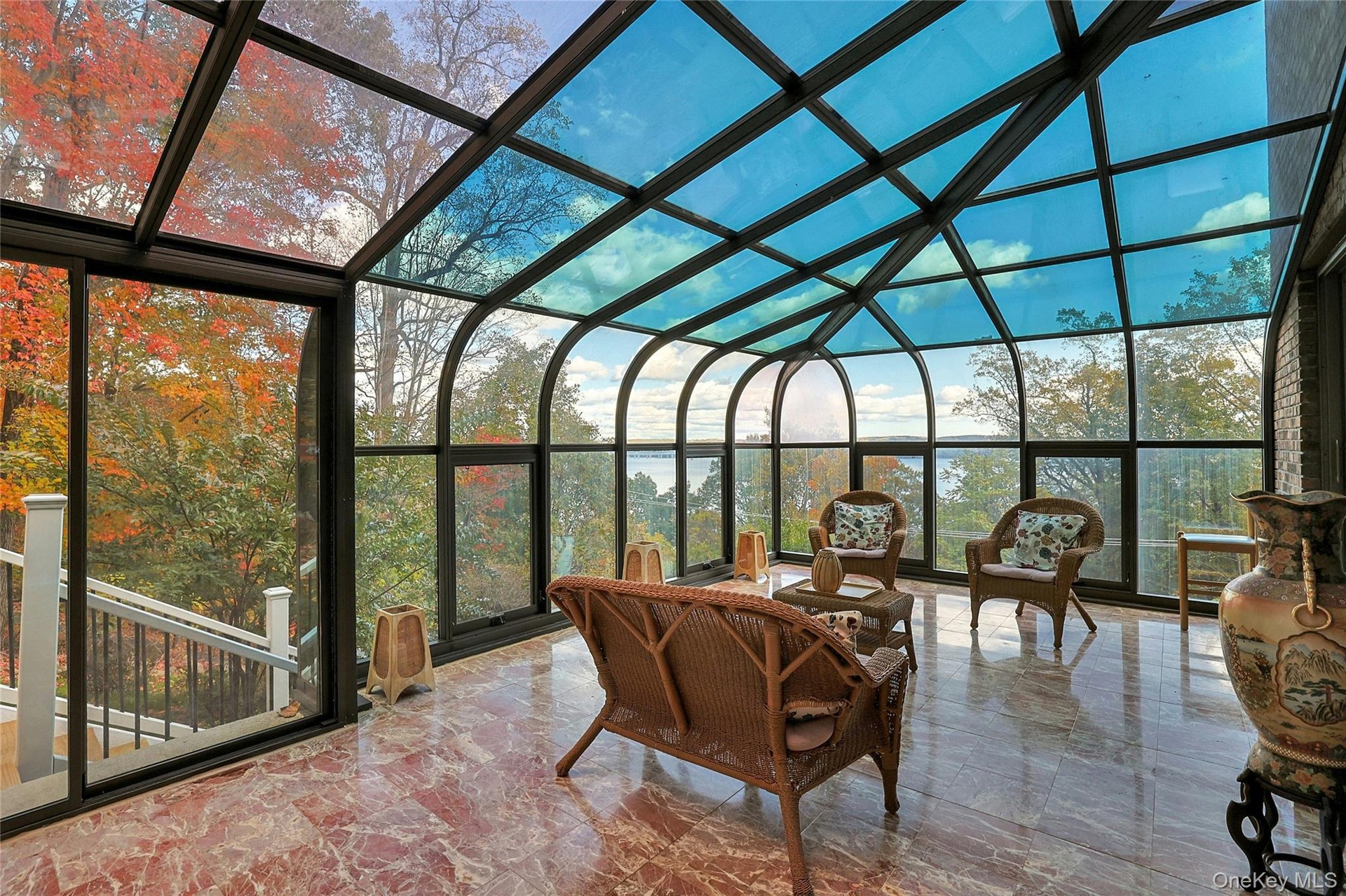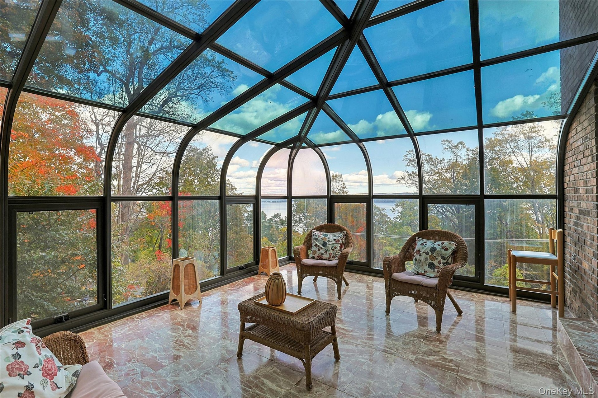 Every season transforms this home into something new. In summer, lush greenery envelops the multi-level decks where you can dine beneath the stars. In autumn, the valley below glows in shades of amber and crimson. Winter brings dramatic river vistas framed by bare branches, and in spring the solarium - a glass-walled sanctuary with marble floors - becomes a front-row seat to nature's renewal.