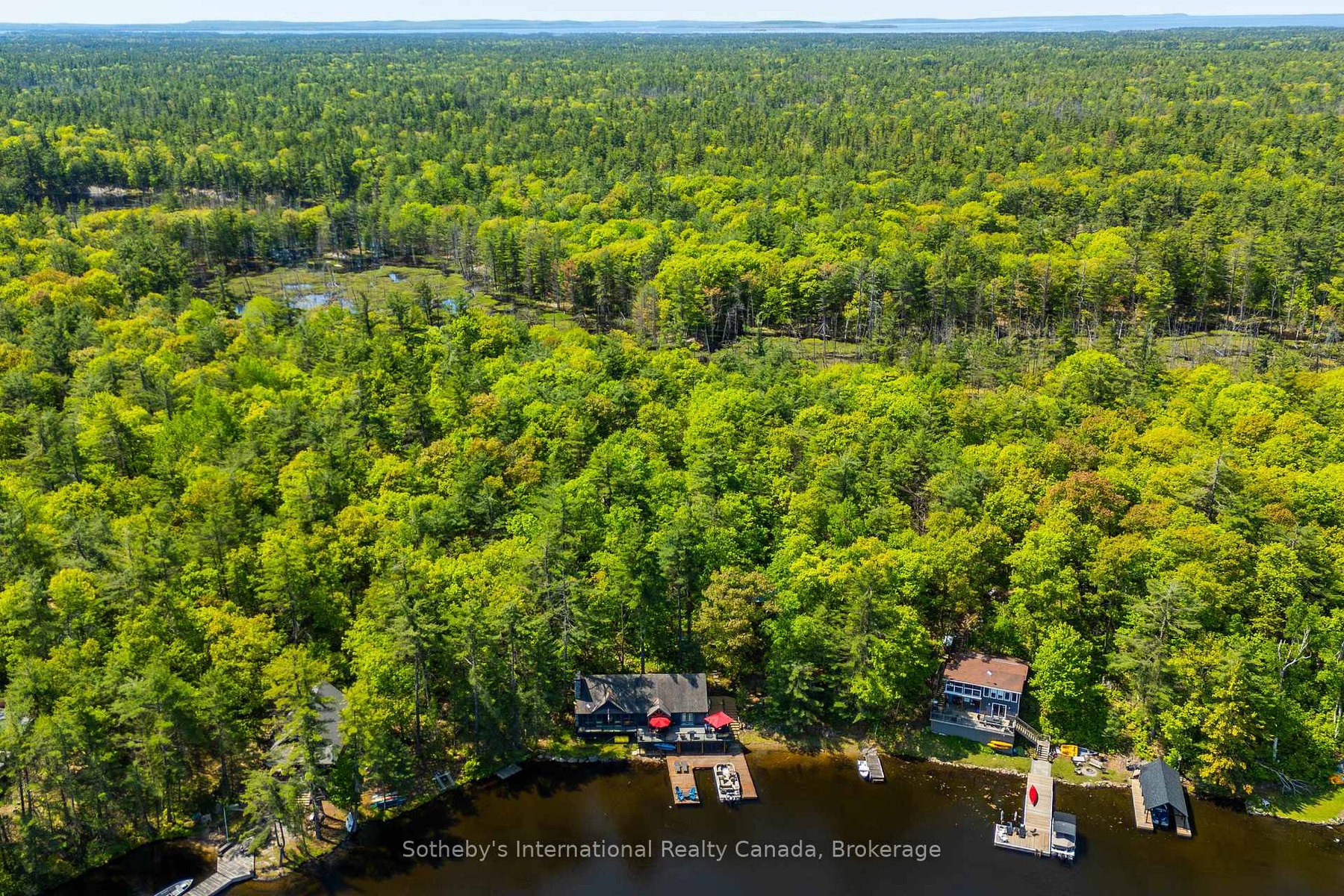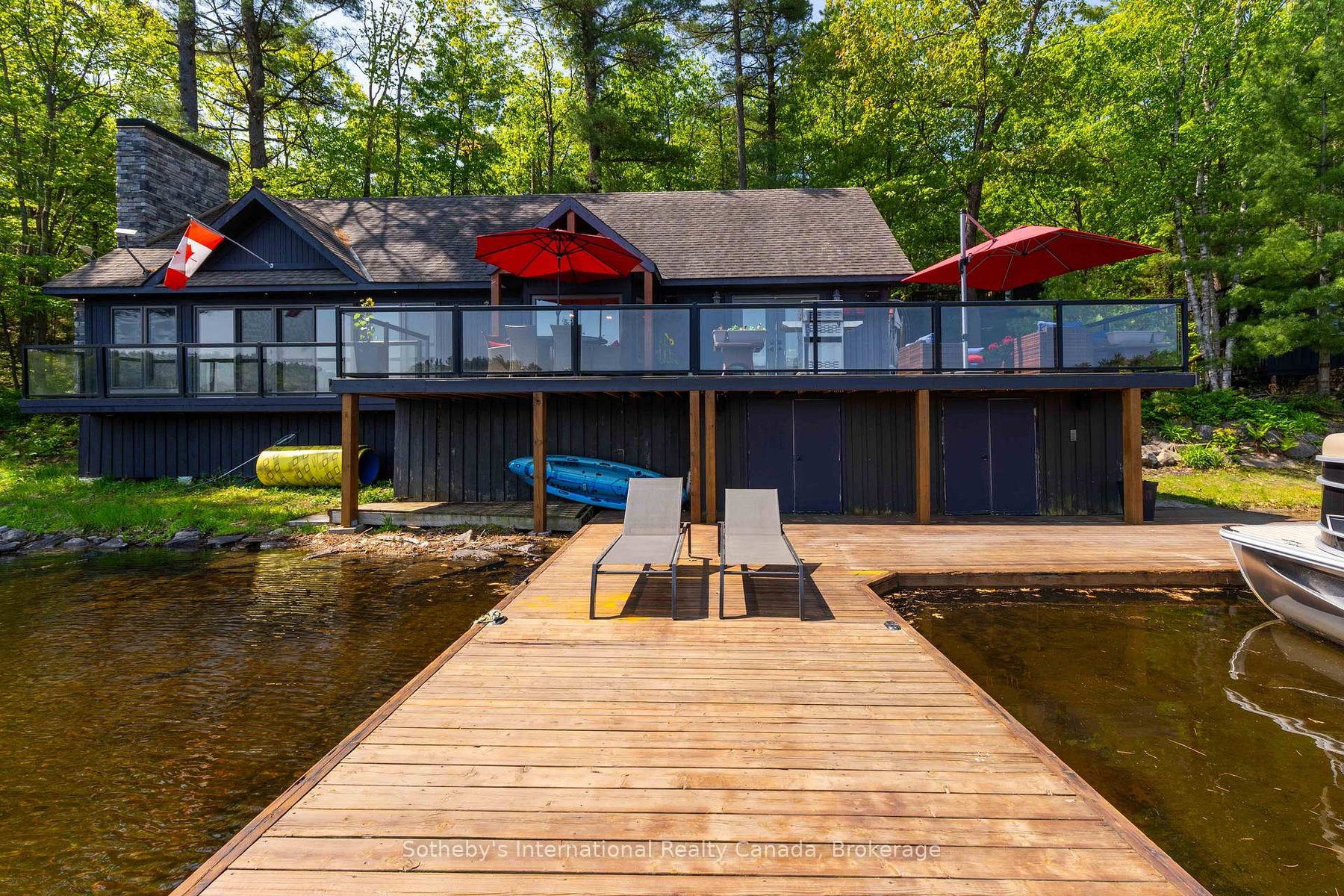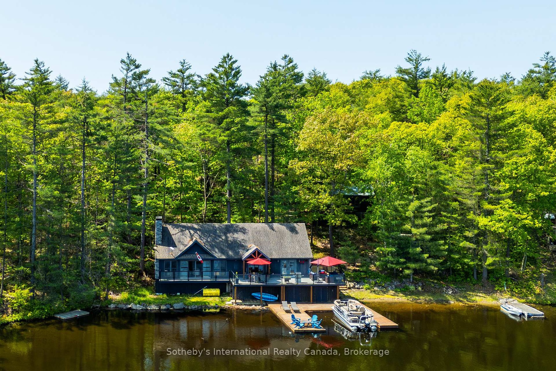 Welcome to 6394 Go Home Lake - an exquisite waterfront retreat where timeless craftsmanship meets the beauty of untouched Muskoka wilderness. Set on 190 feet of private shoreline in the highly sought-after Crystal Bay, this four-season property offers an unparalleled connection to nature and the water. Inside, a sense of warmth and sophistication greets you. The open concept living area is framed by wide plank floors and anchored by a stone fireplace, an inviting centerpiece for family gatherings or quiet evenings by the fire. The chef's kitchen combines form and function with custom cabinetry, stainless-steel appliances, and generous workspace for entertaining. Adjacent, the dining area opens to a panoramic lake view, creating a seamless flow between indoor and outdoor living. Step outside to an expansive deck designed for lakeside entertaining, complete with integrated Control 4 sound for effortless ambience. Here, mornings begin with coffee overlooking still waters, and evenings end under a canopy of stars. The main cottage offers three well-appointed bedrooms and a full bath, while a newly renovated guest bunkie extends the accommodation to visiting family and friends. The bunkie features two bedrooms, a bath, and provisions for a kitchenette, perfect as a studio, office, or guest suite with spectacular views of the bay. Beyond your doorstep, 100's of acres of adjoining Crown land provide unmatched privacy and adventure, ideal for hiking, exploring, or simply losing yourself in nature. Go Home Lake's pristine waters connect to Georgian Bay through the Voyageurs Club, offering access to hidden coves, cascading waterfalls, and private swimming lagoons. With its rare combination of comfort, design, and natural beauty, this property delivers the quintessential Muskoka experience, a place to recharge, reconnect, and create lasting memories on one of the region's most treasured lakes.