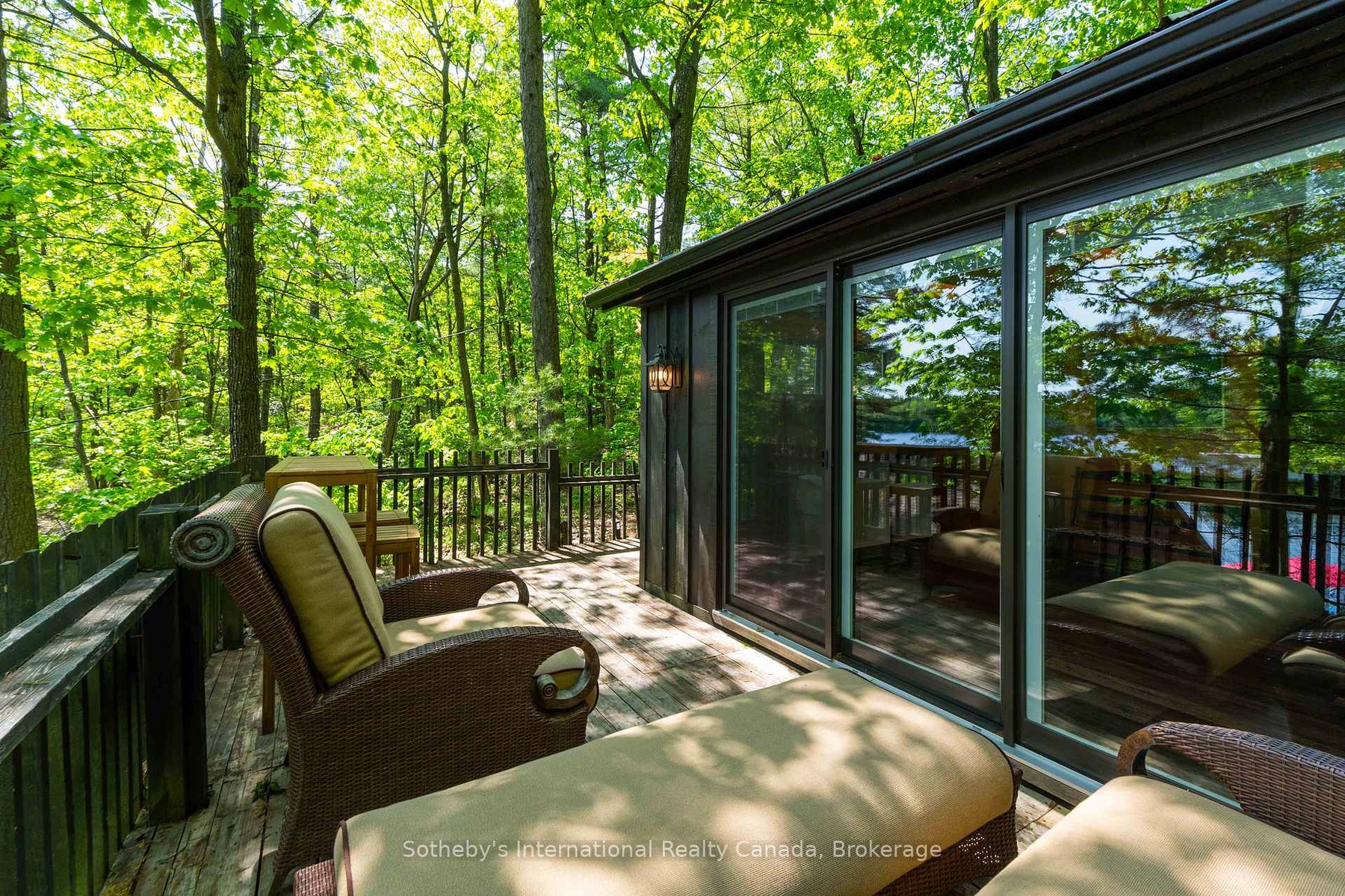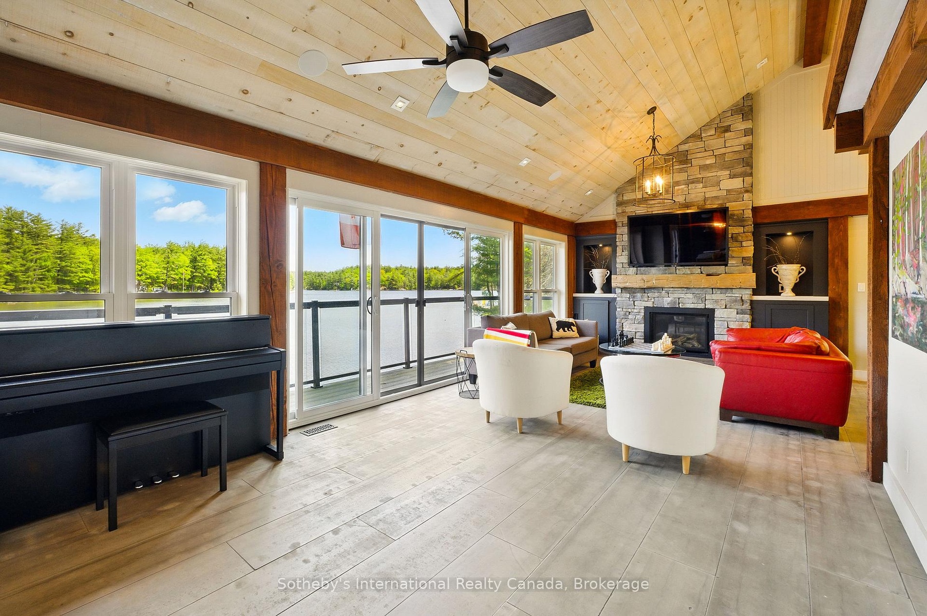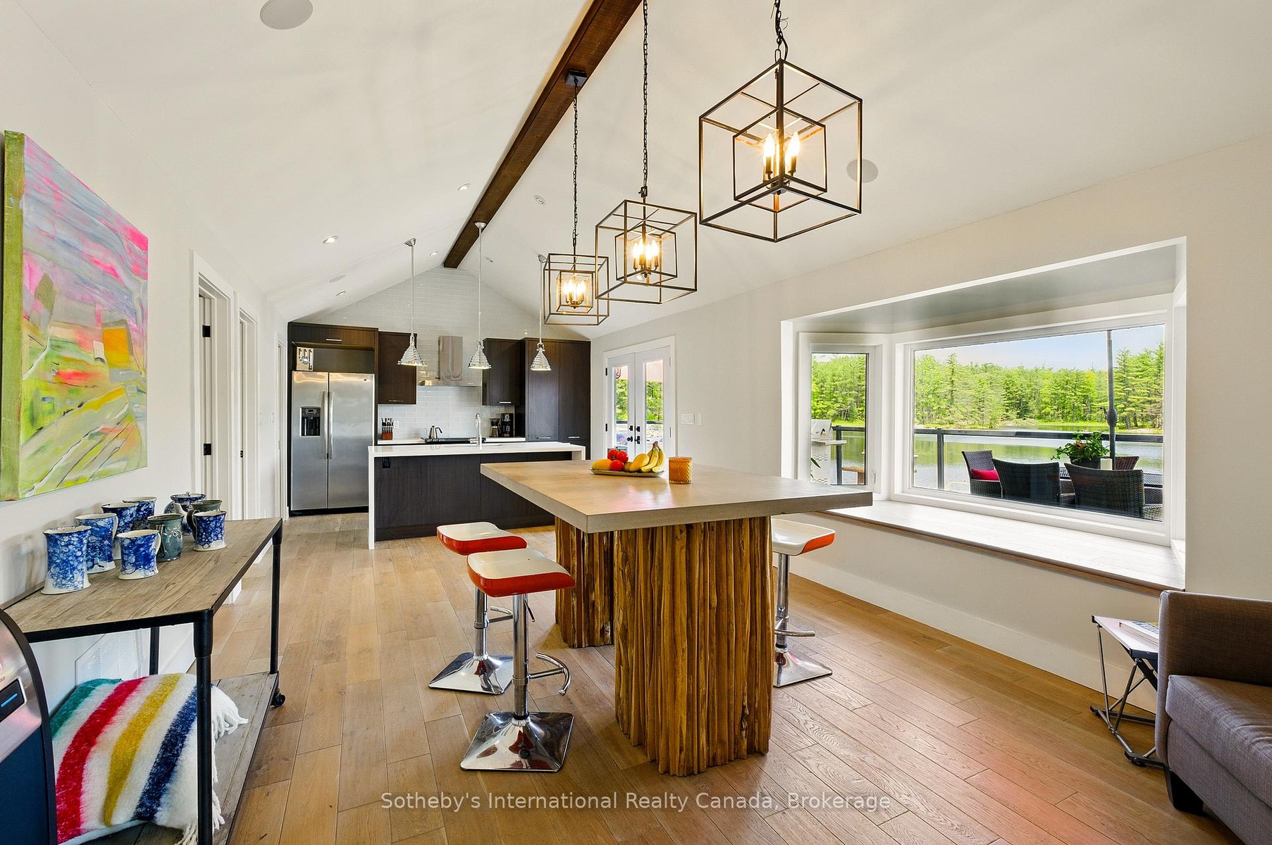 Welcome to 6394 Go Home Lake - an exquisite waterfront retreat where timeless craftsmanship meets the beauty of untouched Muskoka wilderness. Set on 190 feet of private shoreline in the highly sought-after Crystal Bay, this four-season property offers an unparalleled connection to nature and the water. Inside, a sense of warmth and sophistication greets you. The open concept living area is framed by wide plank floors and anchored by a stone fireplace, an inviting centerpiece for family gatherings or quiet evenings by the fire. The chef's kitchen combines form and function with custom cabinetry, stainless-steel appliances, and generous workspace for entertaining. Adjacent, the dining area opens to a panoramic lake view, creating a seamless flow between indoor and outdoor living. Step outside to an expansive deck designed for lakeside entertaining, complete with integrated Control 4 sound for effortless ambience. Here, mornings begin with coffee overlooking still waters, and evenings end under a canopy of stars. The main cottage offers three well-appointed bedrooms and a full bath, while a newly renovated guest bunkie extends the accommodation to visiting family and friends. The bunkie features two bedrooms, a bath, and provisions for a kitchenette, perfect as a studio, office, or guest suite with spectacular views of the bay. Beyond your doorstep, 100's of acres of adjoining Crown land provide unmatched privacy and adventure, ideal for hiking, exploring, or simply losing yourself in nature. Go Home Lake's pristine waters connect to Georgian Bay through the Voyageurs Club, offering access to hidden coves, cascading waterfalls, and private swimming lagoons. With its rare combination of comfort, design, and natural beauty, this property delivers the quintessential Muskoka experience, a place to recharge, reconnect, and create lasting memories on one of the region's most treasured lakes.