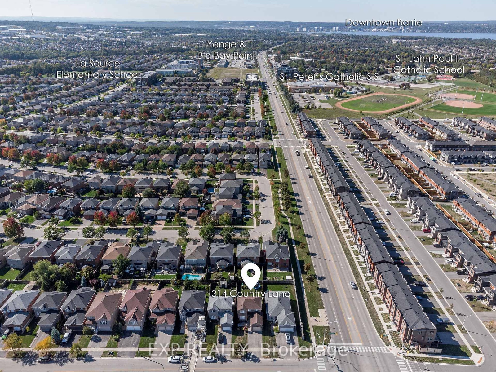 Welcome to 314 Country Lane in Barrie, a beautifully maintained 1,498 square foot home offering a bright and inviting layout with thoughtful updates throughout. The main floor features soaring nine-foot ceilings, hardwood flooring, and hardwood stairs with wrought iron spindles, creating a warm and stylish atmosphere. The eat-in kitchen is equipped with stainless steel appliances and granite countertops with a backsplash, and flows seamlessly into the combined living and dining room, perfect for both everyday living and entertaining. California shutters on the main level add a polished touch, while the bathrooms have been freshly painted for a modern feel. Step outside to a large backyard deck with a covered seating area, an ideal spot for outdoor dining and relaxation. The front yard has been updated with hardscaping and landscaping, giving the home beautiful curb appeal. Upstairs, you'll find spacious bedrooms filled with natural light. Large primary with ensuite offering the perfect space to unwind at the end of the day. Unfinished basement with a four-piece rough-in provides endless potential for additional living space. Recent updates include a new roof completed in September 2025 and newer windows throughout most of the home, adding to its long-term value and comfort. Located in a desirable neighbourhood with close proximity to public transit, schools, Mapleview Shopping, the Barrie waterfront, and the GO Station, this property combines convenience with quality living. With its modern updates, inviting spaces, and prime location, 314 Country Lane is ready to welcome its next owners.