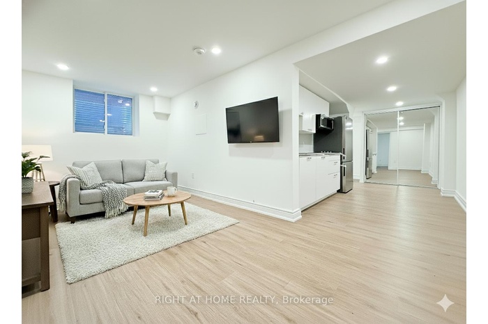 Beautiful newly finished 2-bedroom (plus one) basement apartment with a private entrance in a desirable Patterson location. Features a modern kitchen, 3-piece bath, and ensuite laundry (not shared). Built to code with sound- and fire-rated insulation for quiet, comfortable living. Bright layout with large windows that provide plenty of natural light. Includes one parking space. Be the first tenant to enjoy this brand-new space! Steps to Joseph & Wolf Lebovic Campus, top-rated schools, Rutherford Marketplace, transit, and Highways 407/400. Perfect for those seeking a clean, private, and convenient place to call home.