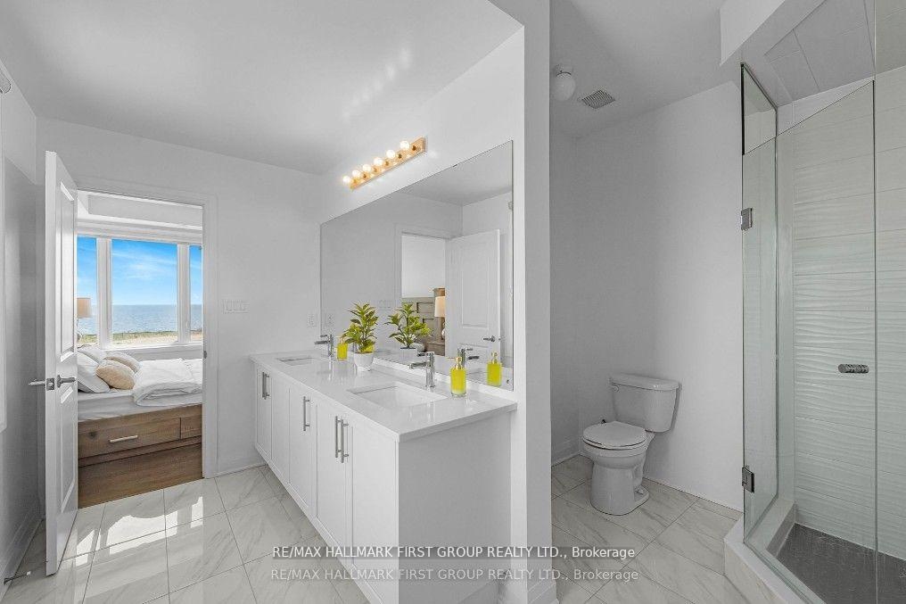 Luxury Lakeside Living at Its Finest! This extraordinary corner-unit estate boasts UNOBSTRUCTED LAKE VIEWS almost every angle, including a charming PORCH, spacious DECK, three private BALCONIES, and a spectacular ROOFTOP TERRACE perfect for entertaining or unwinding in serenity. Designed with elegance and comfort in mind, this home offers a PRIVATE ELEVATOR from the ground level to the rooftop, making every floor easily accessible. Inside, enjoy bright and expansive bedrooms, a sleek open-concept kitchen, and seamless flowthrough the dining and living room - Full of natural light. With TWO LAUNDRY areas (main and third floor). You'll enjoy direct access to scenic trails, lush parks, and breathtaking waterfront views. Just 1 minute from Highway 401, shopping, dining, and all essential amenities