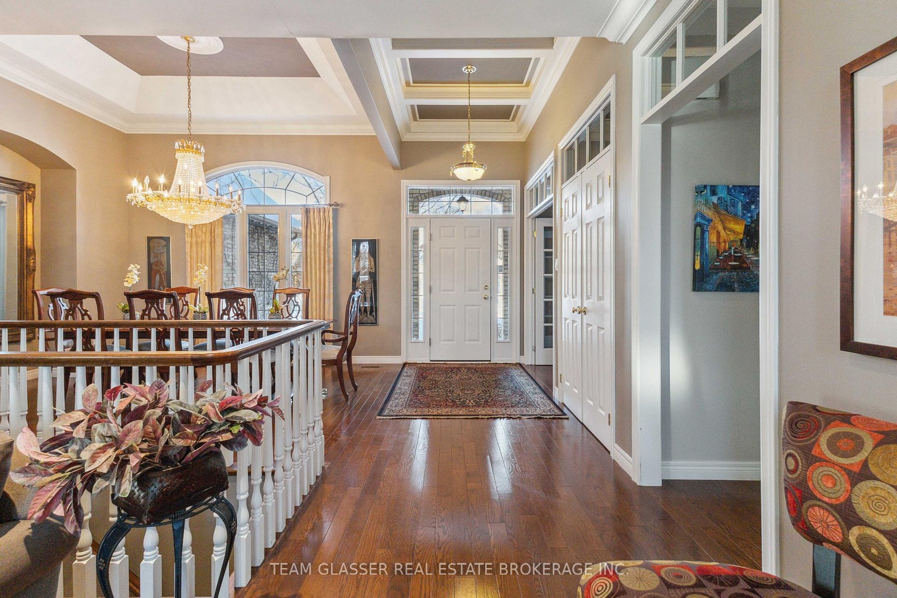Incredible value with full basement suite - an executive custom built ranch bungalow in Warbler Woods, with the well-deserved reputation as a best location in London. Approx. 4000 Sqft finished space, tucked away on a whisper quiet 6-house cul-de-sac with almost no traffic. 2 beds plus den on main, 2 beds in the fully finished basement with a second kitchen and laundry suite. Secondary interior staircase leading up to the oversized 2-car garage, private and perfect for every family from kids to in-laws. Gorgeous inside out and year-round, with wrap-around brick exterior, large deck with glass railings, beautifully landscaped with sprinkler system, and complete privacy with mature trees and cedar hedge surrounding the large lot. Beautiful hardwood, stones and glass interior finishes, coffered and cathedral ceilings, transom windows throughout, crown moldings, French doors, numerous and bright windows with California shutters offering tons of natural afternoon lighting from the east-facing backyard. So much to offer, book an in-person experience, welcome home.