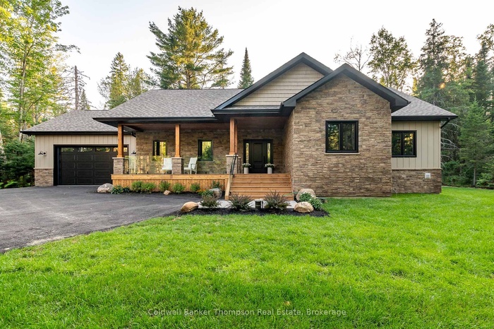 Welcome to this brand new executive bungalow by Matrix Construction, located in the desirable new Crimson Lane community in beautiful Port Sydney. Set on an acre, near the end of a quiet road, this home boasts exceptional curb appeal with neutral-toned stone and vertical vinyl siding, a large covered front porch, and a modern yet timeless aesthetic. Step inside to a spacious foyer that leads into the bright, open-concept living, dining, and kitchen area, ideal for daily living and entertaining. The living room features a natural gas fireplace with quartz accents, while the chef's kitchen boasts a large island with breakfast bar seating and a walk-in butlers pantry offering additional storage. Off the kitchen, a walkout takes you to the screened-in Muskoka Room and deck with a natural gas BBQ hookup, perfect for summer evenings. The mudroom entry from the attached double car garage is both functional and stylish, with access to a 2-piece powder room and a beautifully appointed laundry room. The main floor offers three spacious bedrooms, including a serene primary suite with a walk-in closet and a 3-piece ensuite featuring heated floors and a tile and glass shower. Two additional bedrooms share a 4-piece bathroom. The lower level is fully finished, adding valuable living space with a large rec room, fourth bedroom, another 4-piece bathroom, a generous office or flex space, and a utility/storage room. This home combines the best of quality construction and thoughtful design, featuring a layout that suits both families and retirees. Enjoy the charm of Port Sydney, with nearby access to Mary Lake beach and boat launch, groceries, LCBO, gas station, elementary school, high speed internet, and more. With easy highway access and just a short drive to Huntsville or Bracebridge, you'll love the balance of rural peace and modern convenience. A beautifully built home in a community you'll be proud to be part of.