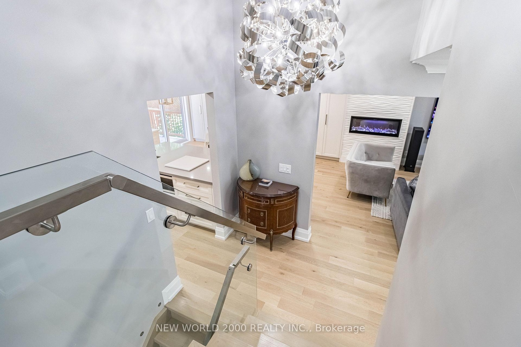 Luxury Living Awaits You! Step into a world of elegance and comfort with this stunning home that boasts exquisite features designed for modern living. From the moment you enter, you'll be captivated by the hardwood floors that flow throughout and the stylish marble and ceramic tile in all bathrooms. Indulge your culinary desires in a kitchen that's a chef's dream! Featuring quartz countertops, full-height cabinets, and a large island with a with a sleek waterfall countertop and sink, its perfect for entertaining. Equipped with a top-of-the-line Sub-Zero and Wolf appliances, including double ovens, this kitchen is both functional and luxurious. Retreat to the main bathroom, where you'll find marble tops and a powered jet bathtub for ultimate relaxation. All showers are elegantly designed with glass enclosures, rainfall shower heads, and handheld wands for a spa-like experience. Enjoy the cozy ambiance of 2 remote-controlled fireplaces, one in the living room and another in the recreation room. The lower level also features a convenient kitchen with a fridge and sink, ideal for gatherings. Stay connected and entertained with speakers in every room, a surround sound system in both the living and basement areas and a Control 4 app for seamless audio control. Security is paramount with a front doorbell camera, 4 exterior cameras, and a fully monitored alarm system. This home is a smart sanctuary with fully automated blinds, boosted WiFi, and tankless hot water. All new PVC plumbing and electrical systems ensure peace of mind, while elegant touches like crown moulding, under-cabinet lighting and built-in closets elevate the aesthetic. Step outside to a beautifully landscaped yard featuring a backyard deck, a new driveway, and a stunning veranda with interlocking stone. The front lawn irrigation system keeps your space lush and vibrant year-round. This home is not just a residence; its a lifestyle. Don't miss this opportunity to make this dream home yours!