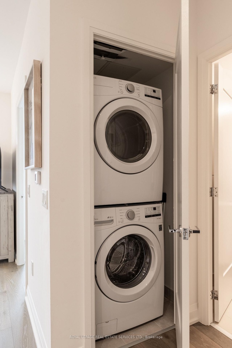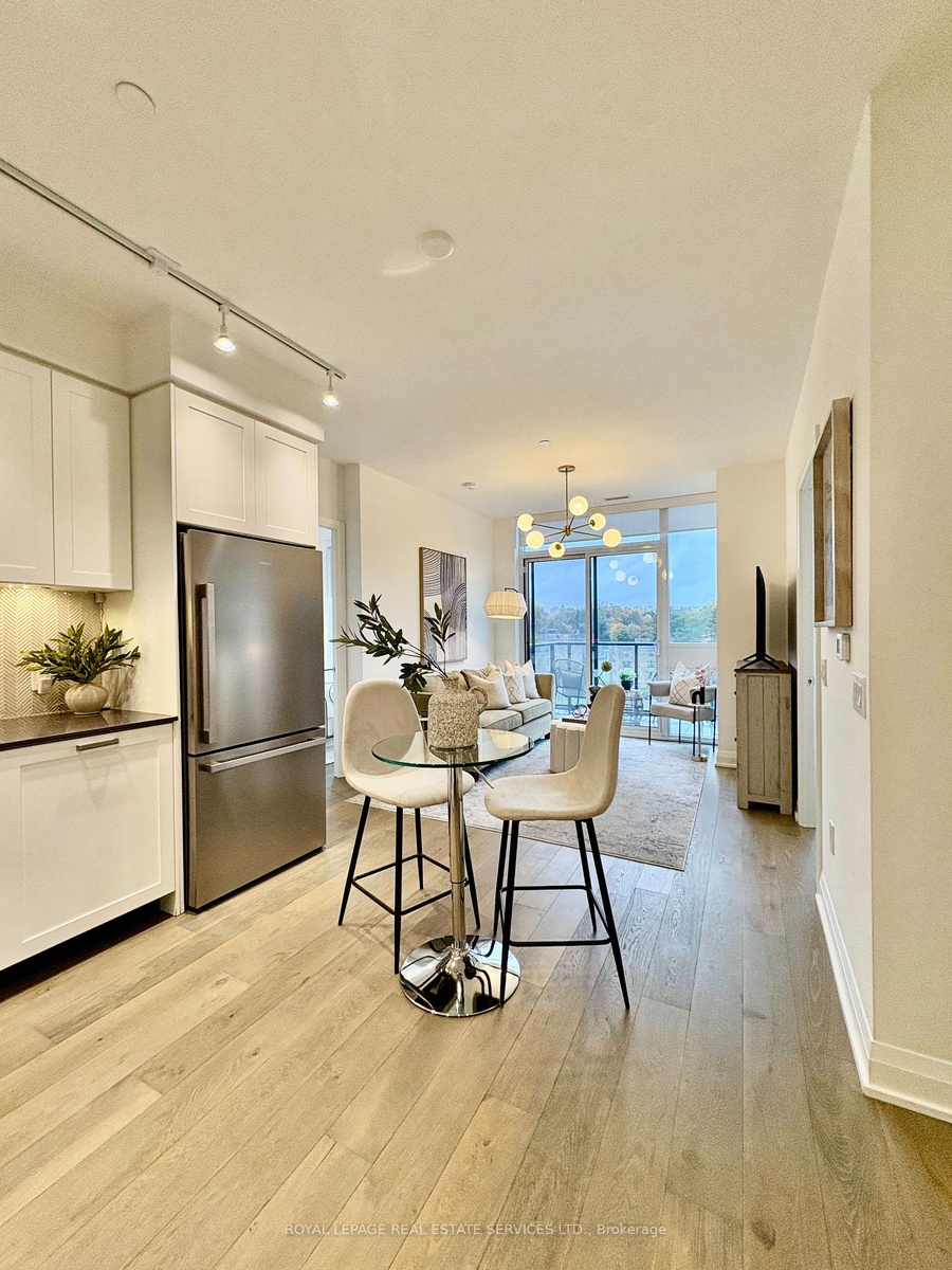 Welcome to this stunning, light-filled residence offering nearly 750 sq. ft. of modern living space. Designed for comfort and style, this open-concept suite boasts a sleek kitchen with full-size stainless steel appliances and a spacious living/dining area perfect for entertaining or relaxing. The primary bedroom features a walk-in closet and a private en suite bathroom, while the second bedroom offers generous space with its own closet-ideal for family, guests, or a home office. Added convenience comes with in-suite full size laundry, a dedicated parking spot, and a private locker. Life at 293 The Kingsway extends far beyond your front door. Enjoy world-class amenities including a sprawling rooftop terrace, private lounges, a concierge, and a state-of-the-art fitness studio spanning over 3,400 sq. ft. Step outside and you're just minutes from the scenic James Gardens, outdoor pickleball courts, and trails. Families will appreciate the top-rated school district, including Humber Valley Village JMS, Lambton Kingsway JMS, and St. George's Junior Public School. This is refined living in one of Toronto's most desirable neighbourhoods-ready for you to call home.