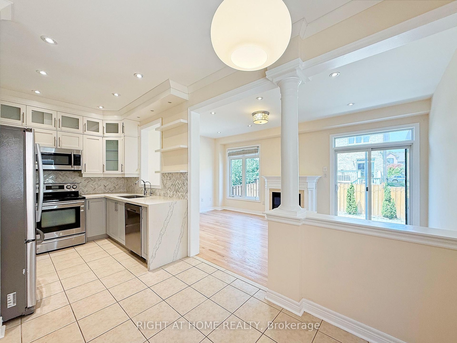Gorgeous end-unit townhome (feels like a semi!) offering a lease for the upper floor only (basement excluded). Nearly 2,000 sq ft of living space with 4 spacious bedrooms and 3 bathrooms. 9-foot smooth ceilings, pot lights, and fresh paint throughout the main floor (2025). Designer kitchen with extended cabinets, décor lighting, quartz countertops, backsplash, and full stainless-steel appliances. Bright family room with walkout to a private yard. Main-floor laundry and direct garage access. All bedrooms feature large closets; the primary includes a walk-in closet and a 4-piece ensuite. Steps to Joseph & Wolf Lebovic Campus, top-rated schools, Rutherford Marketplace, transit, and Highways 407/400. Move-in ready - enjoy Patterson living at its best!