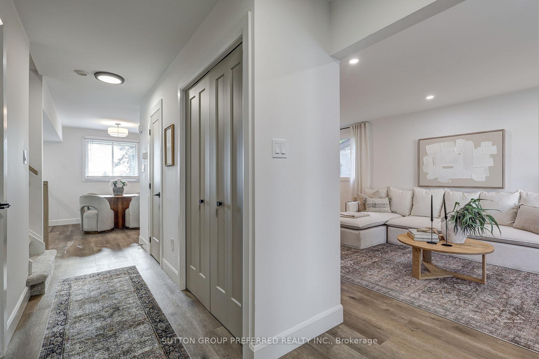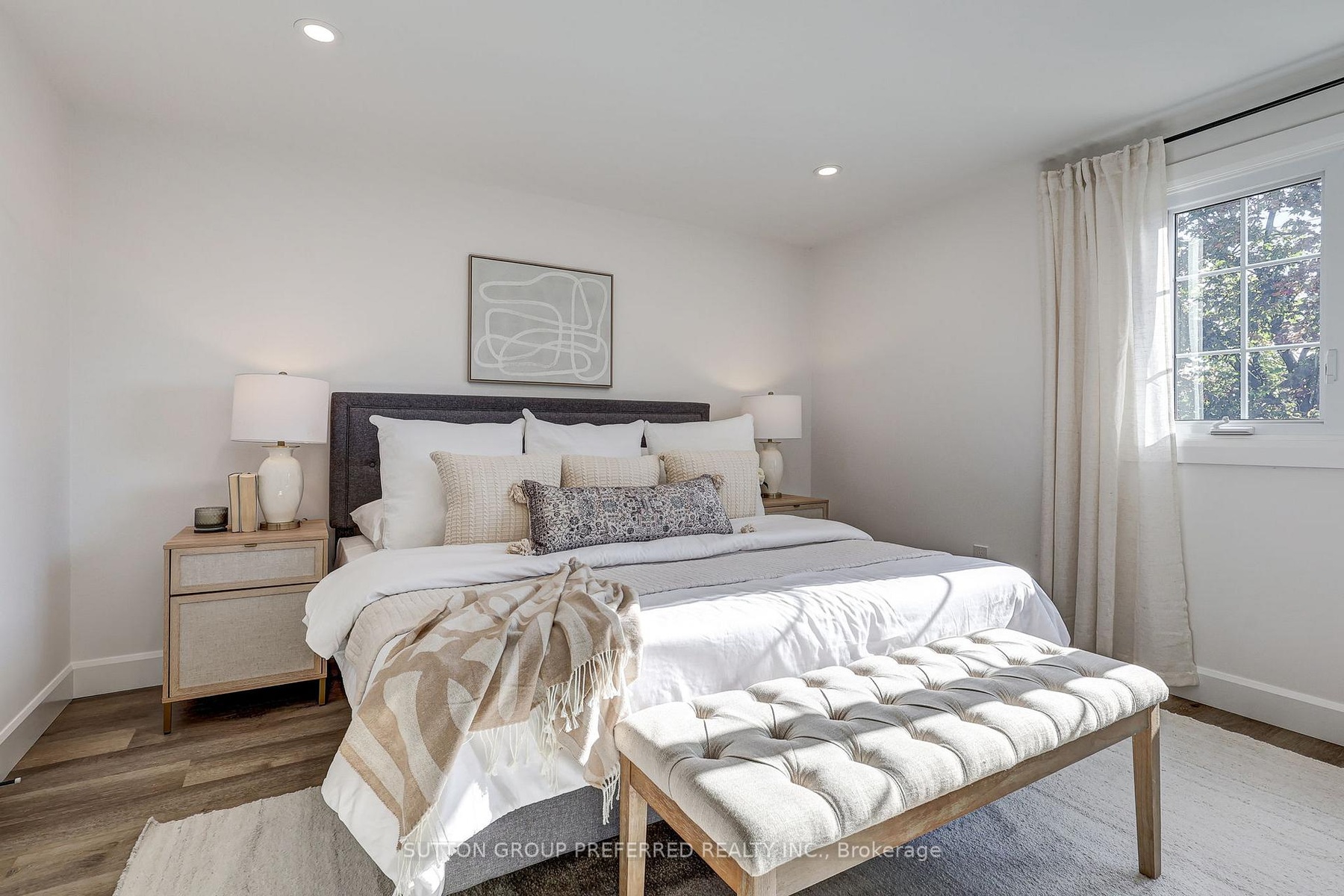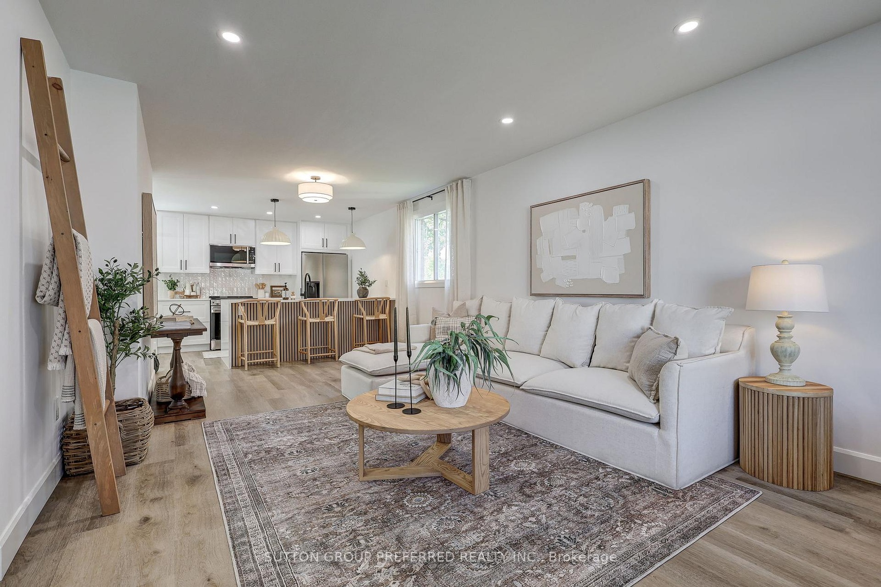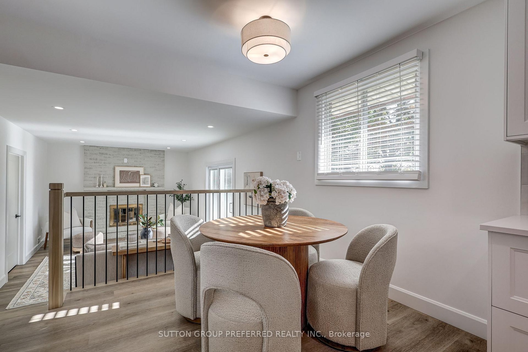 Spectacular renovated top/down 4 level side-split with separate side entrance to lower level with laundry access, 2 car garage, door replaced 2021. Enjoy the new kitchen cabinet & waterfall island quartz, backsplash, open to optional 2 family rooms. New flooring & pot lights and lighting throughout the home. Third level family room offers wood burning fireplace leading to sliding door to 12 x 12 deck and large backyard fully fenced. 3 bathrooms totally redone, trim and doors, some updated windows, huge master bedroom with double closet and cheater ensuite, 2 other bedrooms are a nice size, updated electrical panel. Lower level Rec Room with modern electric fireplace and bedroom and 3 piece bath. Nice storage area. Furnace and central air replaced 2024, shingles 2016, spray foam plus insulation 2025 in lower level. Fridge, stove, dishwasher included.