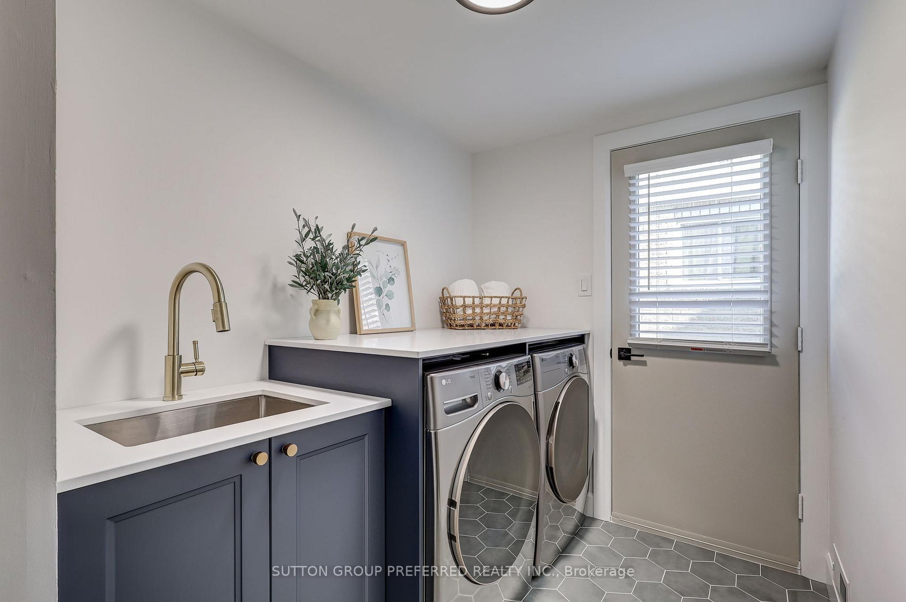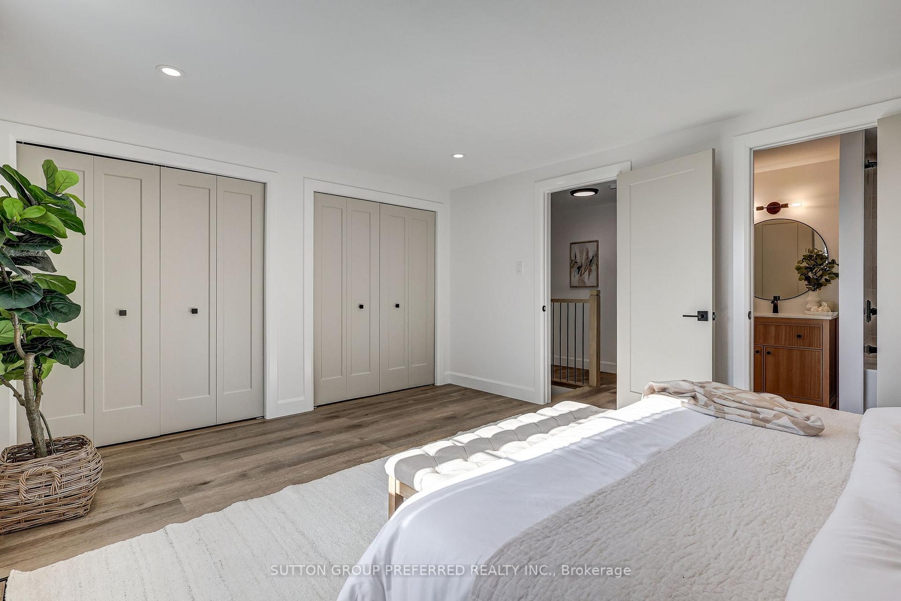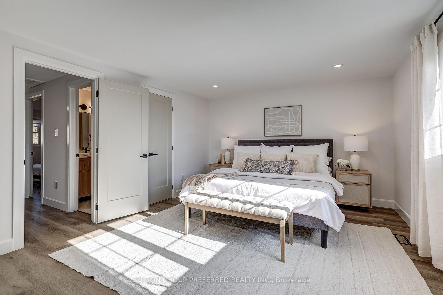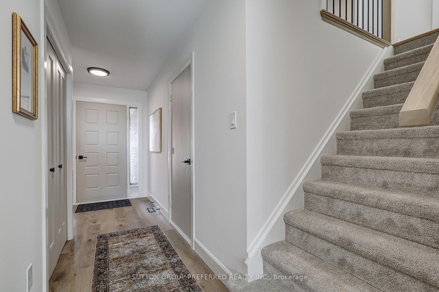 Spectacular renovated top/down 4 level side-split with separate side entrance to lower level with laundry access, 2 car garage, door replaced 2021. Enjoy the new kitchen cabinet & waterfall island quartz, backsplash, open to optional 2 family rooms. New flooring & pot lights and lighting throughout the home. Third level family room offers wood burning fireplace leading to sliding door to 12 x 12 deck and large backyard fully fenced. 3 bathrooms totally redone, trim and doors, some updated windows, huge master bedroom with double closet and cheater ensuite, 2 other bedrooms are a nice size, updated electrical panel. Lower level Rec Room with modern electric fireplace and bedroom and 3 piece bath. Nice storage area. Furnace and central air replaced 2024, shingles 2016, spray foam plus insulation 2025 in lower level. Fridge, stove, dishwasher included.