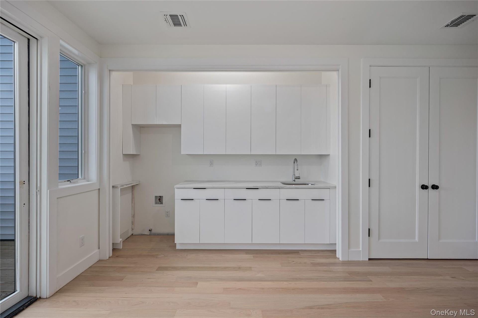 The second floor opens to a spacious dining room with spotlights and access to a deck—perfect for stepping out to enjoy the fresh air. The chef’s kitchen is beautifully designed with a large island, separate fridge and freezer space, quartz counters, and a cozy dinette area. This level also includes a playroom with toy closets and access to a large back porch, a seasonal kitchen, a study/office, and a powder room, all arranged for comfort and convenience.