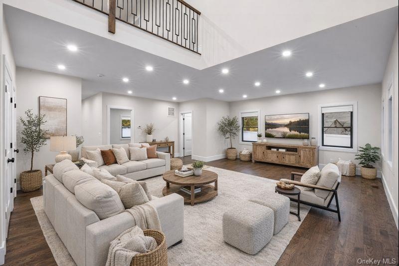 - Unfurnished living room featuring recessed lighting and dark wood finished floors