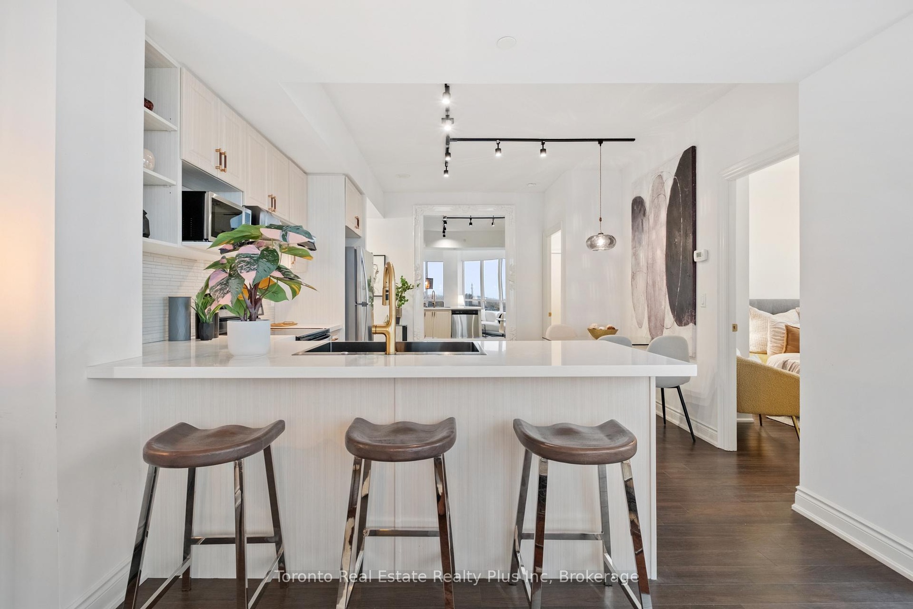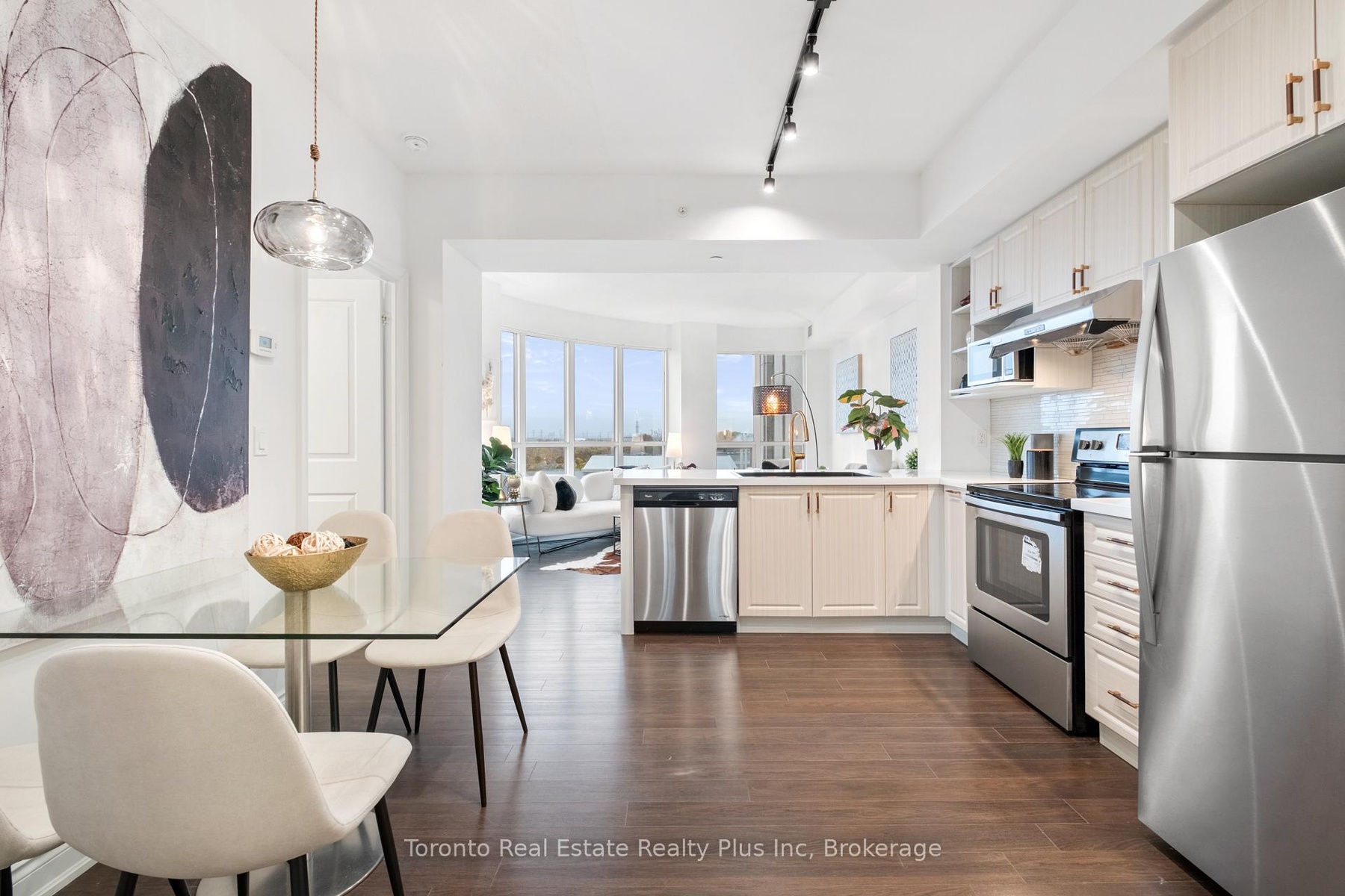 Luxurious Unit In The Heart OF Downtown Markham. Bright And Spacious South West Facing Corner Unit With Unobstructed Clear View And Lots OF Natural Light. This 2 Bdrm and 2 Full Bath with 9 Feet Ceilings. Primary Bedroom with a Closet area. Modern Kitchen W S/S Appliances And Quartz Counter Top and Laminated Flooring Thru-Out. New Kitchen Sink and Faucet, Cabinet Handles. All New Light Fixtures . Luxury Amenities included: Pool, Indoor Basket Ball, Gym, Party Room, 24 Hrs Concierge, Etc. Near To TopRanking Schools, Future York University, Steps To Transits, Hwy 407, Shops And Parks. WalkingDistance To IBM. 1 Parking and 1 Locker included.Luxurious Unit In The Heart OF Downtown Markham. Bright And Spacious South Facing Corner UnitWith Clear View And Lots OF Natural Light. This 2 Bdrm and 2 Full Bath Has As Open Feelingwith 9 Feet Ceilings and A Primary Bedroom with a walk in Closet. Modern Kitchen W S/S Appliances AndGranite Counter Top and Laminated Flooring Thru-Out. Luxury Amenities included: Pool, Indoor Basket Ball, Gym, Party Room, 24 Hrs Concierge, Etc. Close To Top-Ranking Schools, York University, Steps To Transits, Hwy 407, Shops And Parks. Walking Distance To IBM. 1 Parking and 1 Locker included