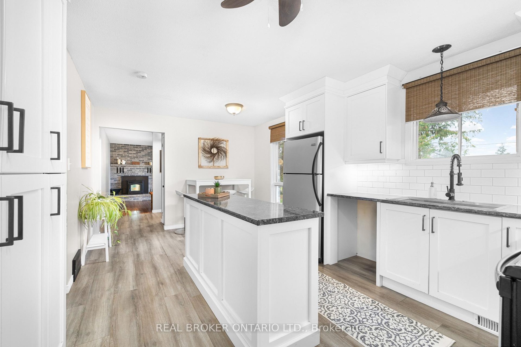 Welcome to peaceful country living at 9061 County Rd 44, just 5 minutes from Hwy 416 and 10 minutes from Kemptville. This charming brick bungalow sits on a 1.37 acre treed lot, offering privacy, space, and comfort. Set back from the road, the home features a steel roof (2022) and a lovely front patio perfect for morning coffee. Inside, the cozy family room with a WETT-certified pellet stove (2012) creates a welcoming gathering space. The custom kitchen (2019) is bright and functional with white shaker cabinetry, tile backsplash, and an island for easy meal prep. The primary bedroom overlooks a serene backyard with no rear neighbours and a powered 26' x 36' workshop/garage ideal for hobbies or storage. Two additional bedrooms, main-floor laundry, and a stylish bathroom complete the main level. A full basement with high ceilings and a WETT-certified wood stove offers room to expand. Updates include a propane furnace (2021), water softener (2016), and hot water tank (2017). Experience the perfect balance of comfort, charm, and country living.